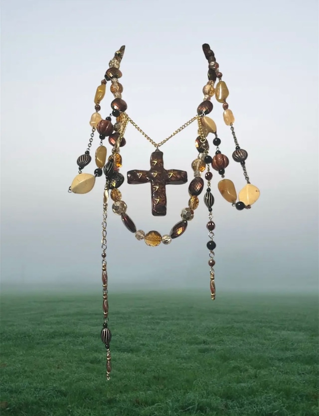 Earth Tone Cross Necklace ヴィンテージネックレスを一点一点丁寧に解体し、新たな表情を持たせて再構築しました。十字架は手作業で制作したオリジナルパーツを使っています。 ※クロスチャームは繊細なので扱いにはご注意ください。 ・リメイク品のため一点物です。 ・古物リメイク品の特性をご理解の上、ご購入をお願いいたします。
