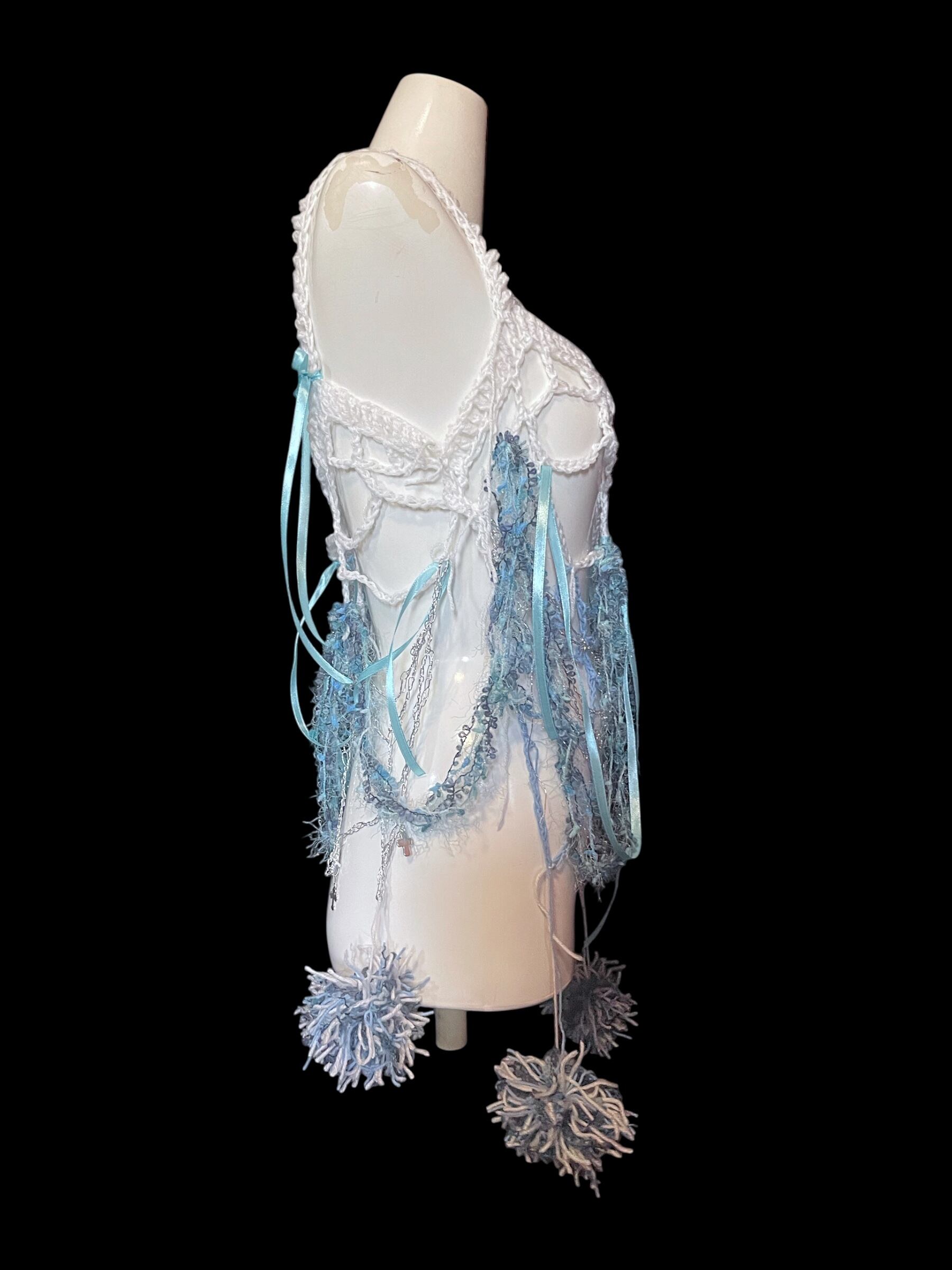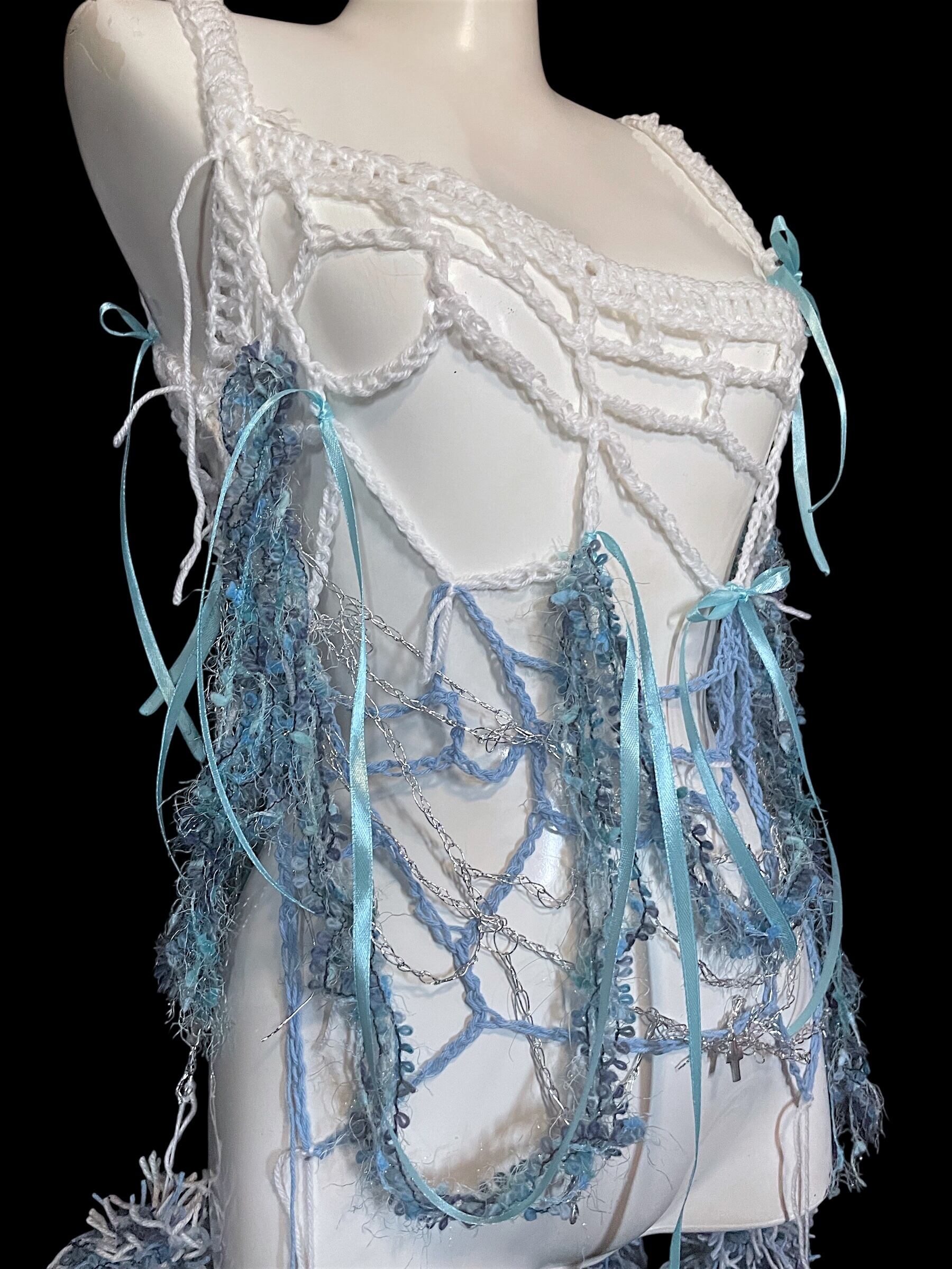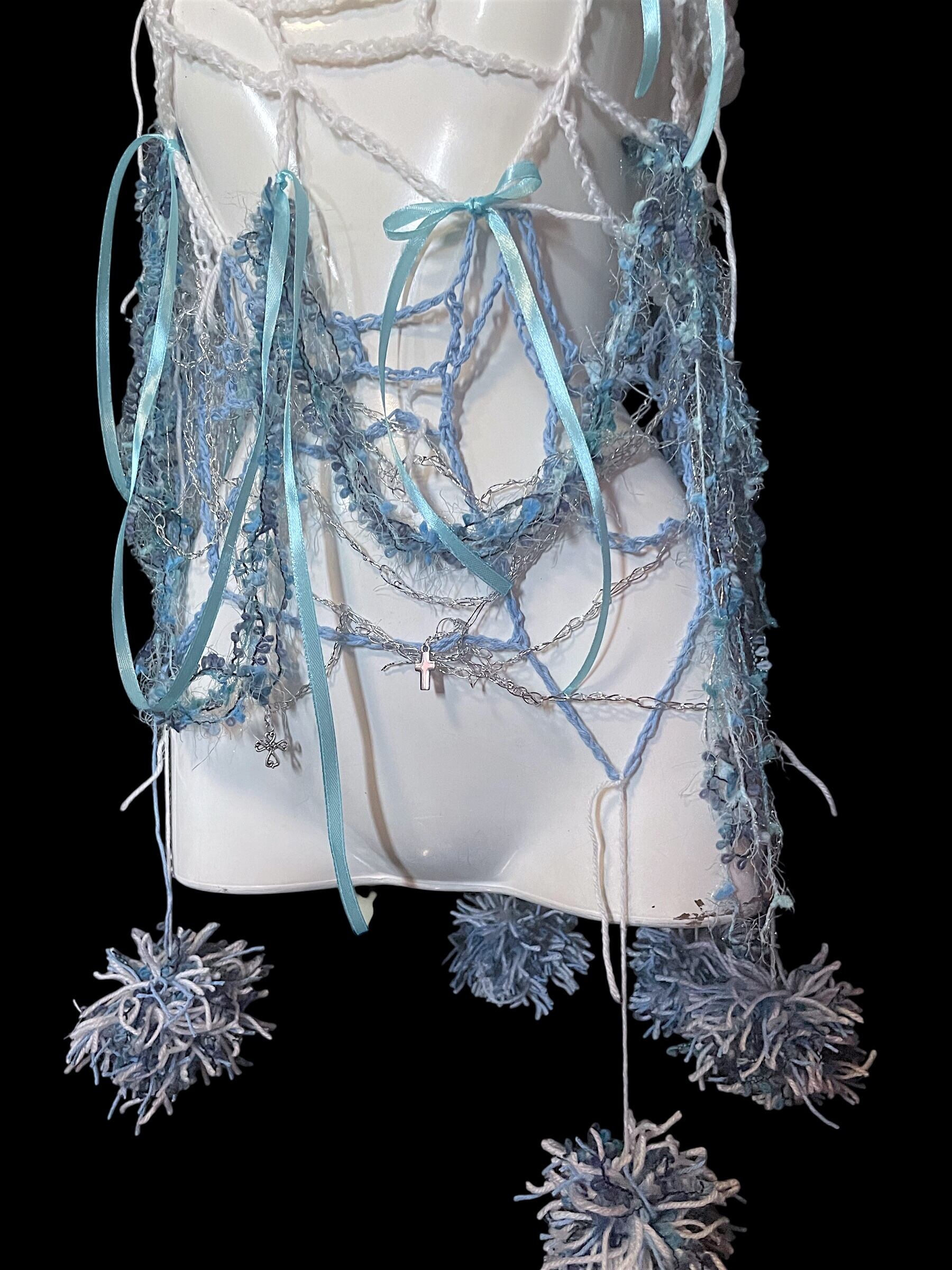儚げなブルーカラーとふわふわの質感が特徴の編みキャミソール。