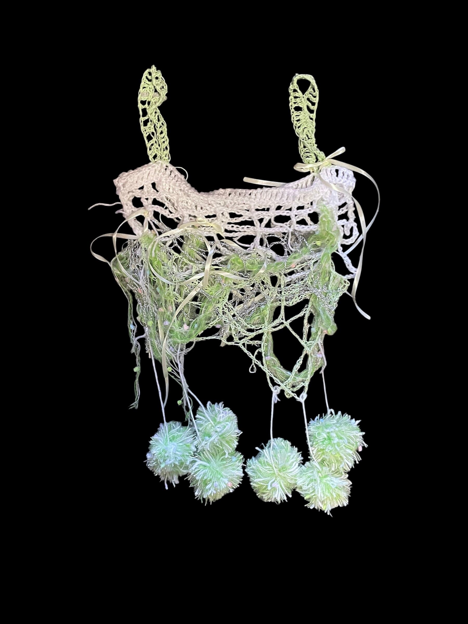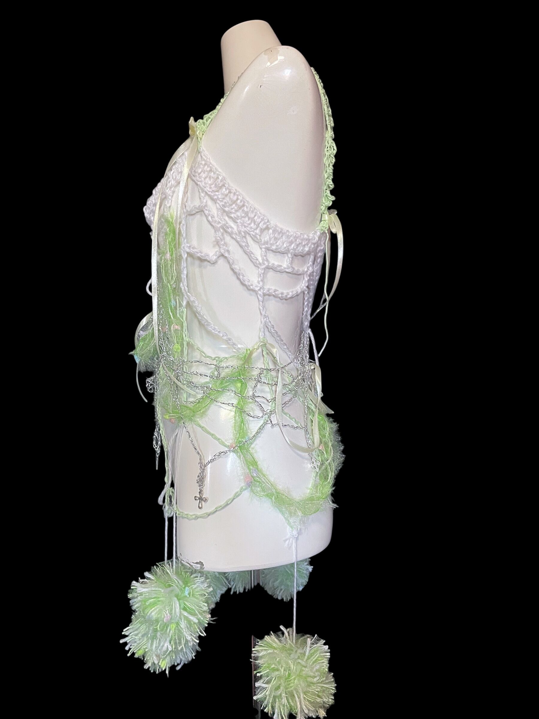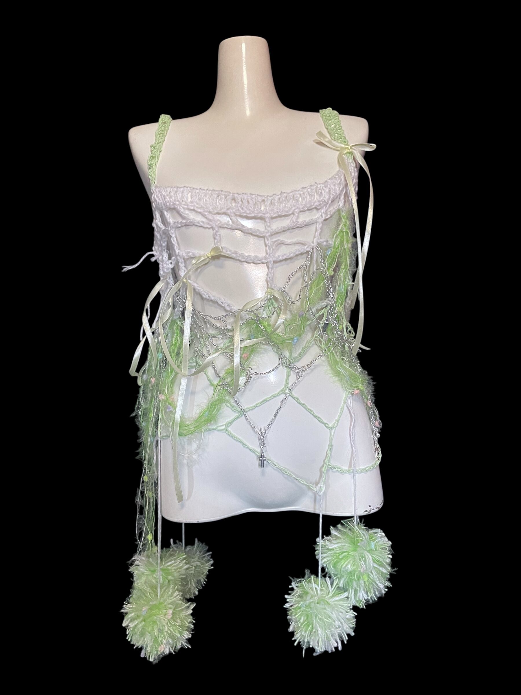 儚げなグリーンカラーとふわふわの質感が特徴の編みキャミソール。
