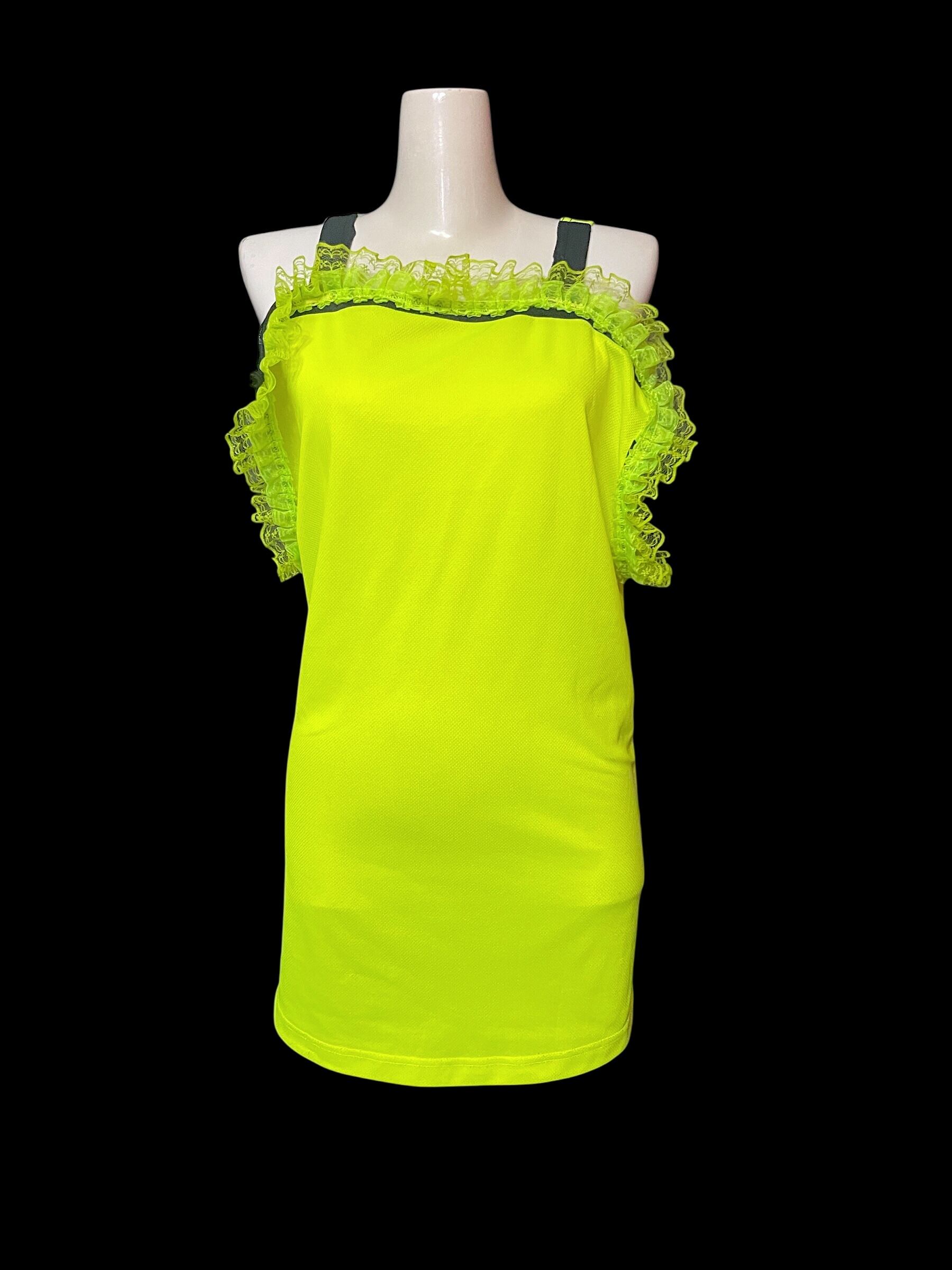 レースやリボンがポイントで、スタイリングの幅が広がる一着です。