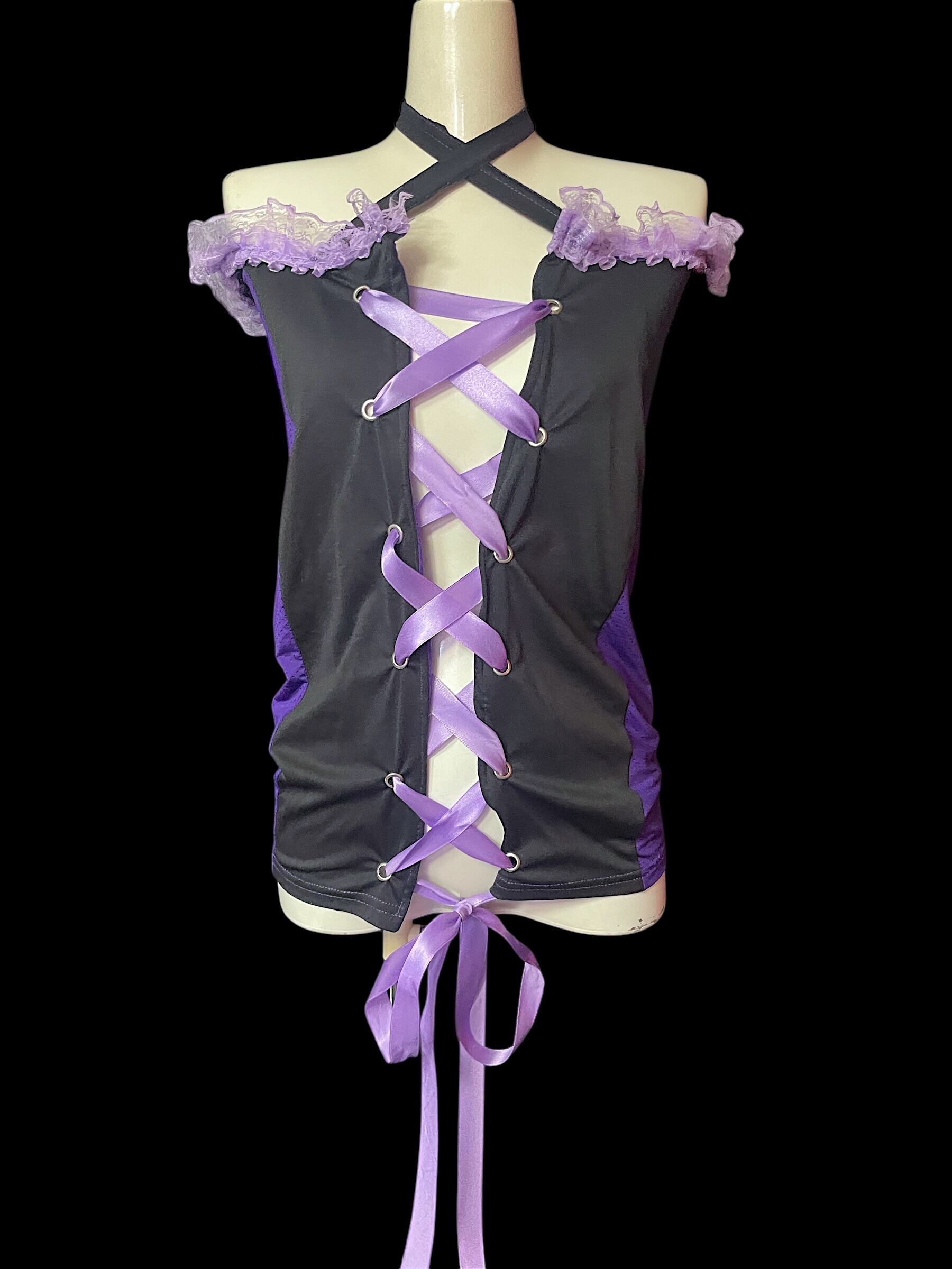 コルセット風の編み上げデザインが特徴のキャミソール。