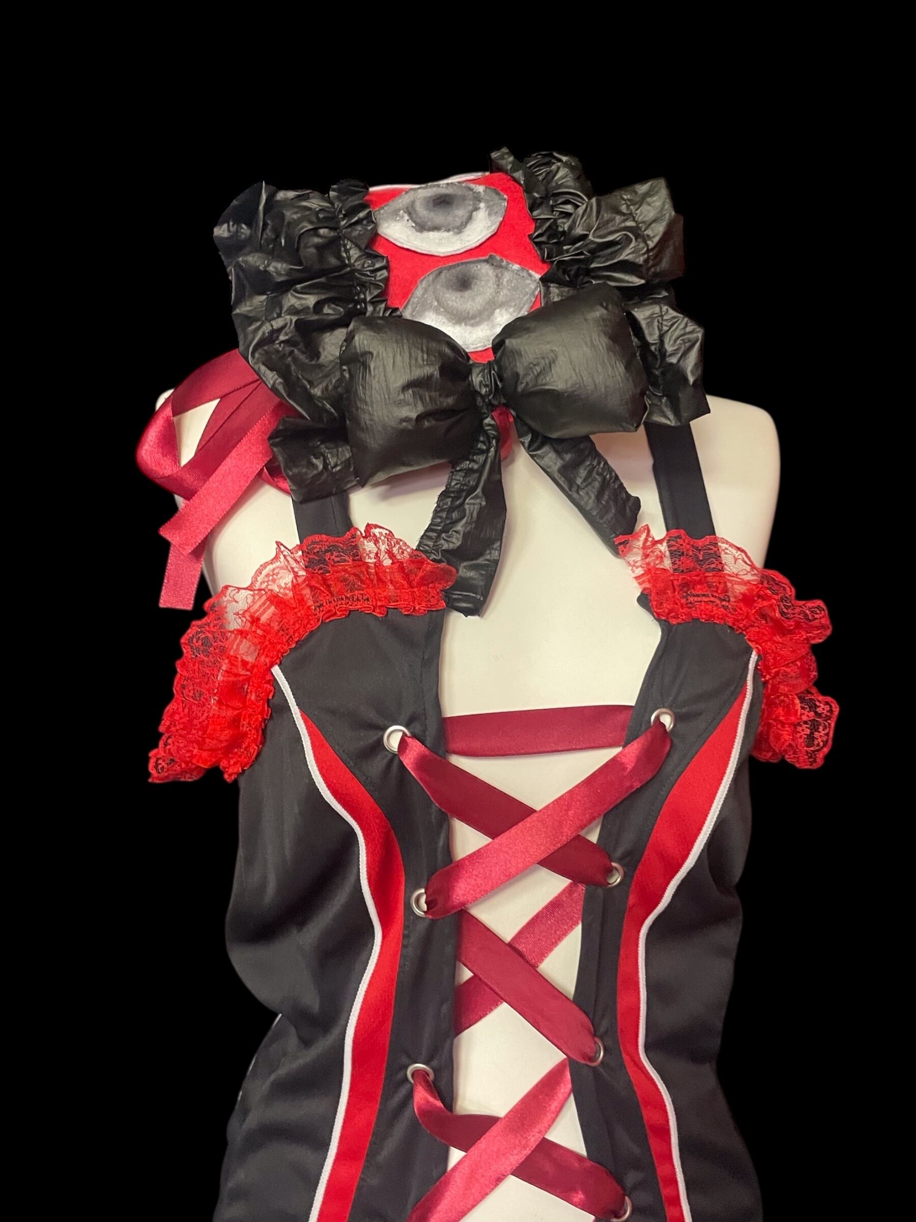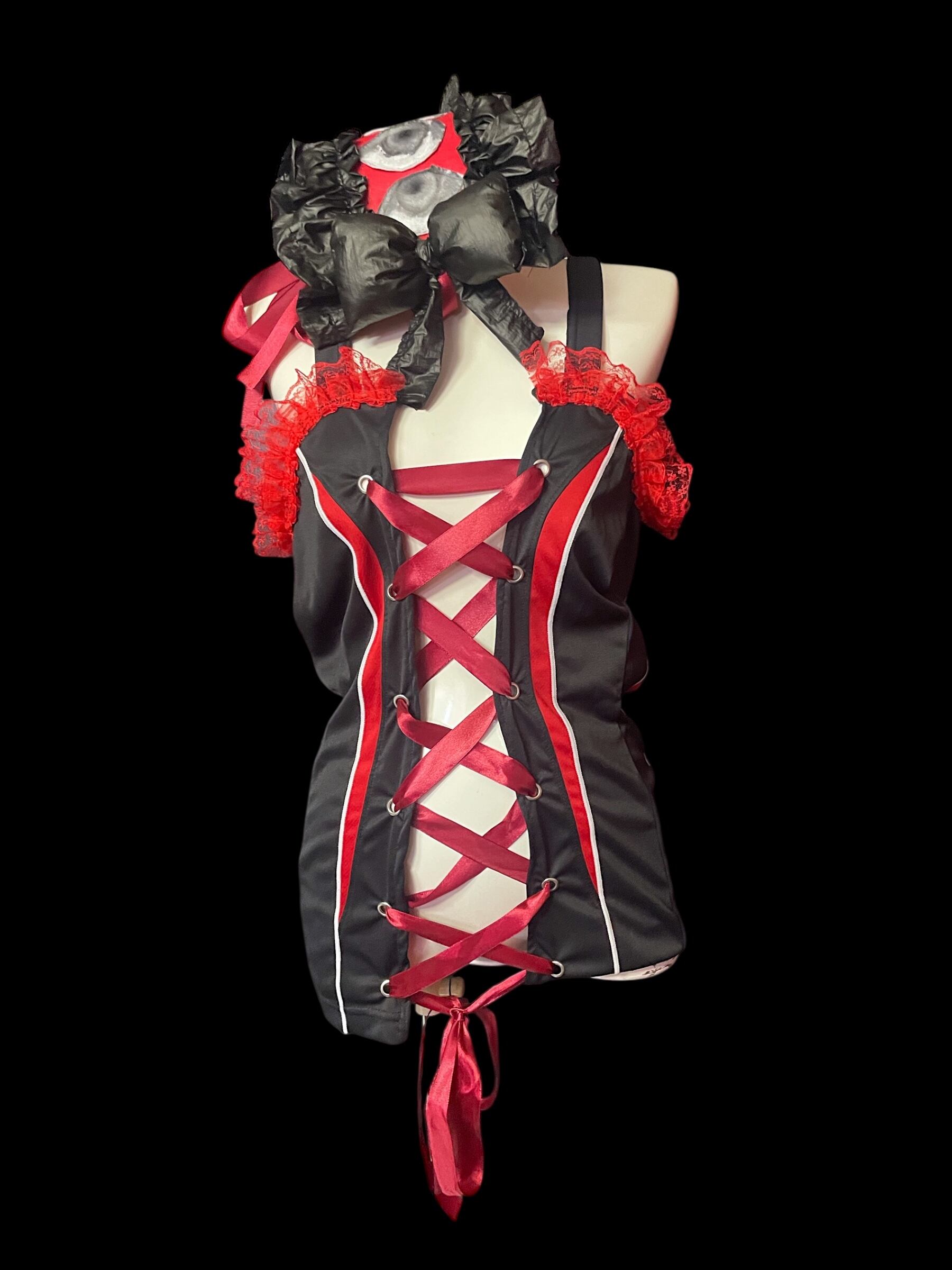 同系色で作った別売りの不気味ヘッドドレスとのコーデ写真(1〜3枚目)ですが、こちらとのセットでの着用もおすすめです。(※ヘッドドレスは別売りとなります)