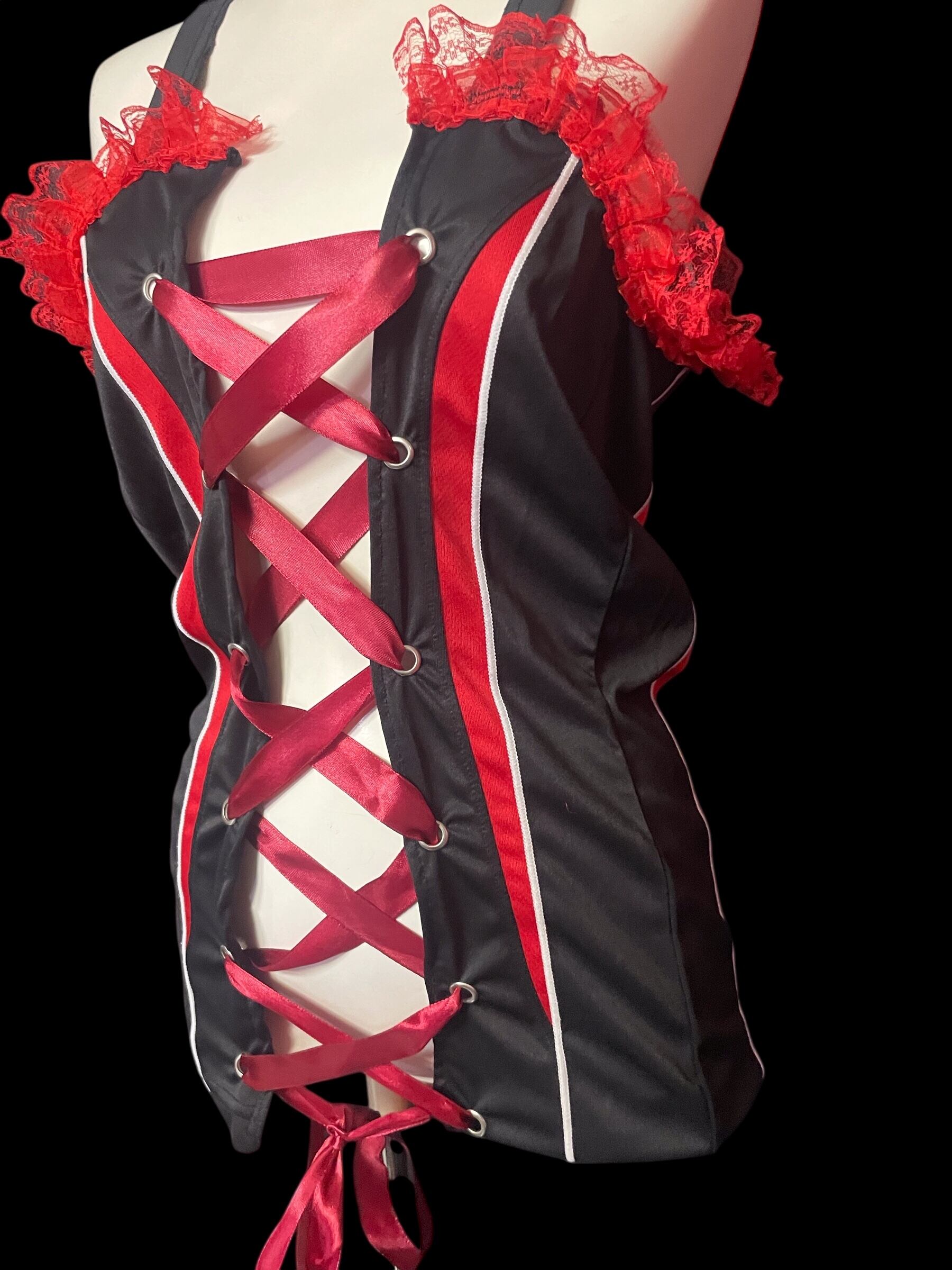 コルセット風の編み上げデザインが特徴のキャミソール。