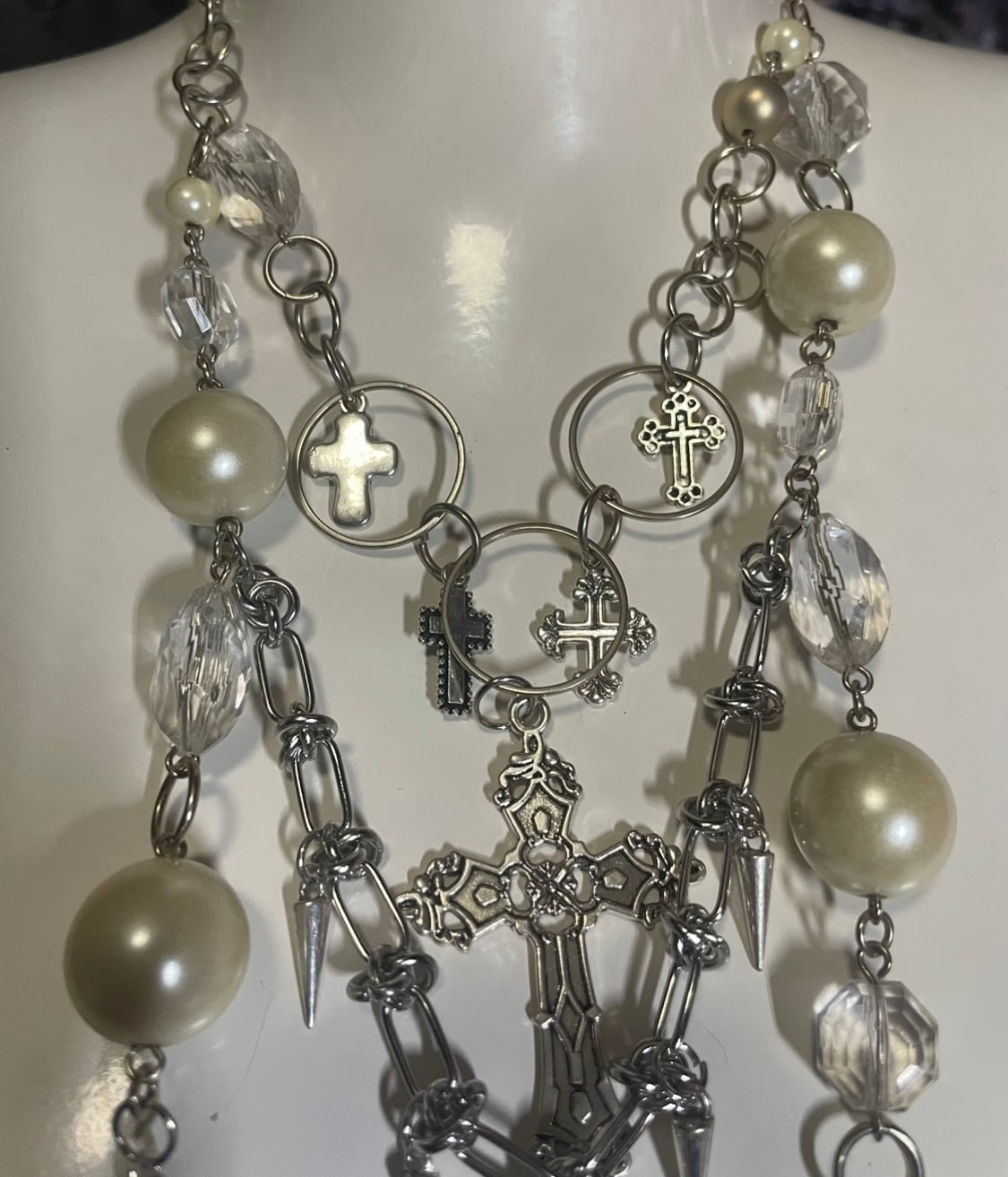 ヴィンテージネックレスを一点一点丁寧に解体し、新たな表情を持たせて再構築しました。星は手作業で制作したオリジナルパーツを使っています。