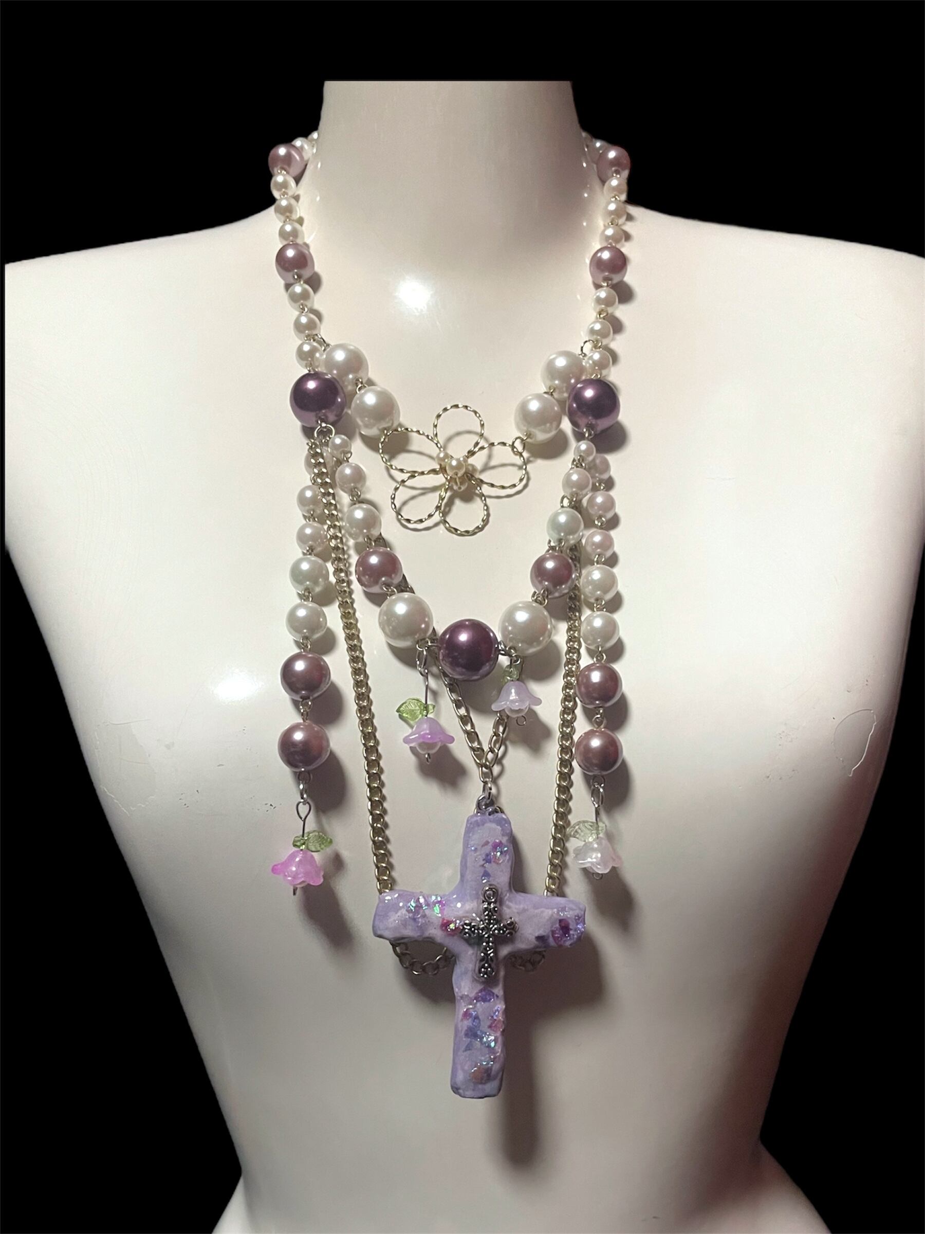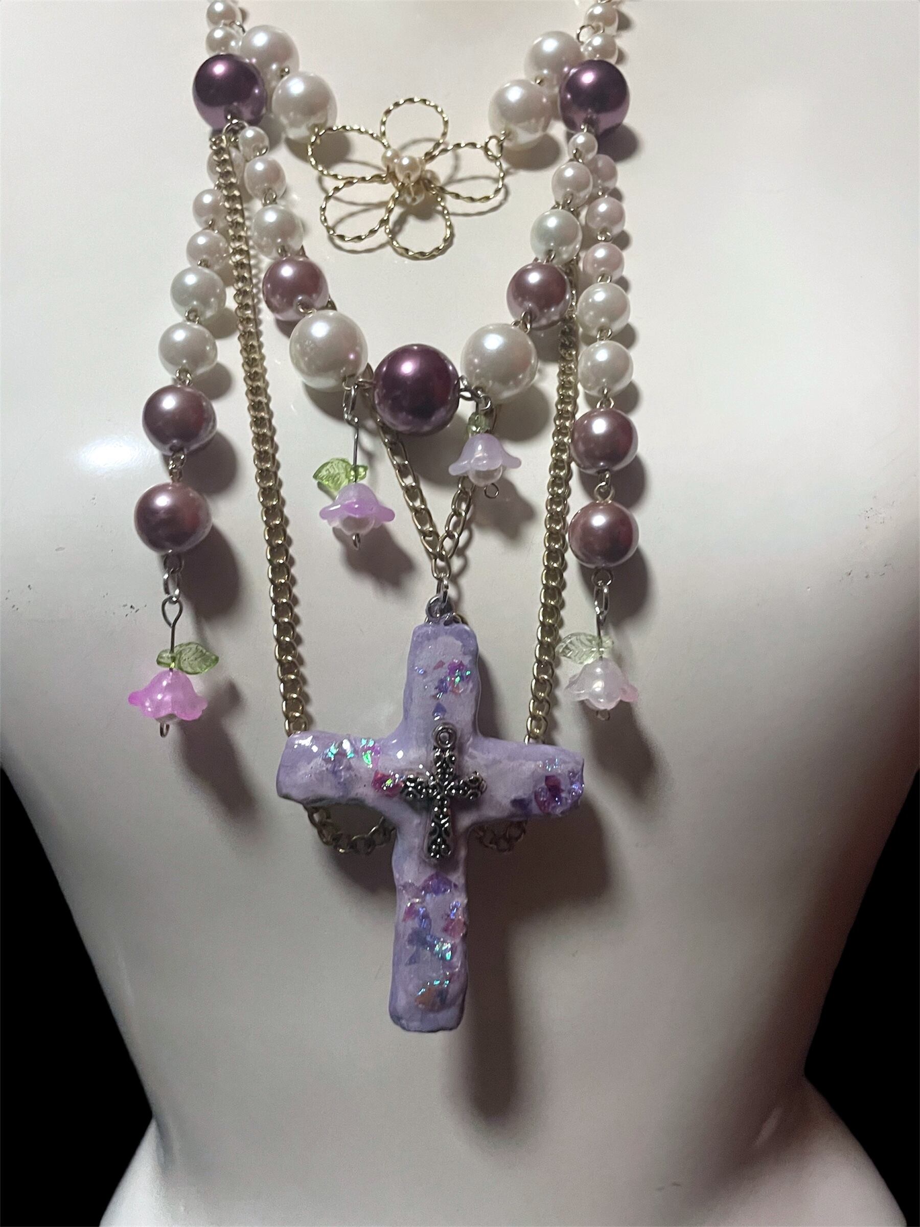 Purple Bloom Cross Necklace
