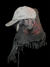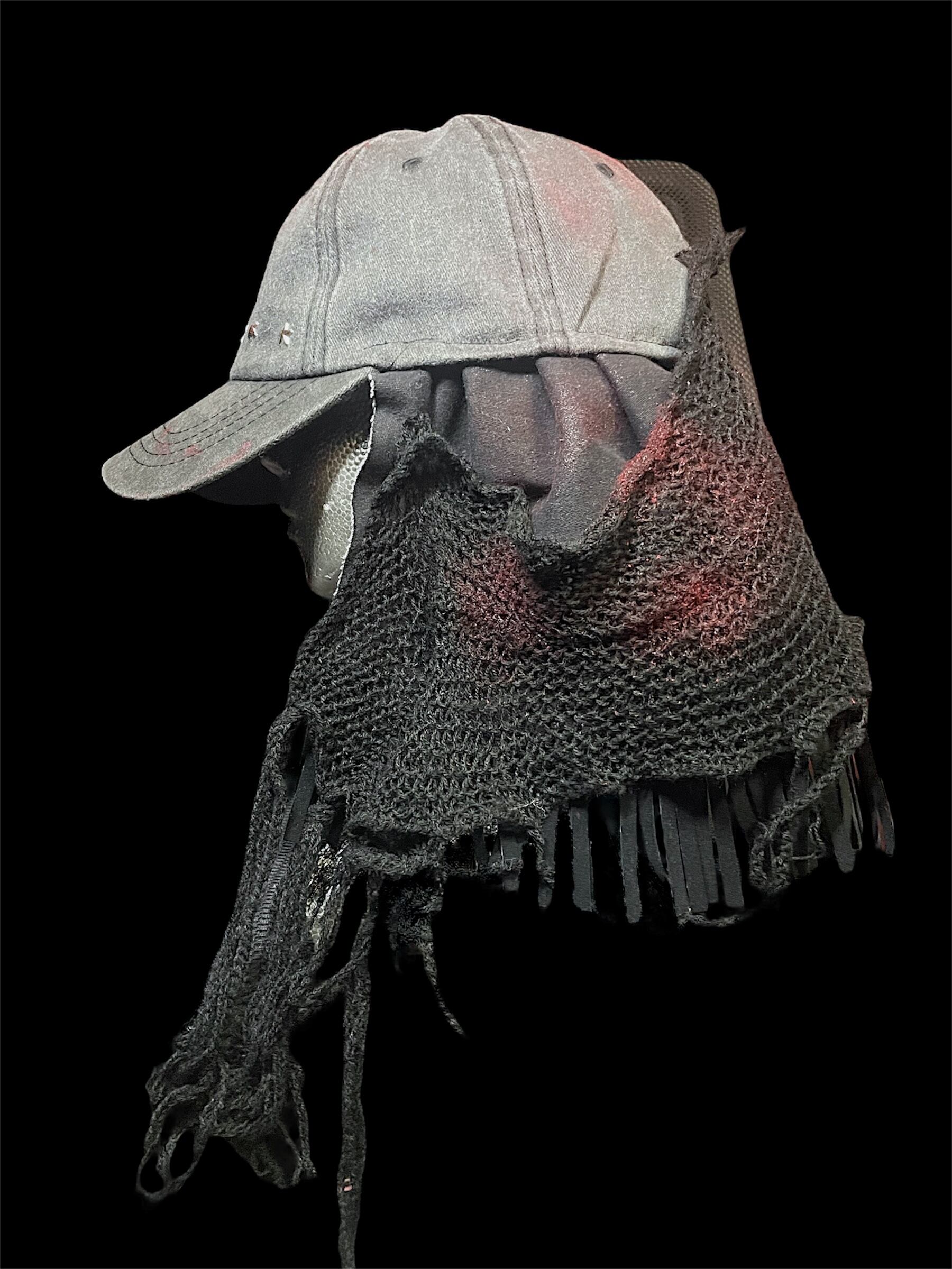 サイドには布やニット素材の装飾が施され、独特の雰囲気を演出。モード系やストリート系のコーディネートのポイントになるアイテムです。