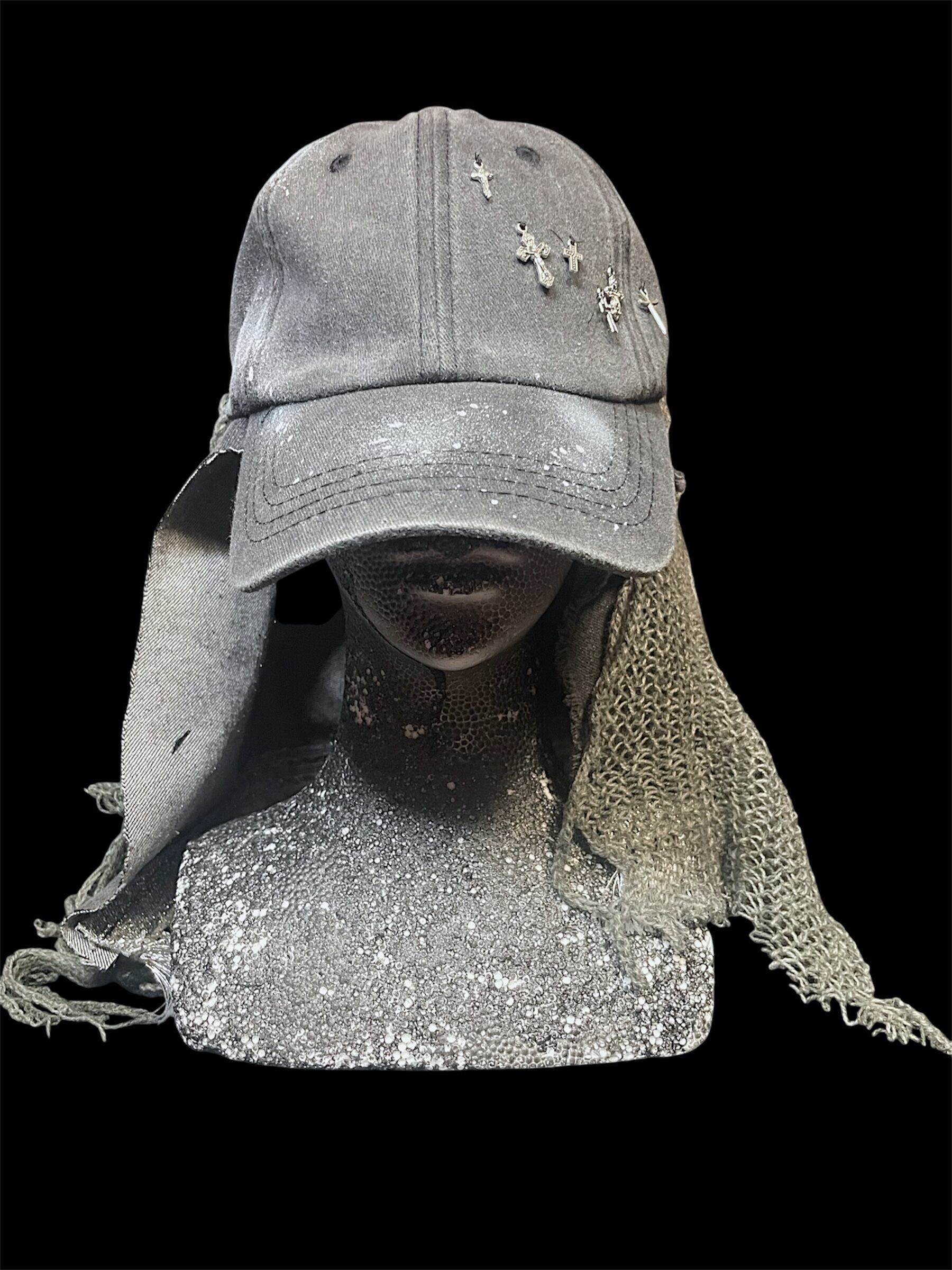 キャップにスプレーアートや装飾を施したリメイク品。
