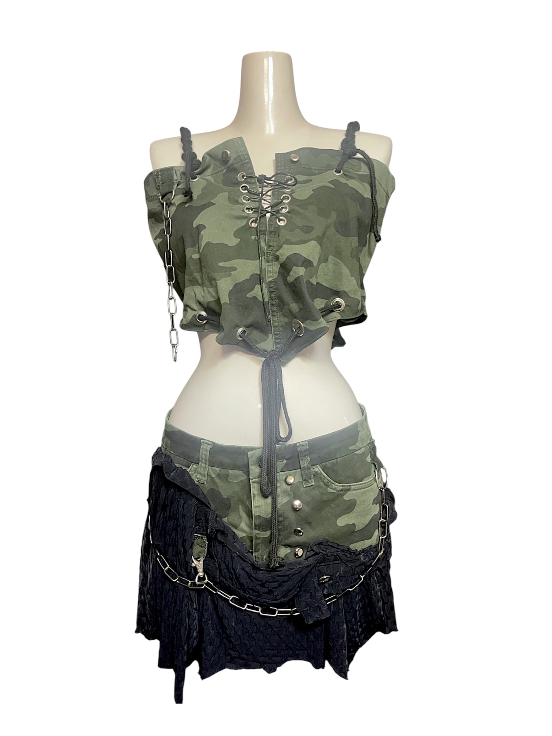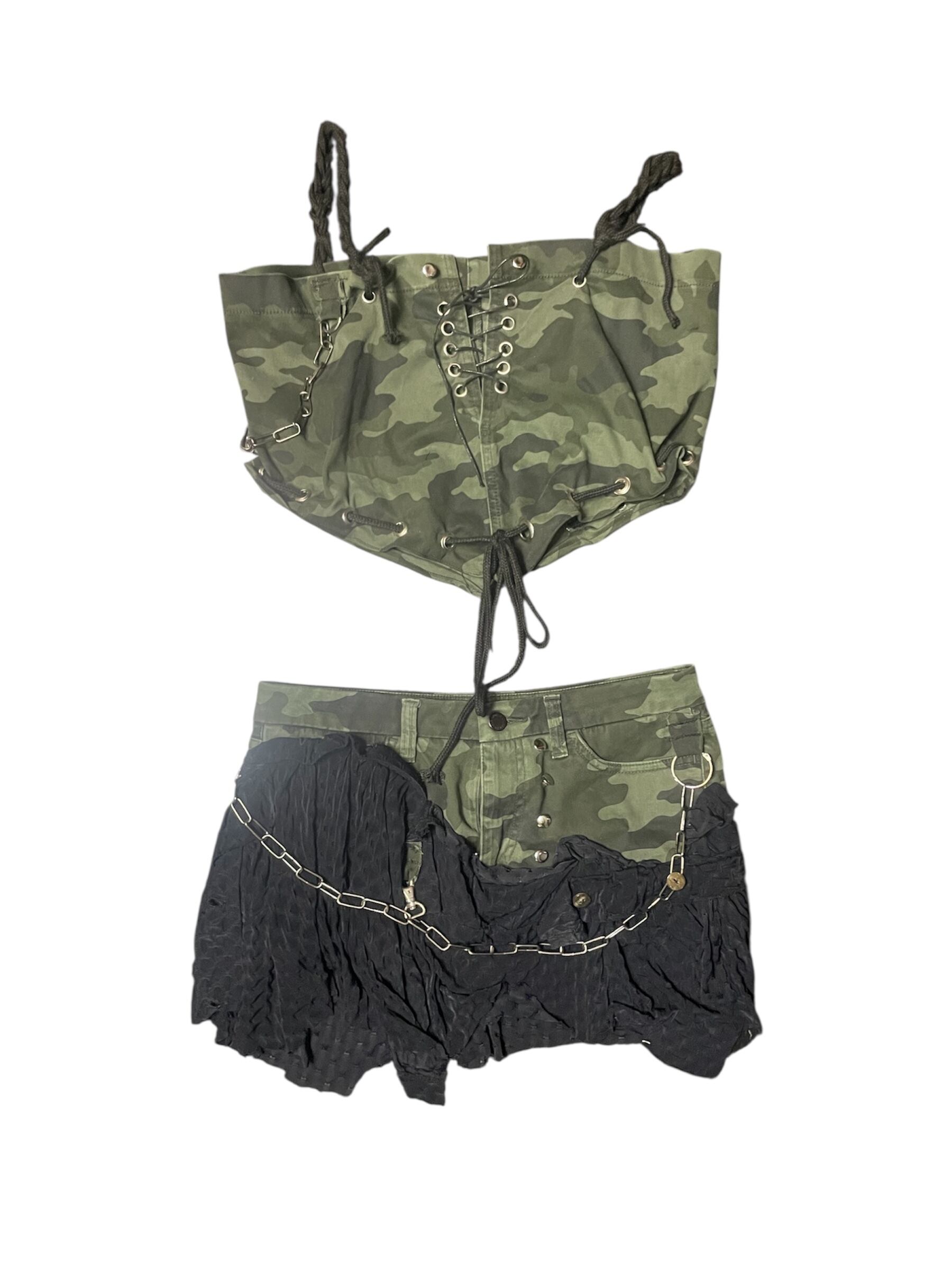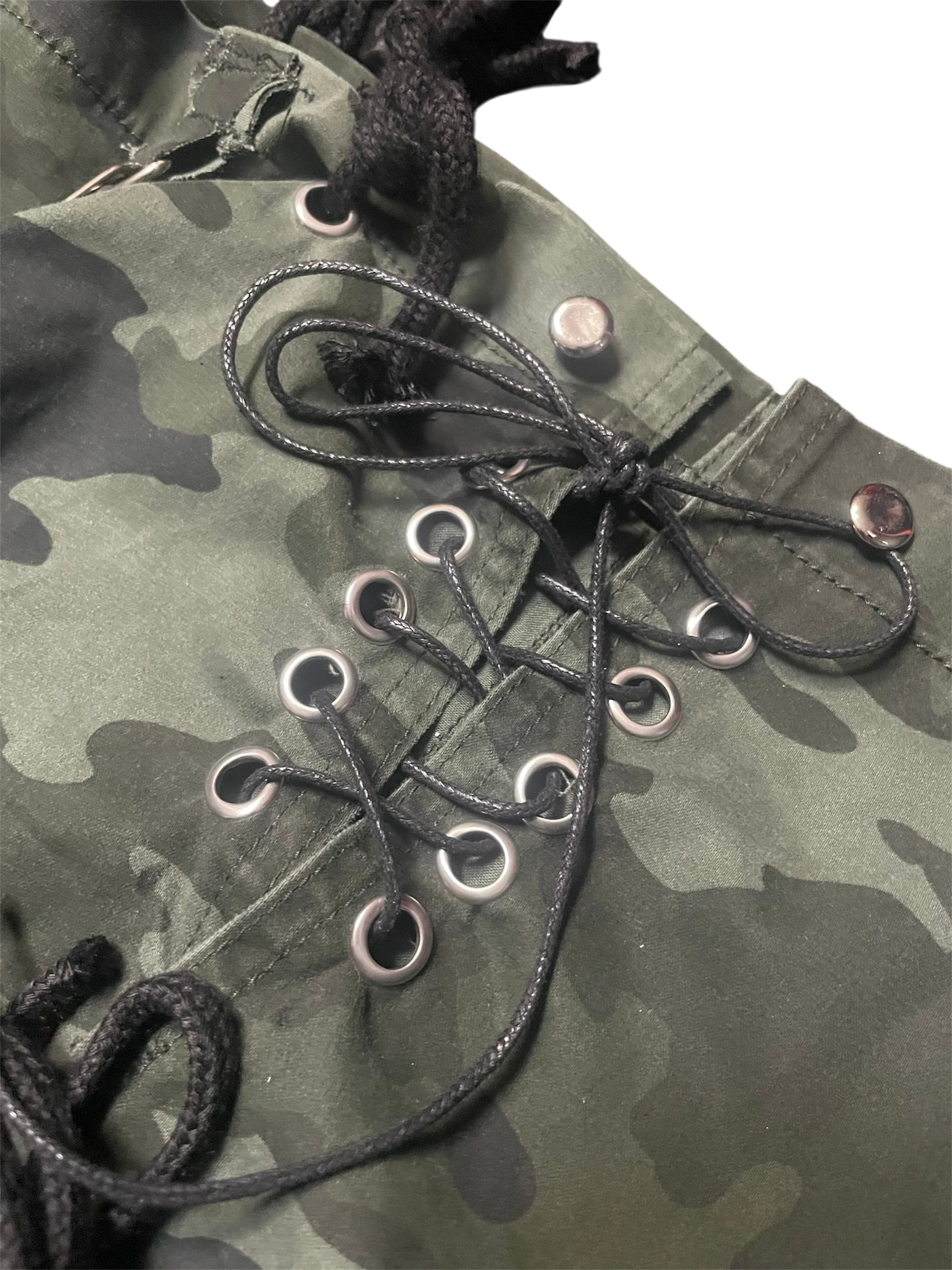 迷彩柄のスカートをトップスとスカートに再構築しました。