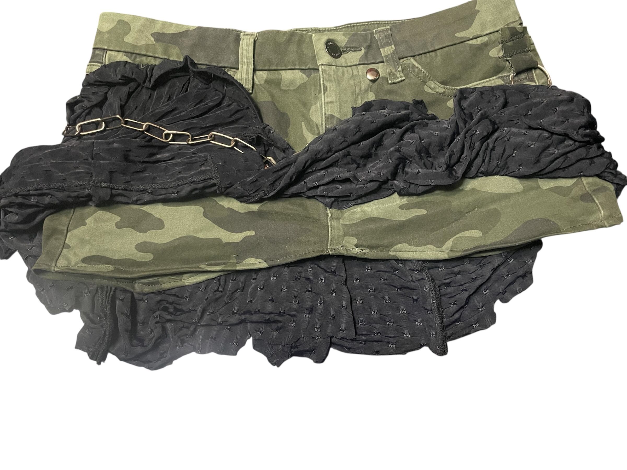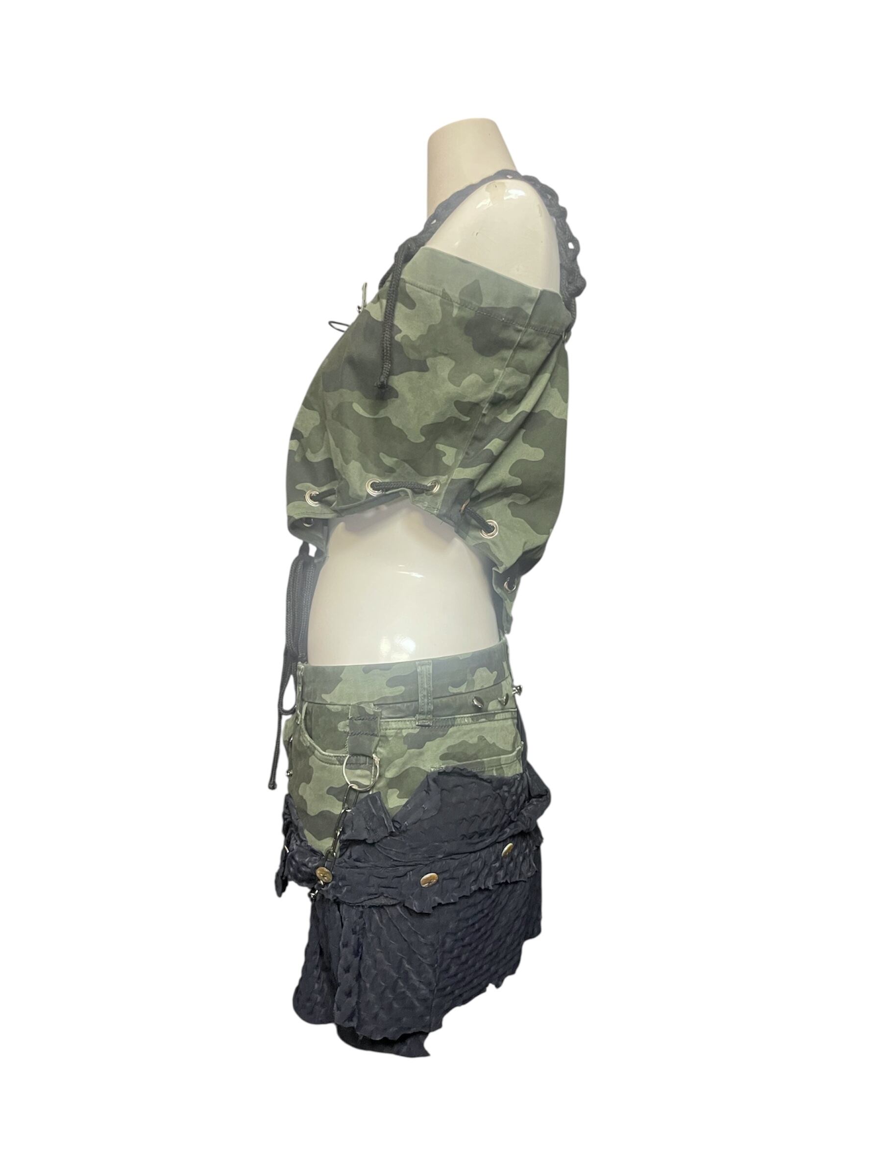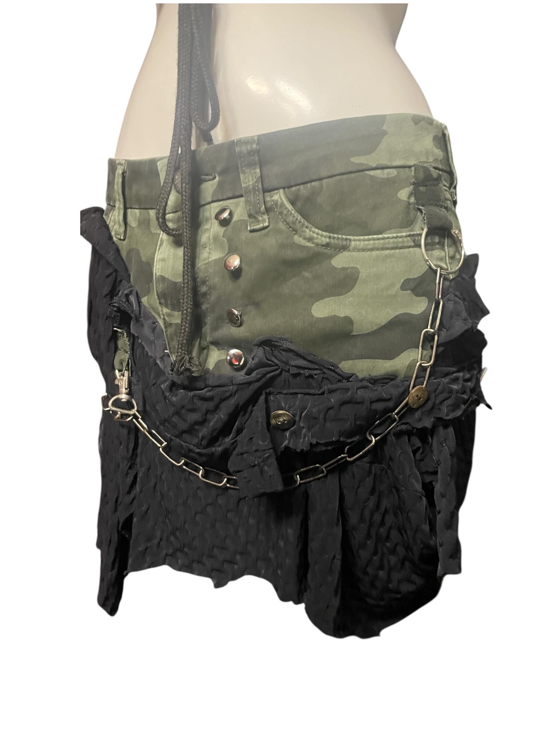 迷彩柄のスカートをトップスとスカートに再構築しました。