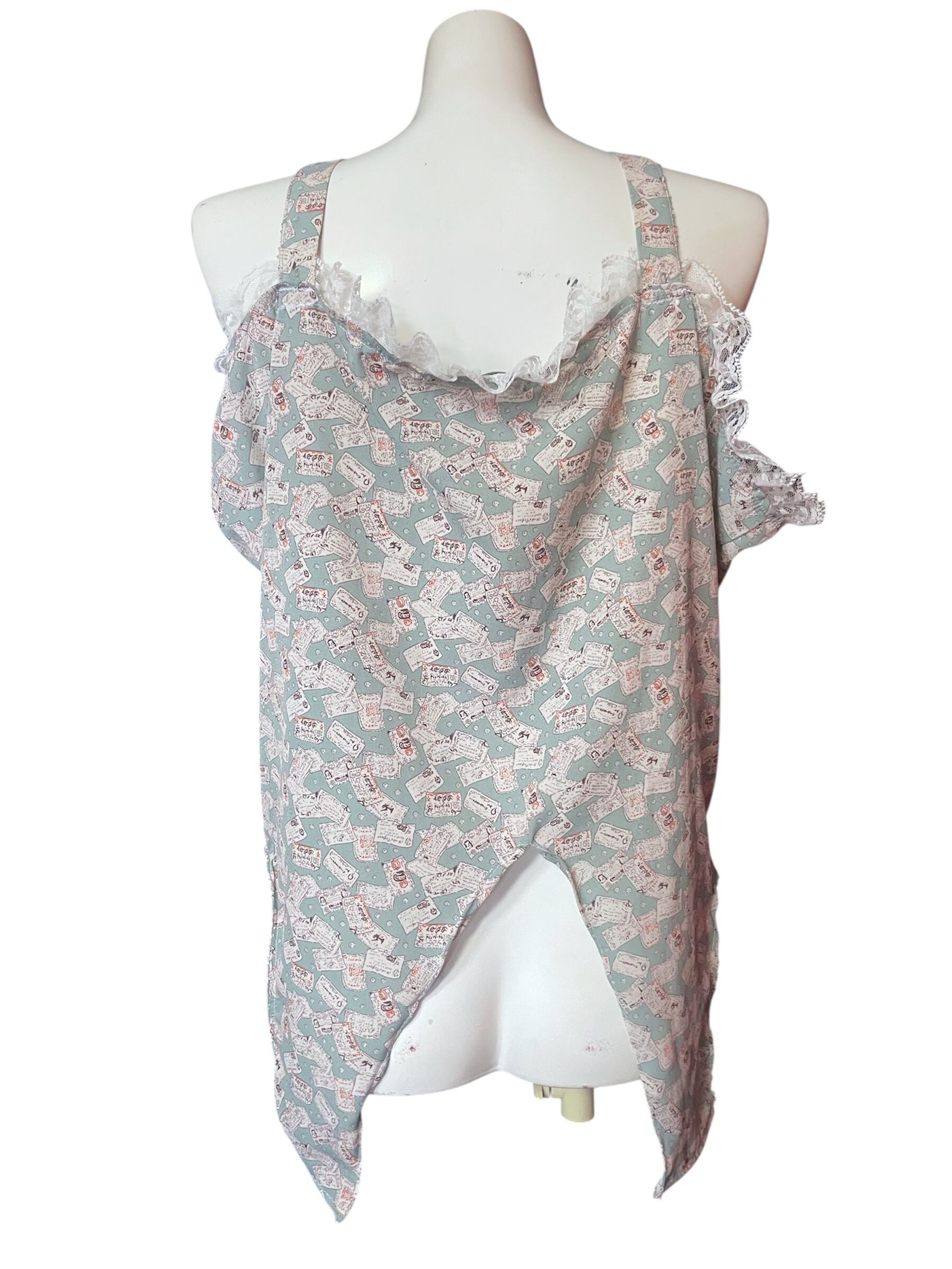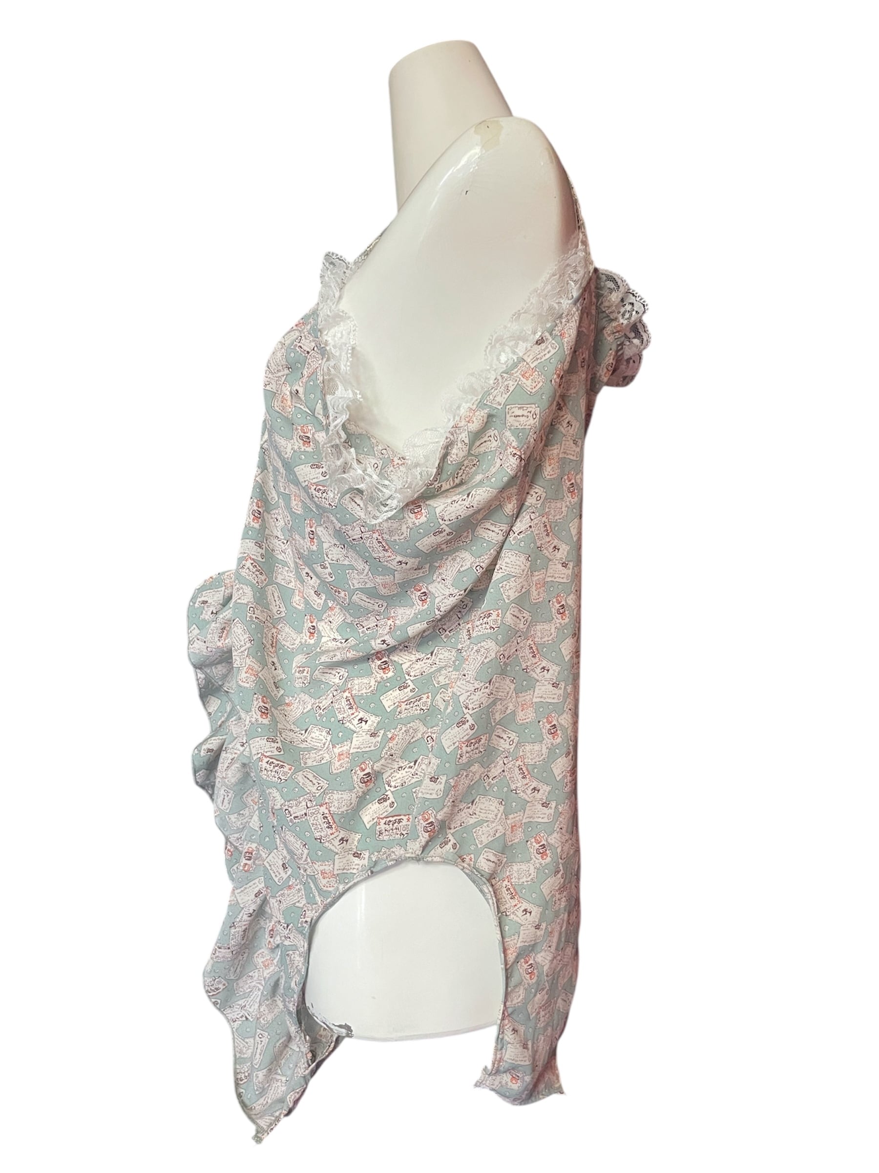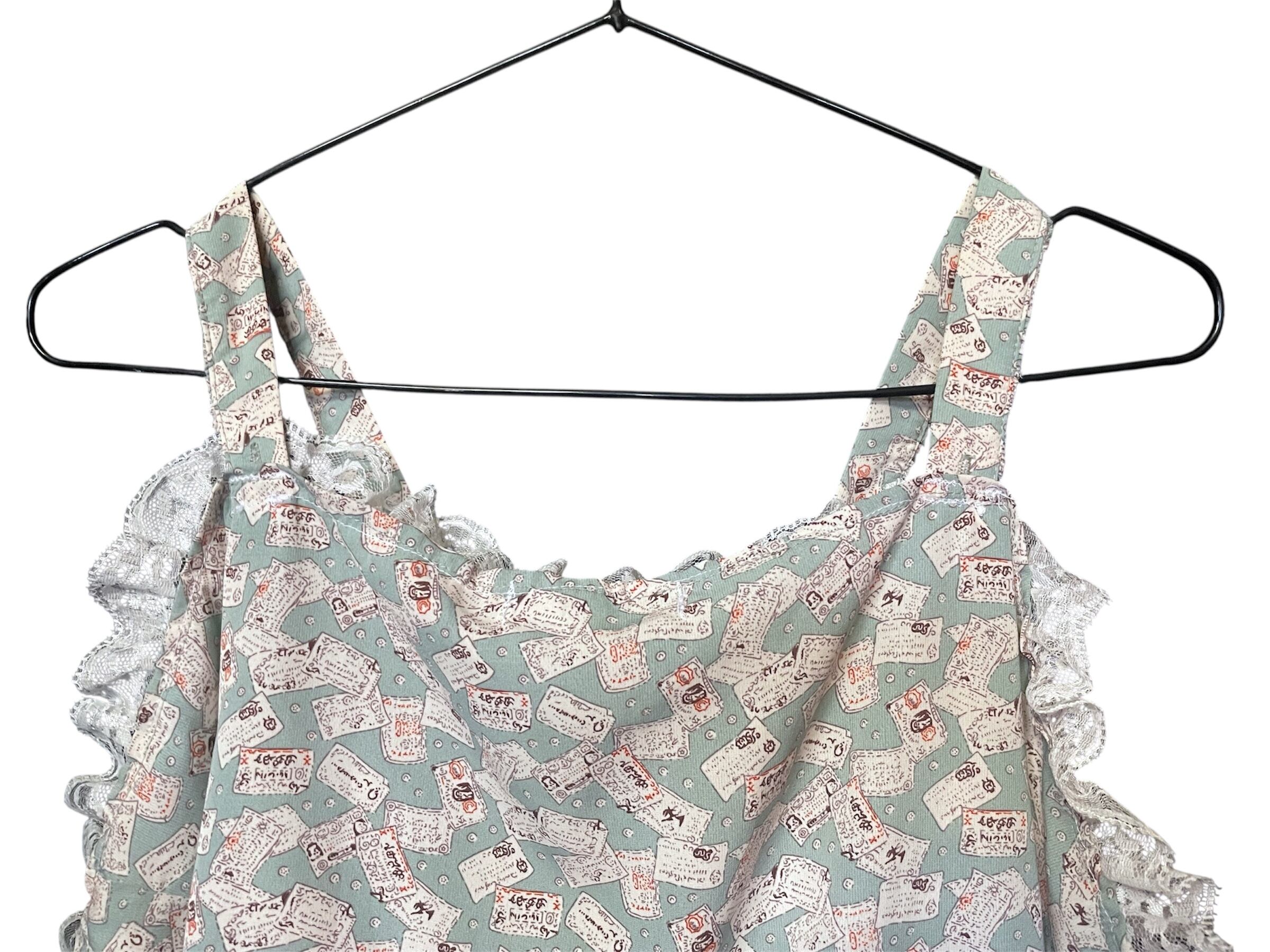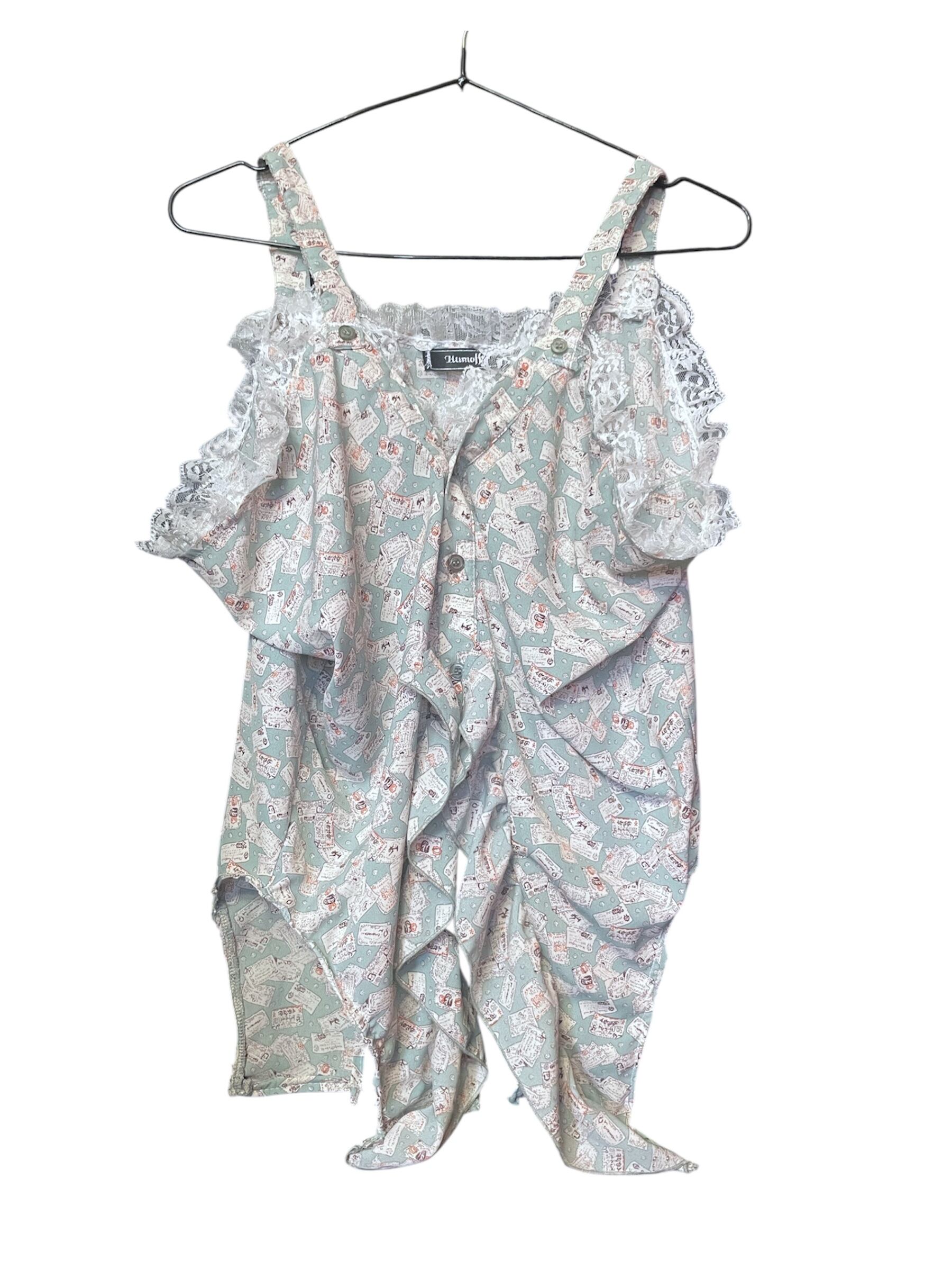 水色のトランプ柄のシャツをリメイクしたキャミソールです。