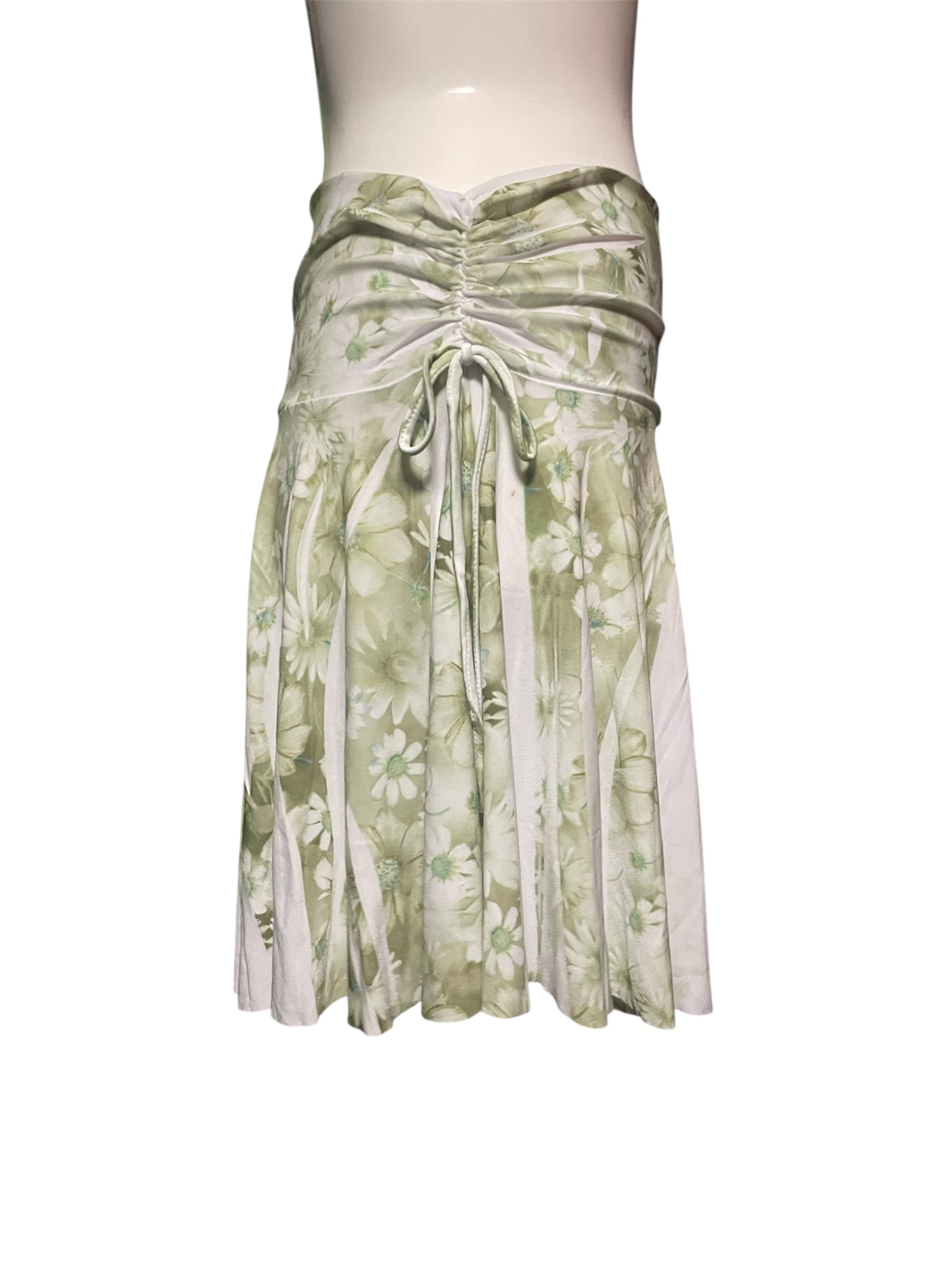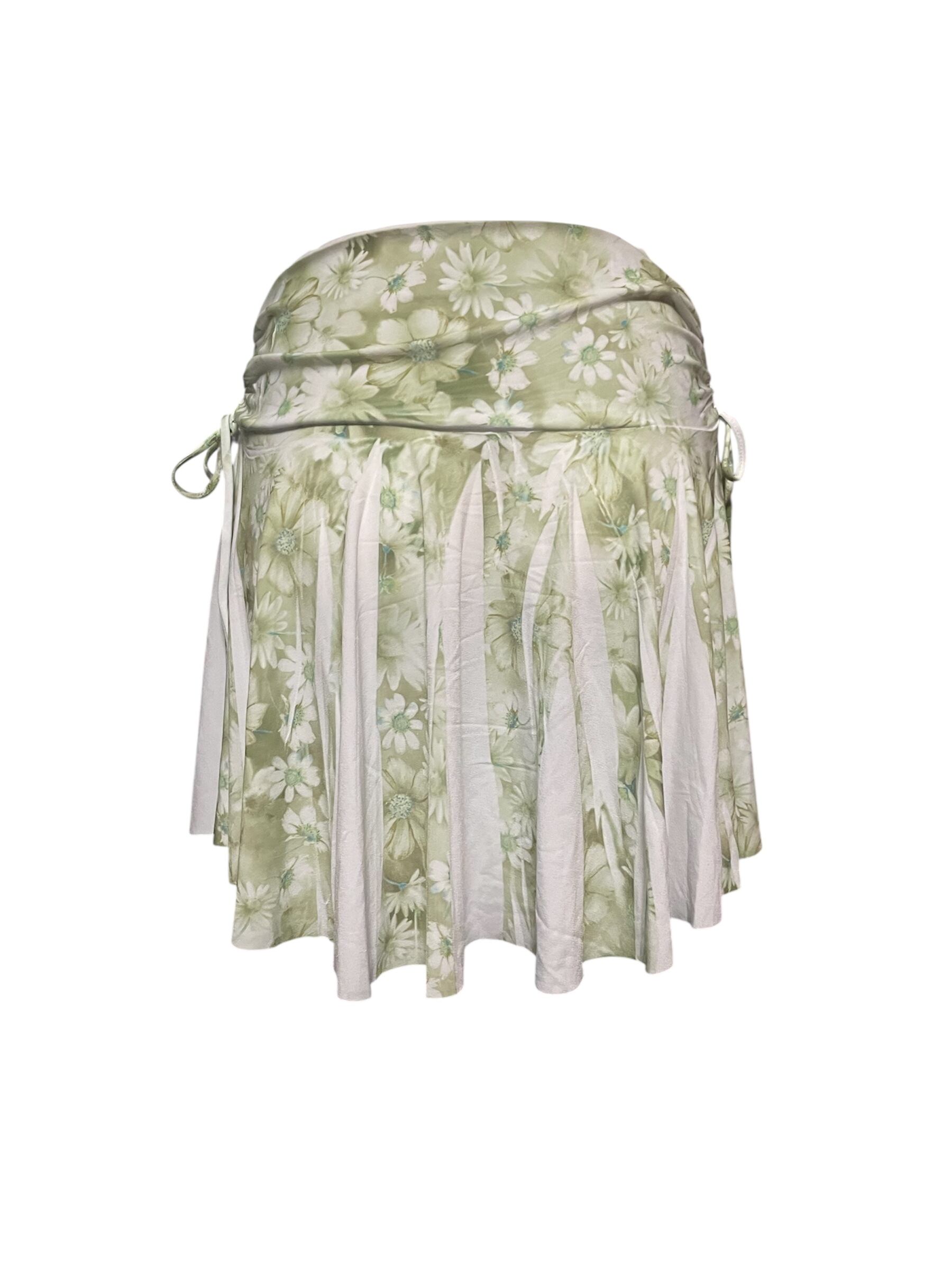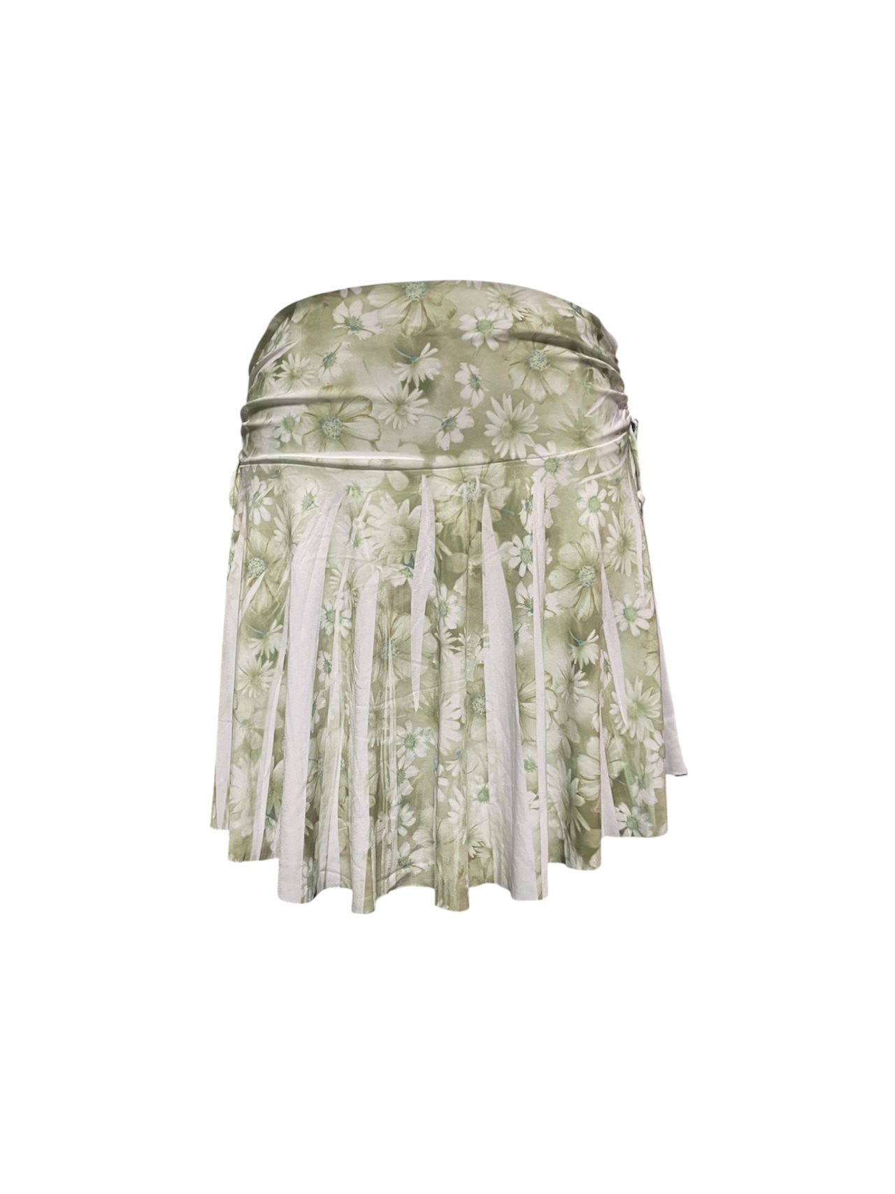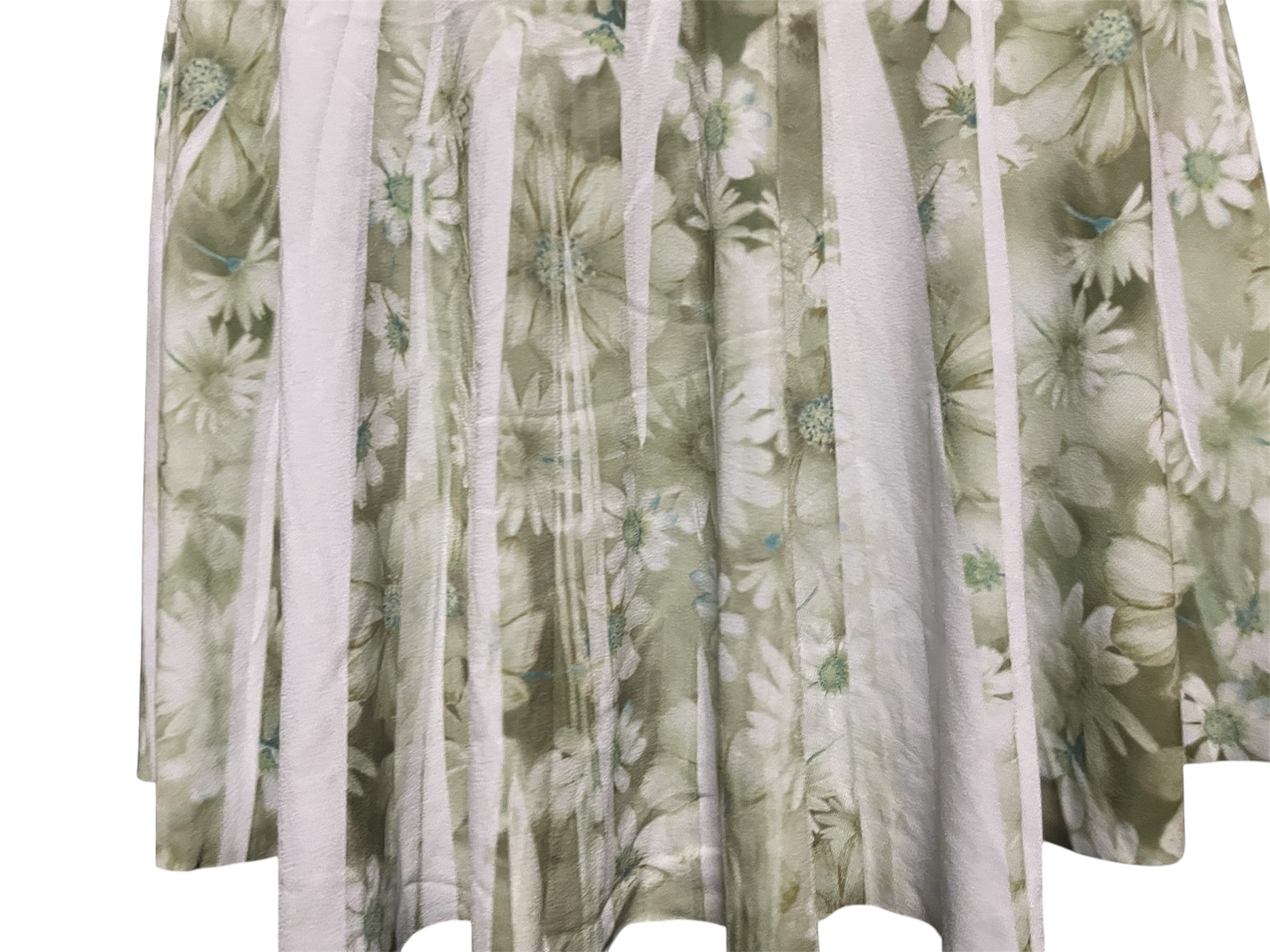 とろみのある伸縮性の高い生地で仕立てた、花柄プリーツスカート。淡いグリーンを基調に、霧がかった花畑のような柔らかな印象の柄が珍しいUSA製の輸入アイテムです。