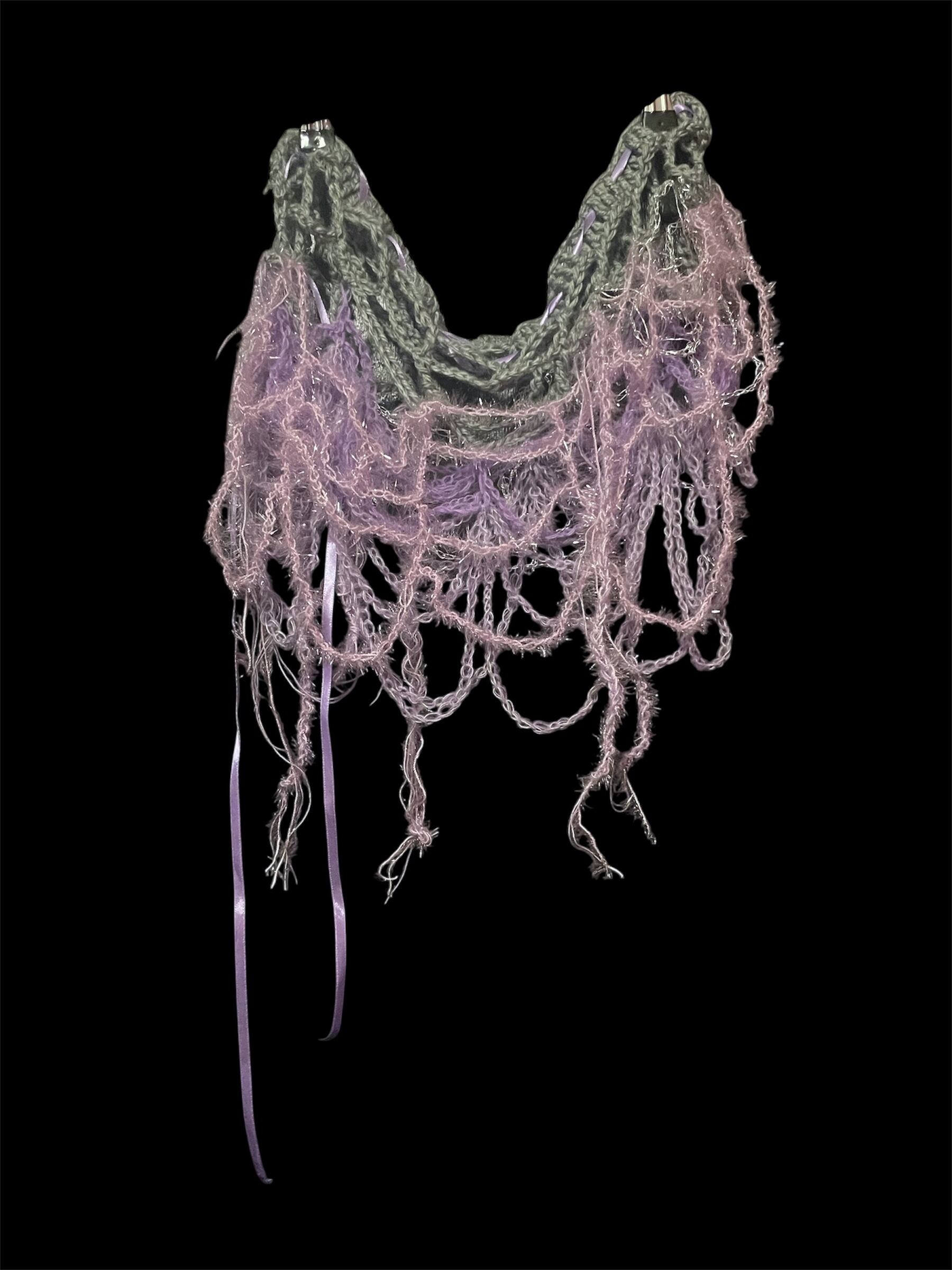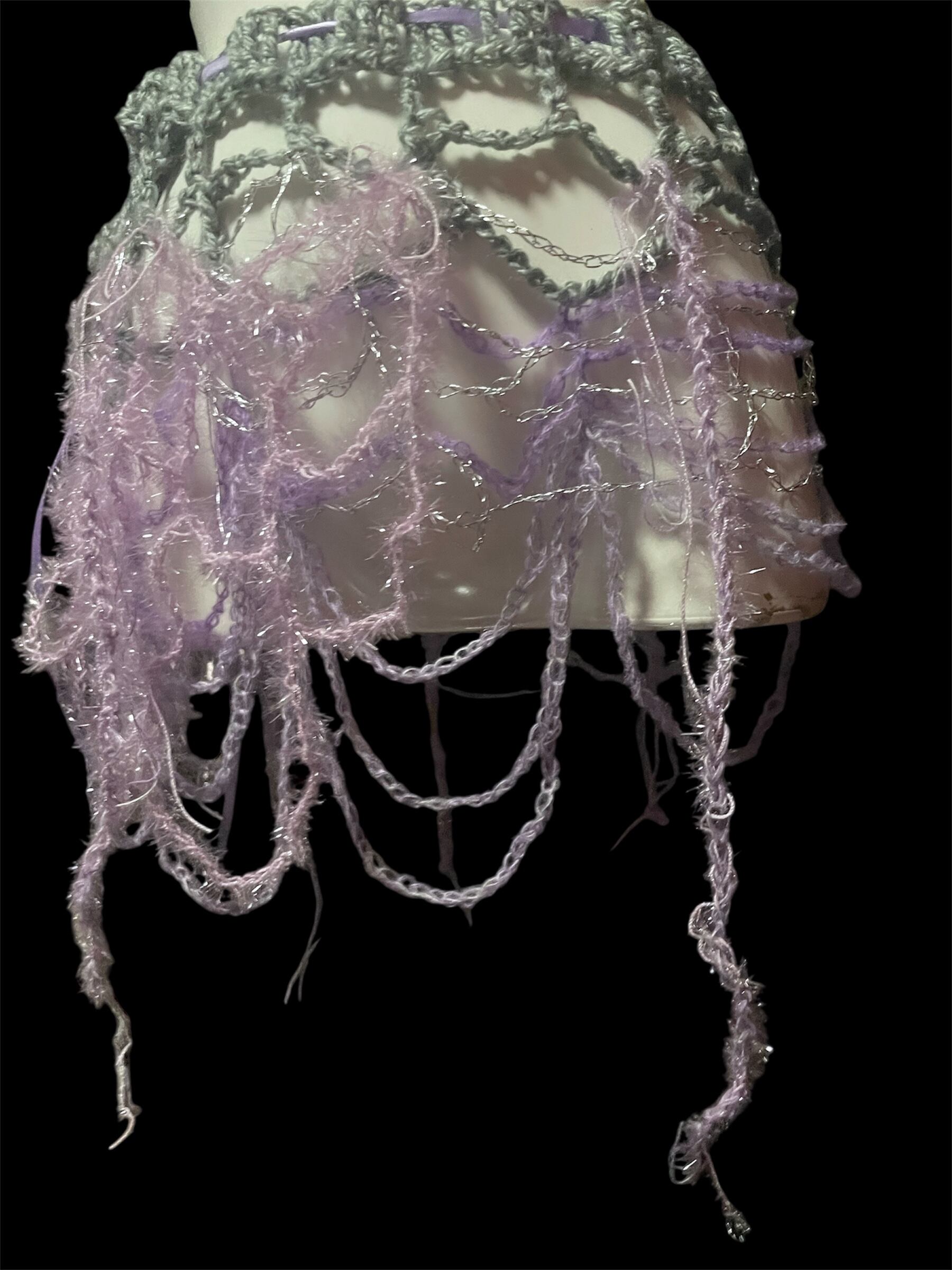 繊細なネット編みが特徴のハンドメイドミニスカートです。