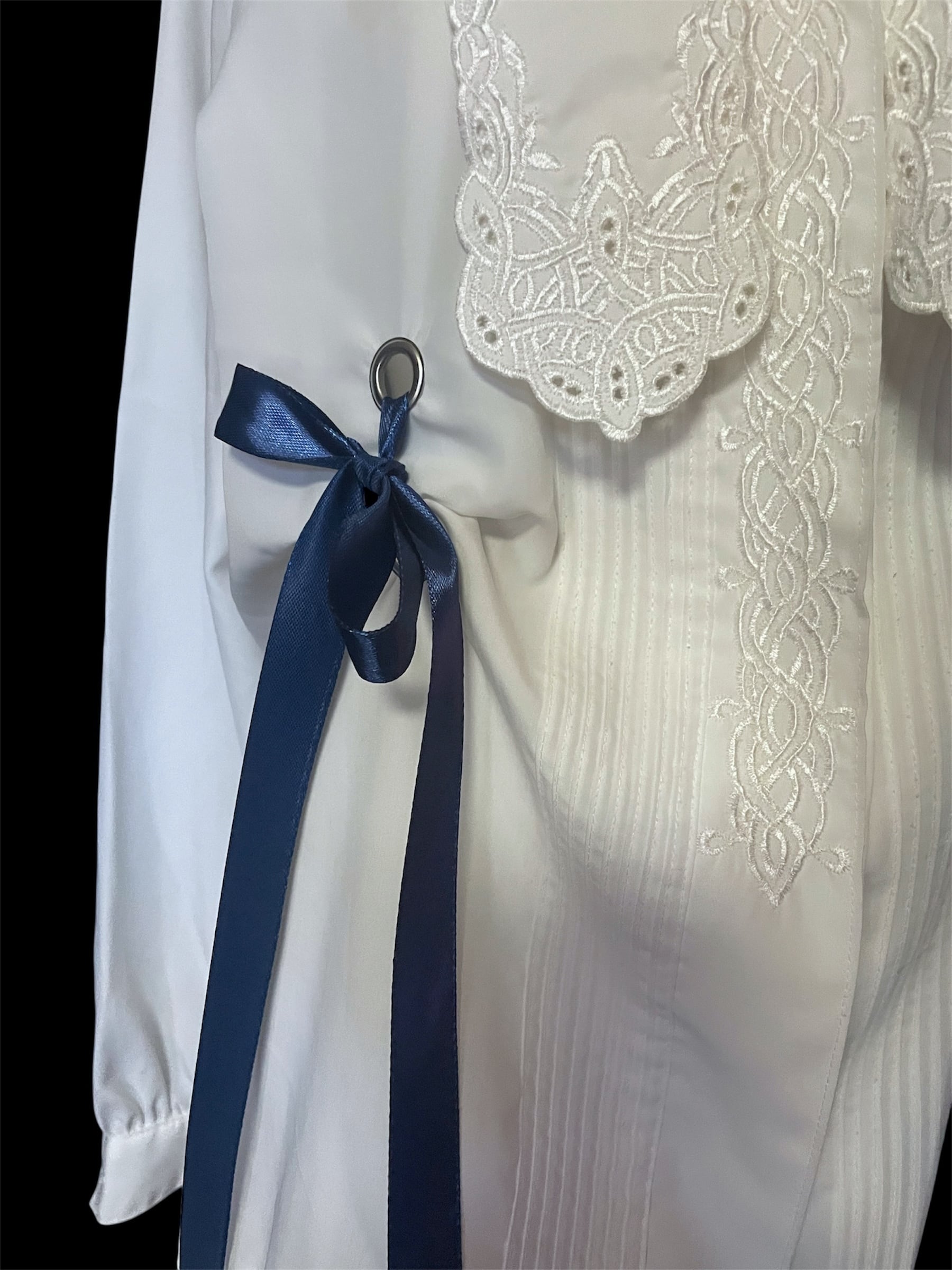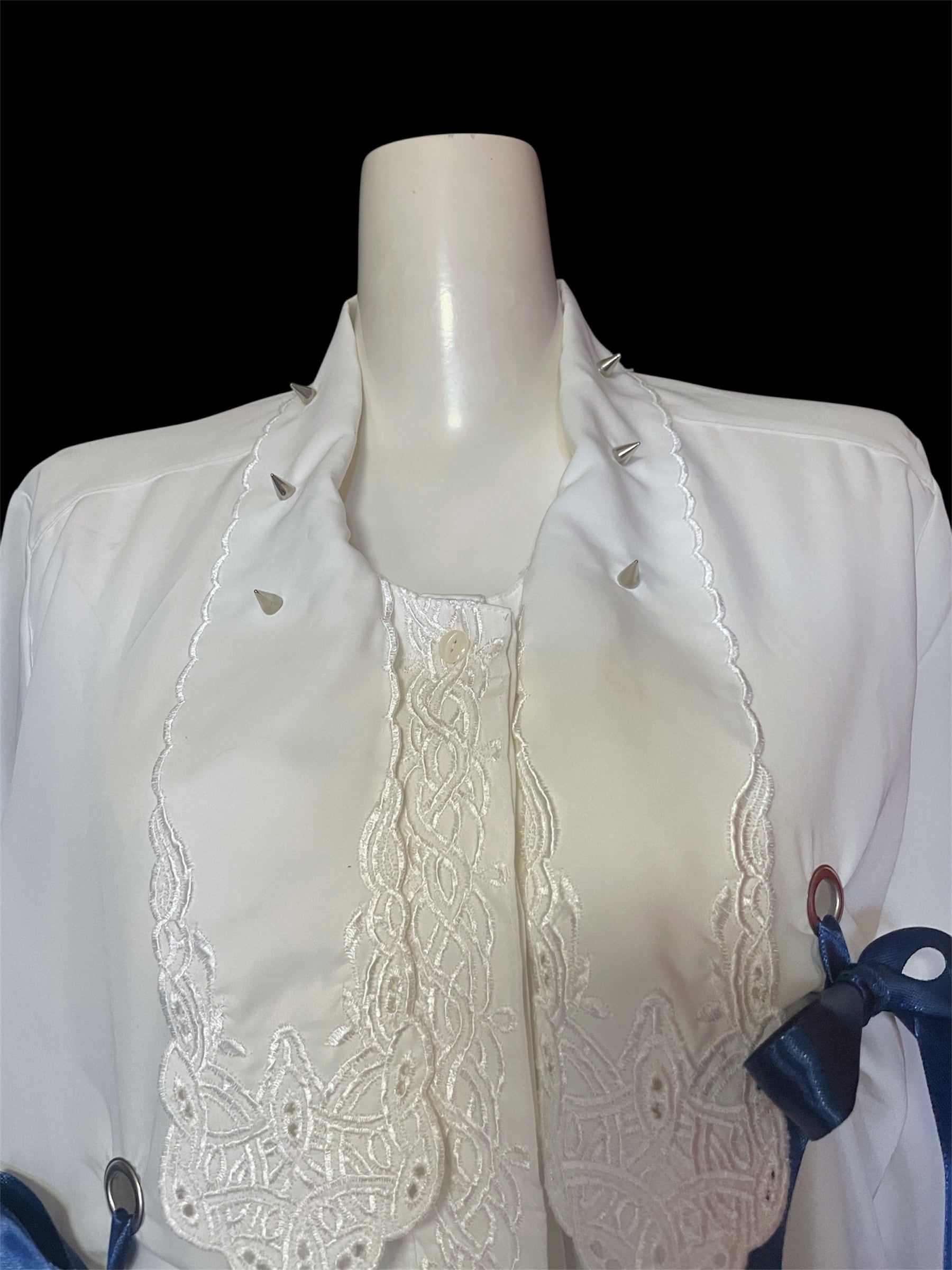 襟には細かくスパイクを施し、クラシカルながらも個性を引き立てる一枚です。