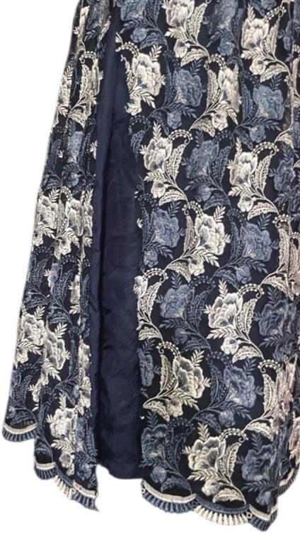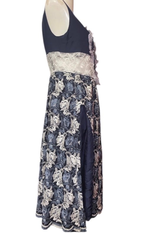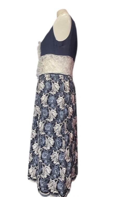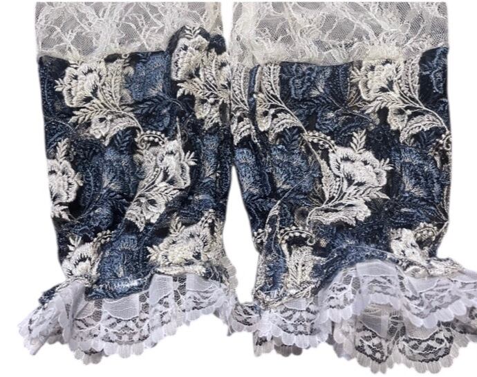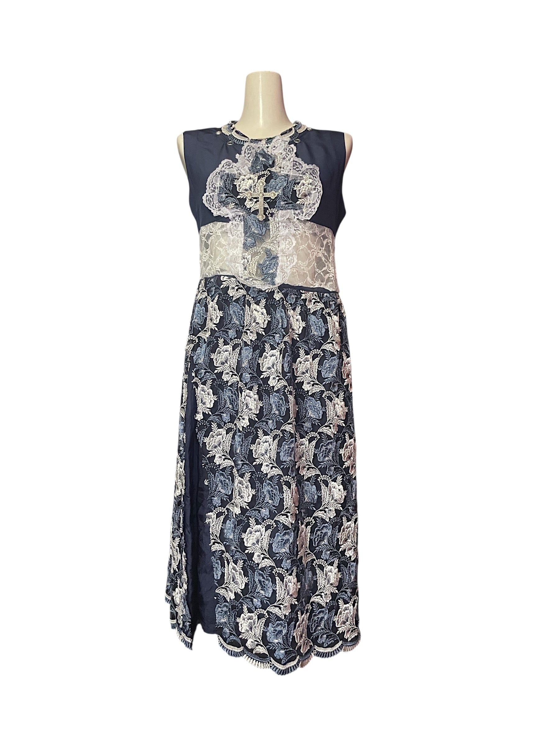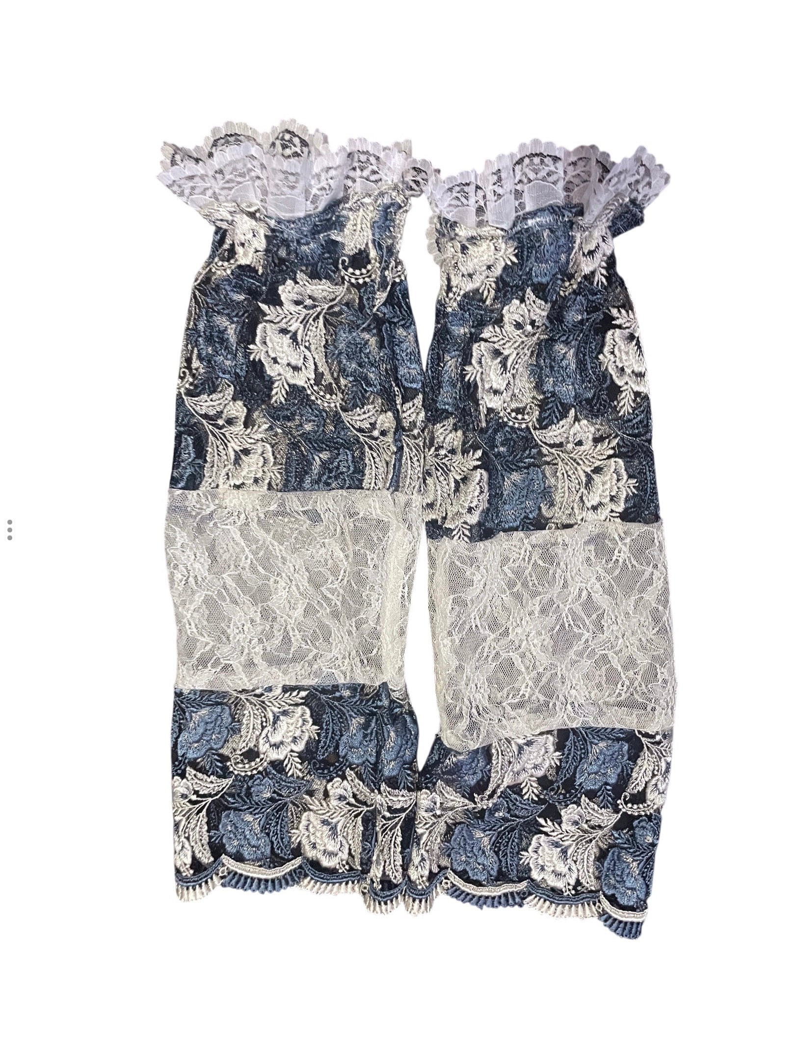 ネイビー×ホワイトの上品なレースを重ねたノースリーブワンピースと、アームカバーのセットアップです。