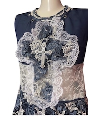 胸元にはクロスモチーフのレースとチャームをあしらい、程よく透け感のあるレース切り替えが印象的です。