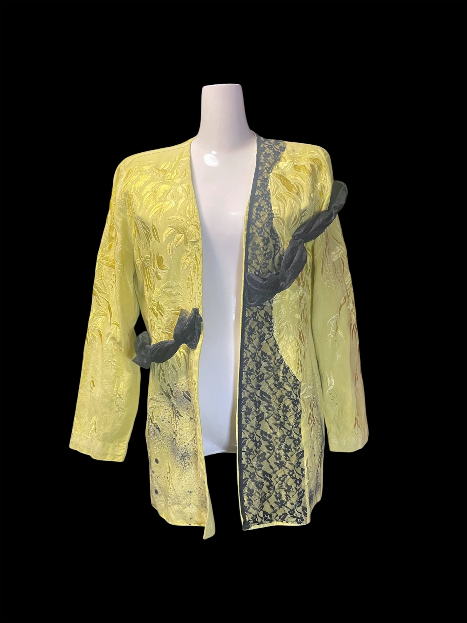 チュールやレースを大胆に組み合わせたリメイクの羽織。
