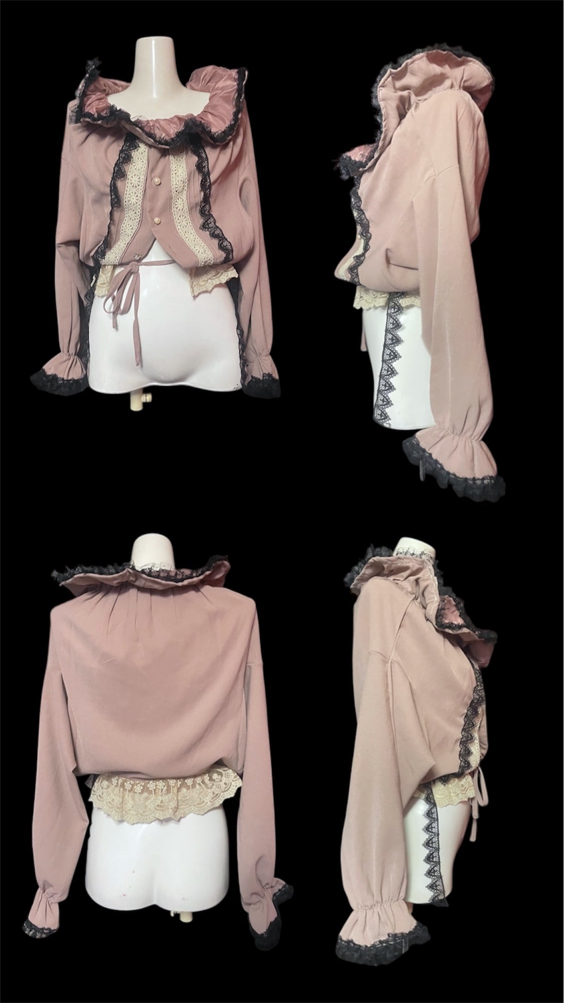 くすみピンクのトップスとレイヤードスカートを組み合わせたリメイクセットアップ。