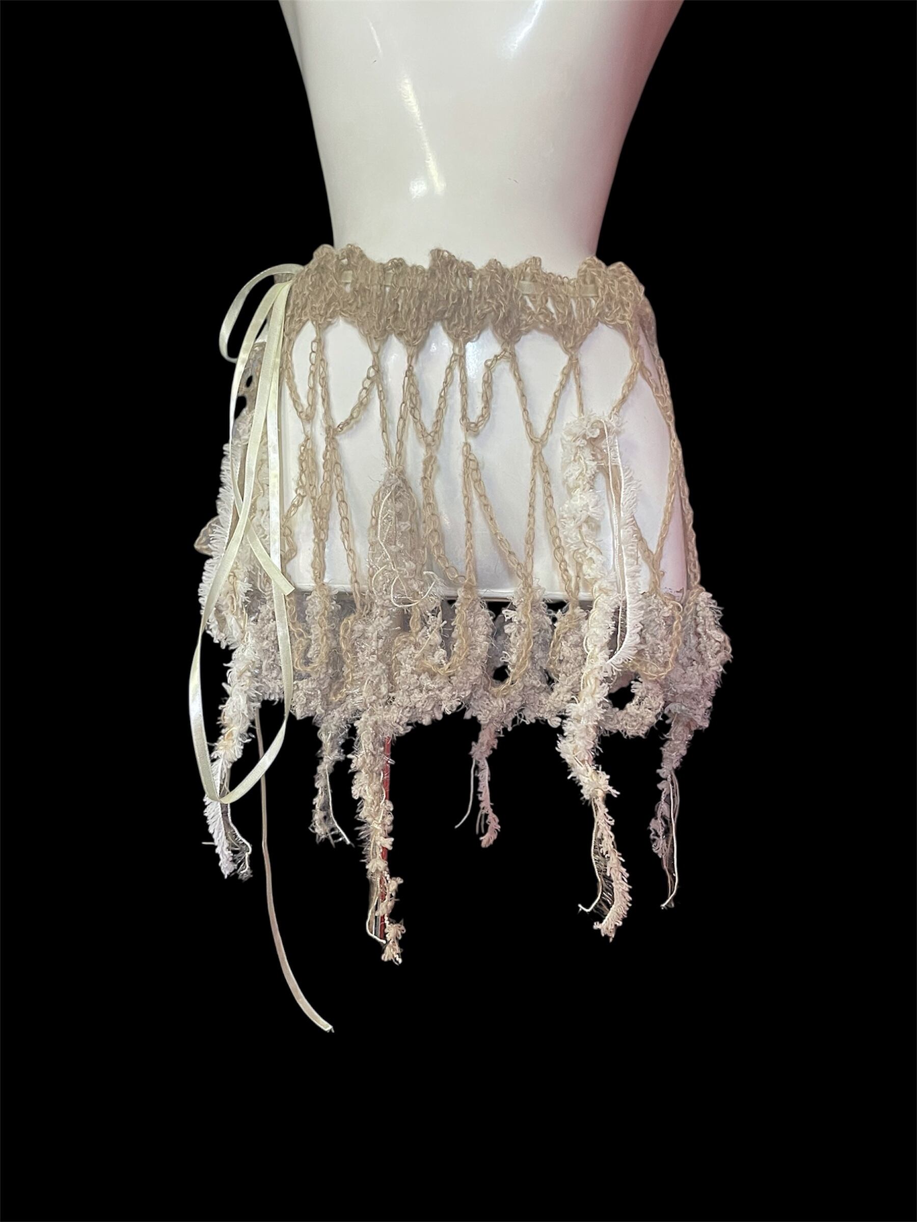 繊細なネット編みが特徴のハンドメイドスカートです。