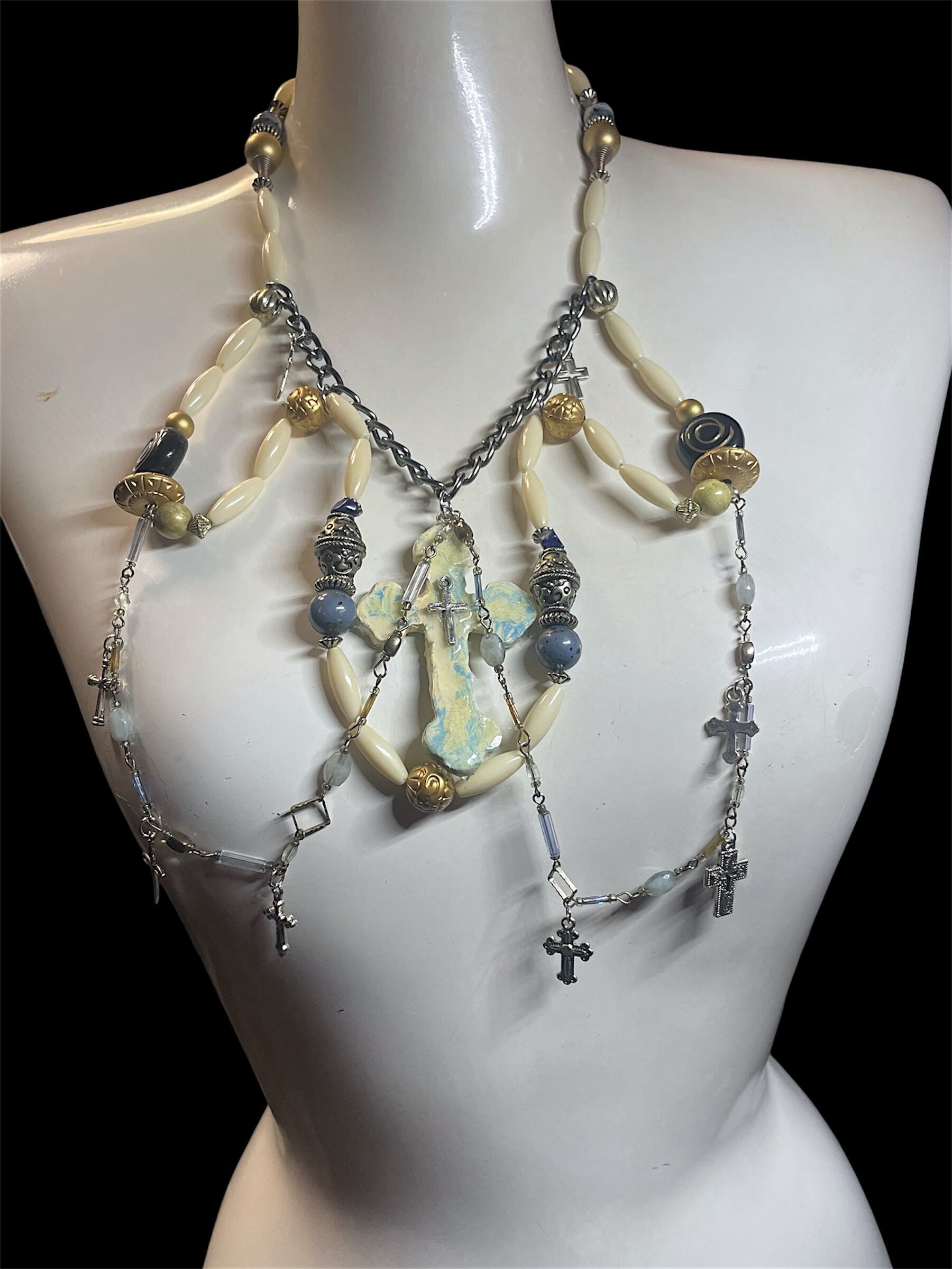 中央のクロスチャームはオリジナルで制作した特別なパーツです。丈夫に仕上げておりますが、落下など強い衝撃が加わると破損の恐れがございますので、お取り扱いには十分ご注意ください。