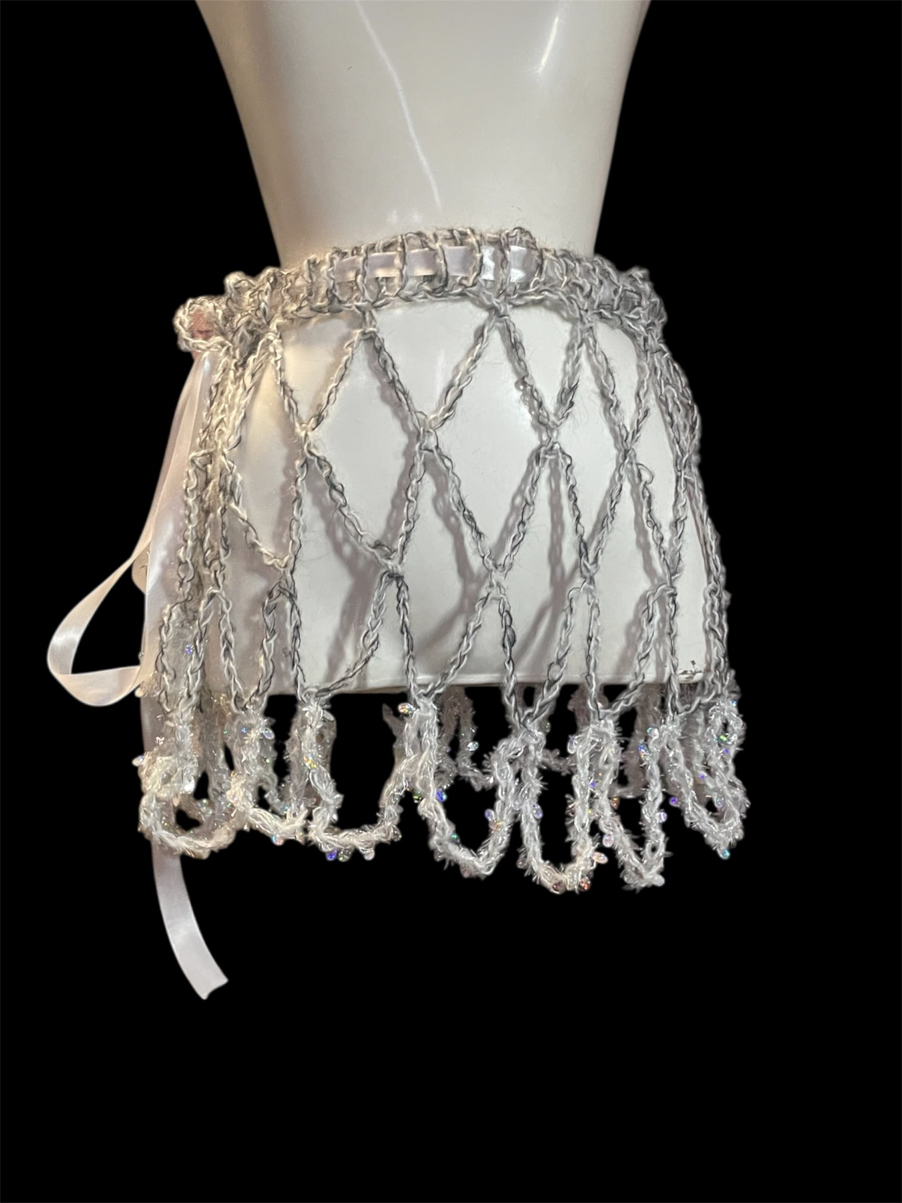 繊細なネット編みが特徴のハンドメイドスカートです。