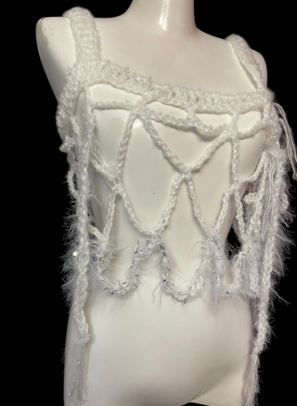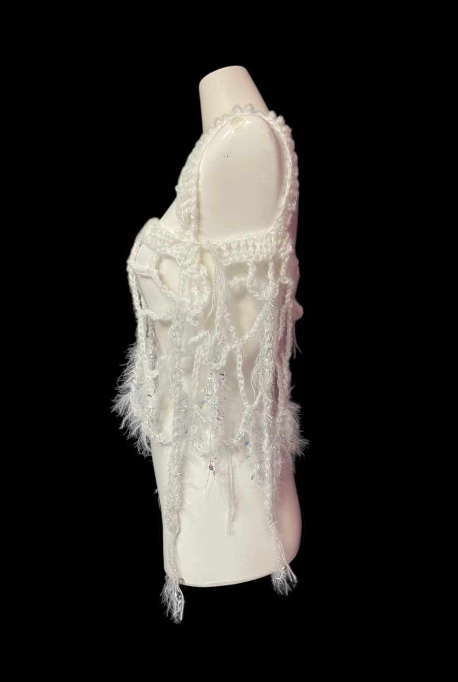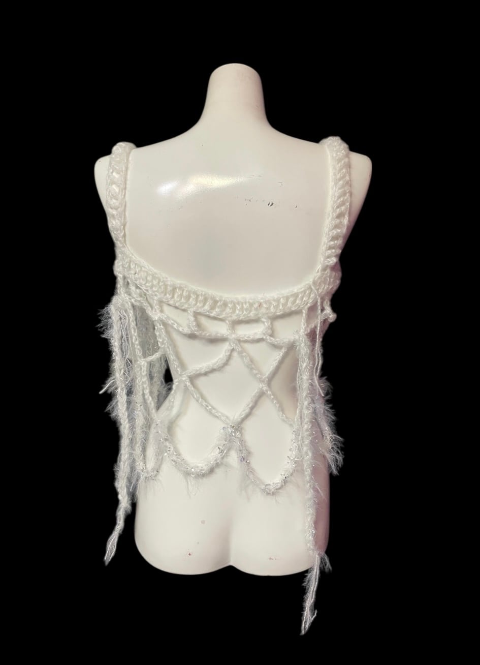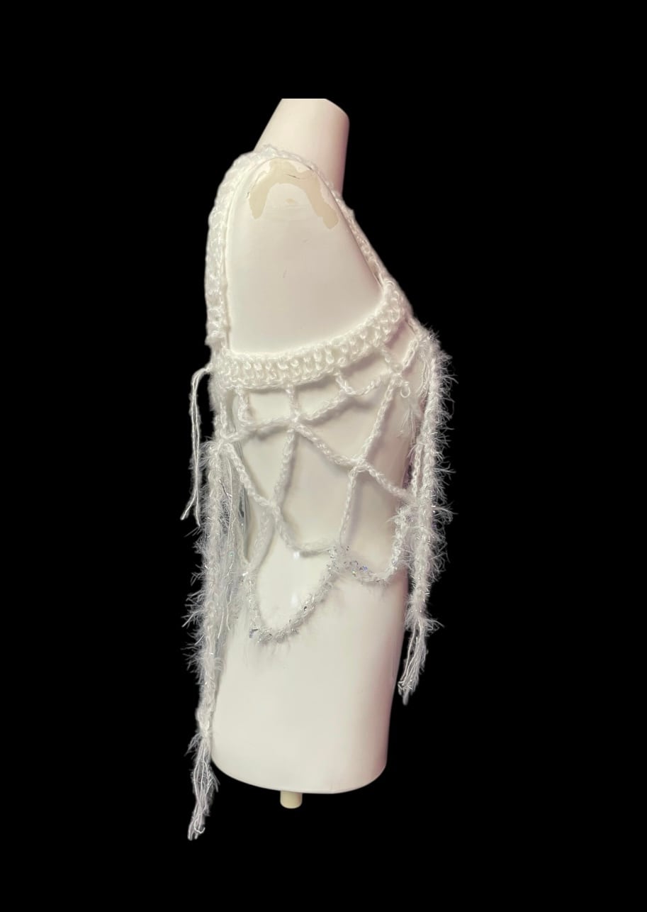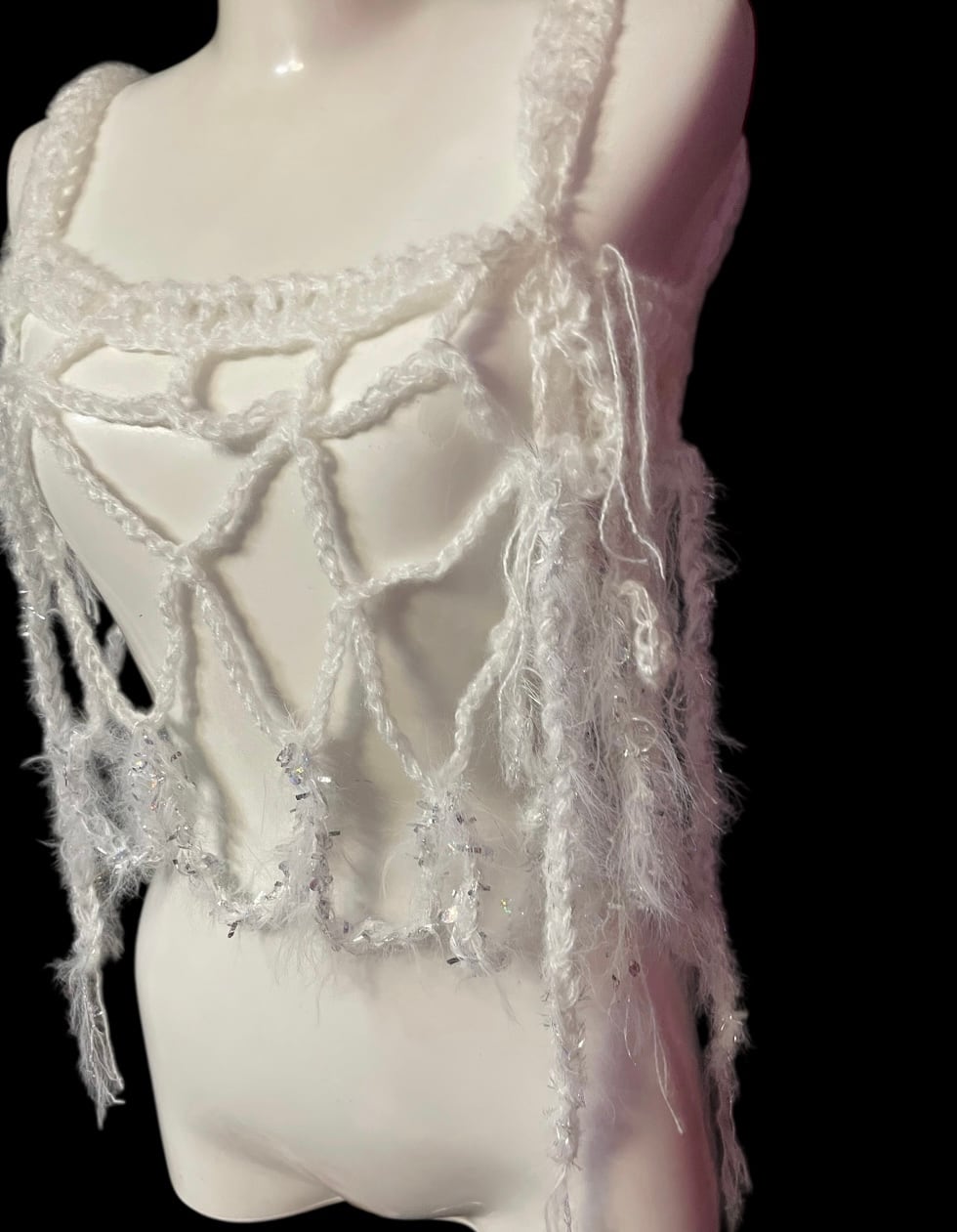繊細なネット編みが特徴のハンドキャミソールです。