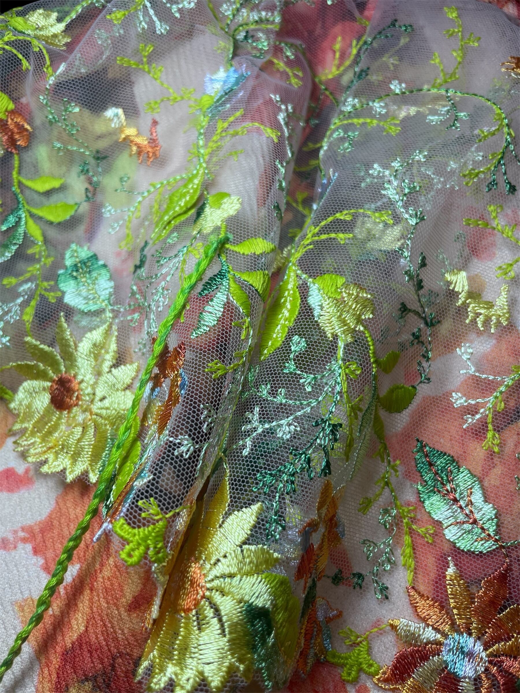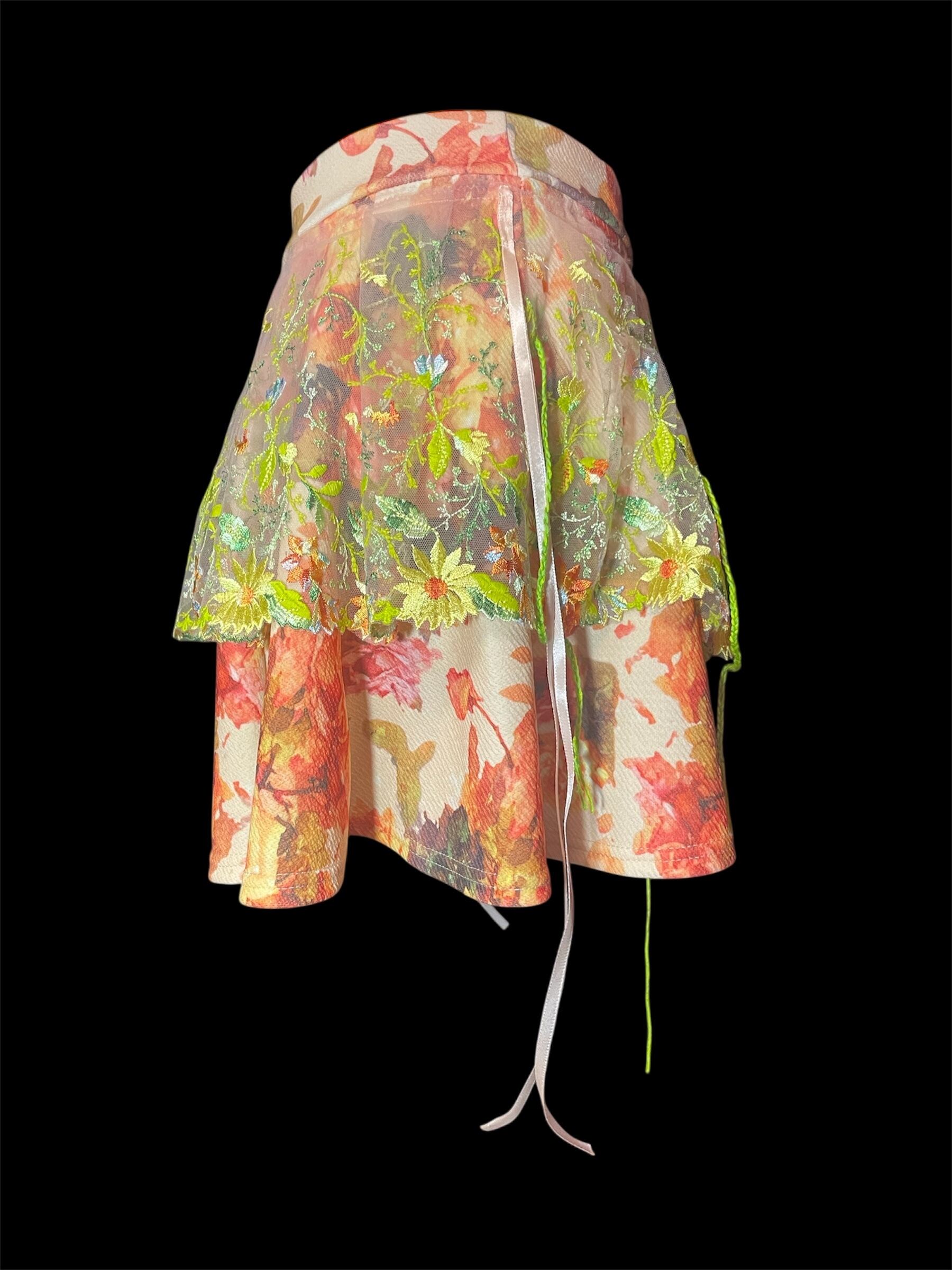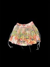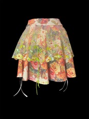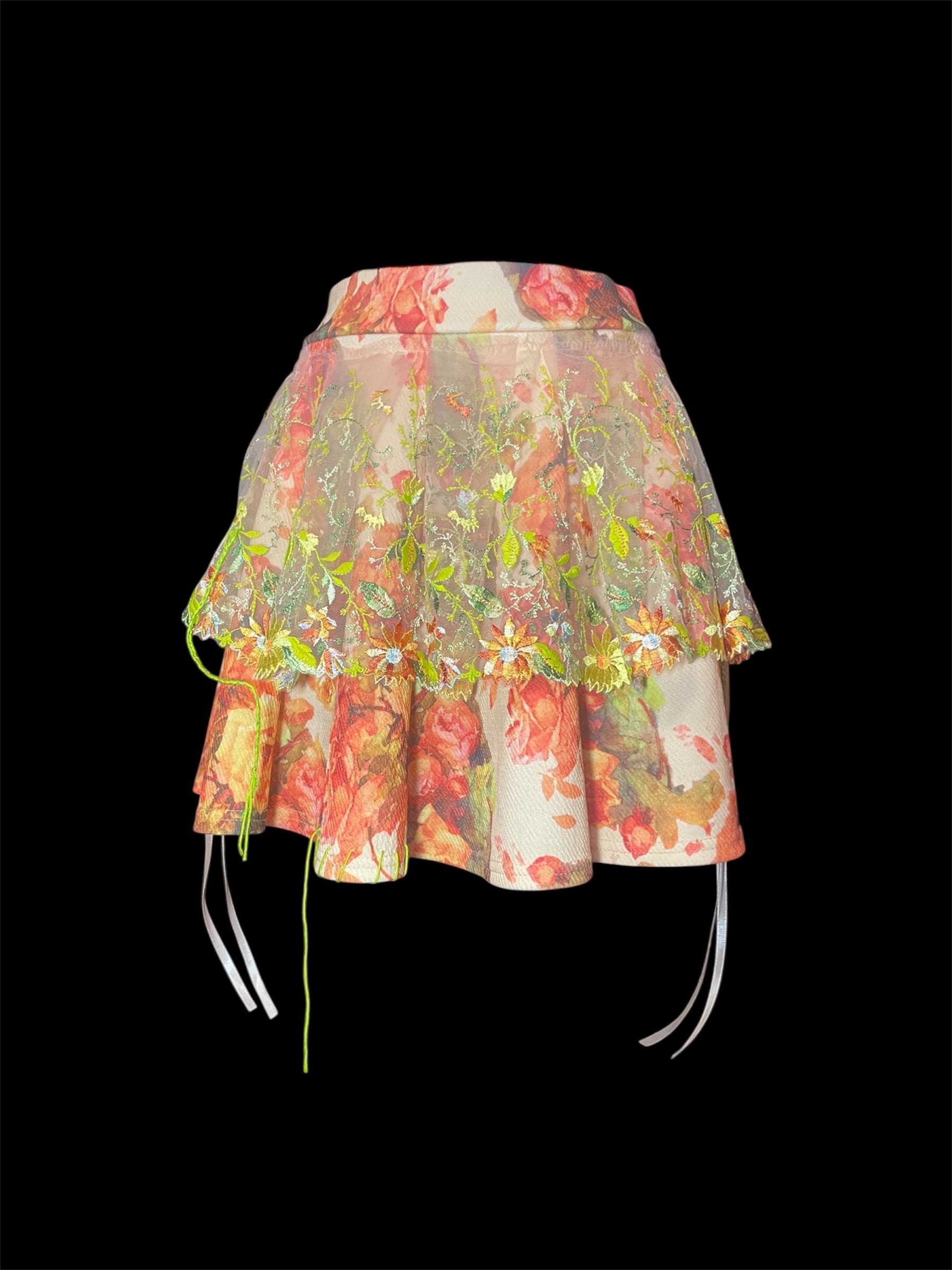 花柄プリント生地の上に、透け感のあるレースを重ねたスカートです。
