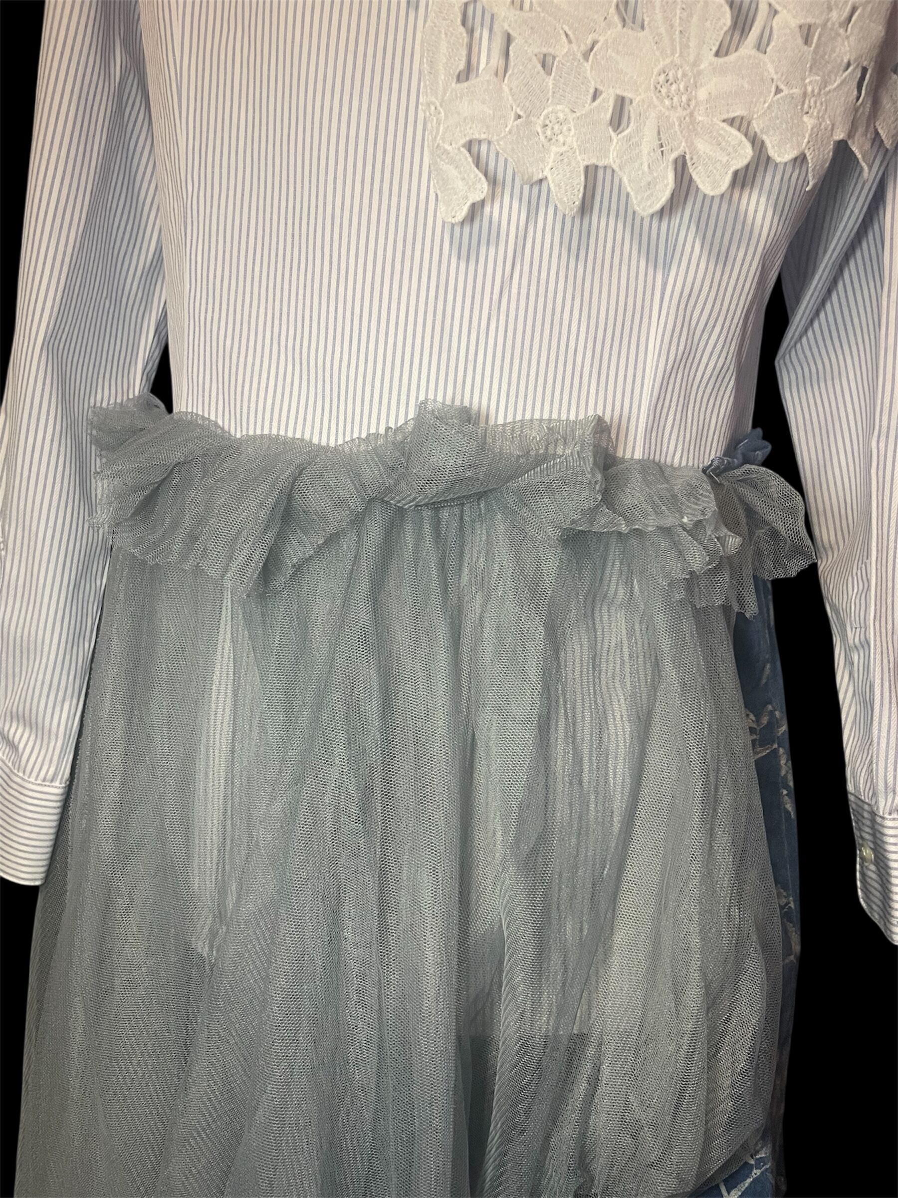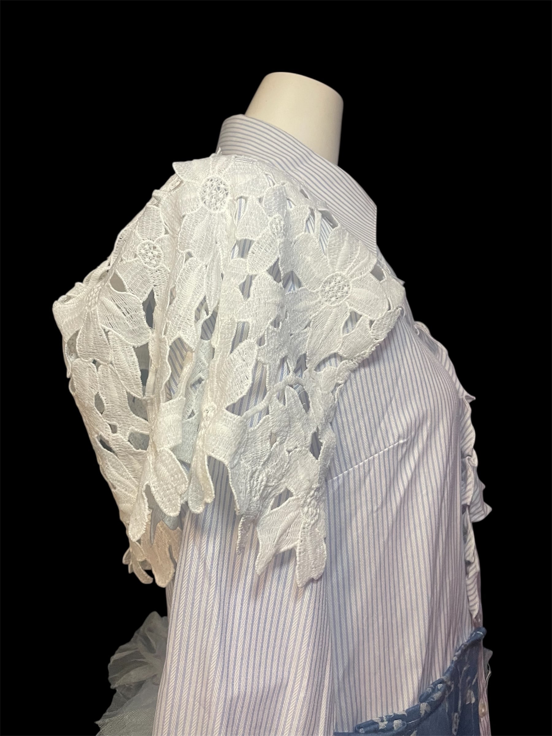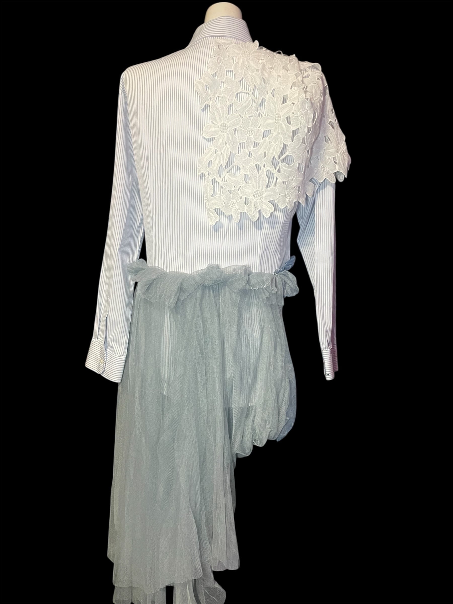 ストライプシャツをベースに、レース・チュール・柄生地を組み合わせました