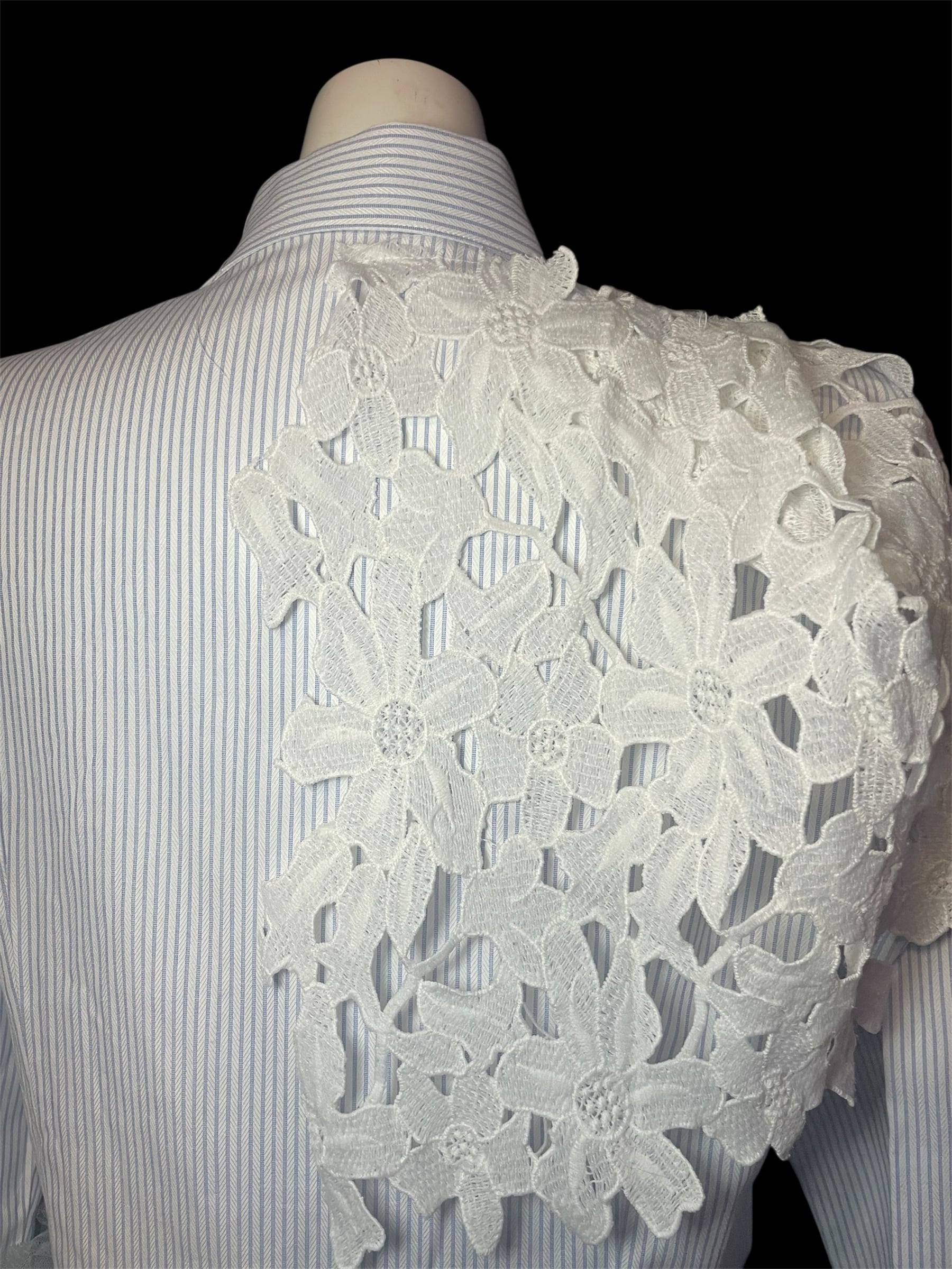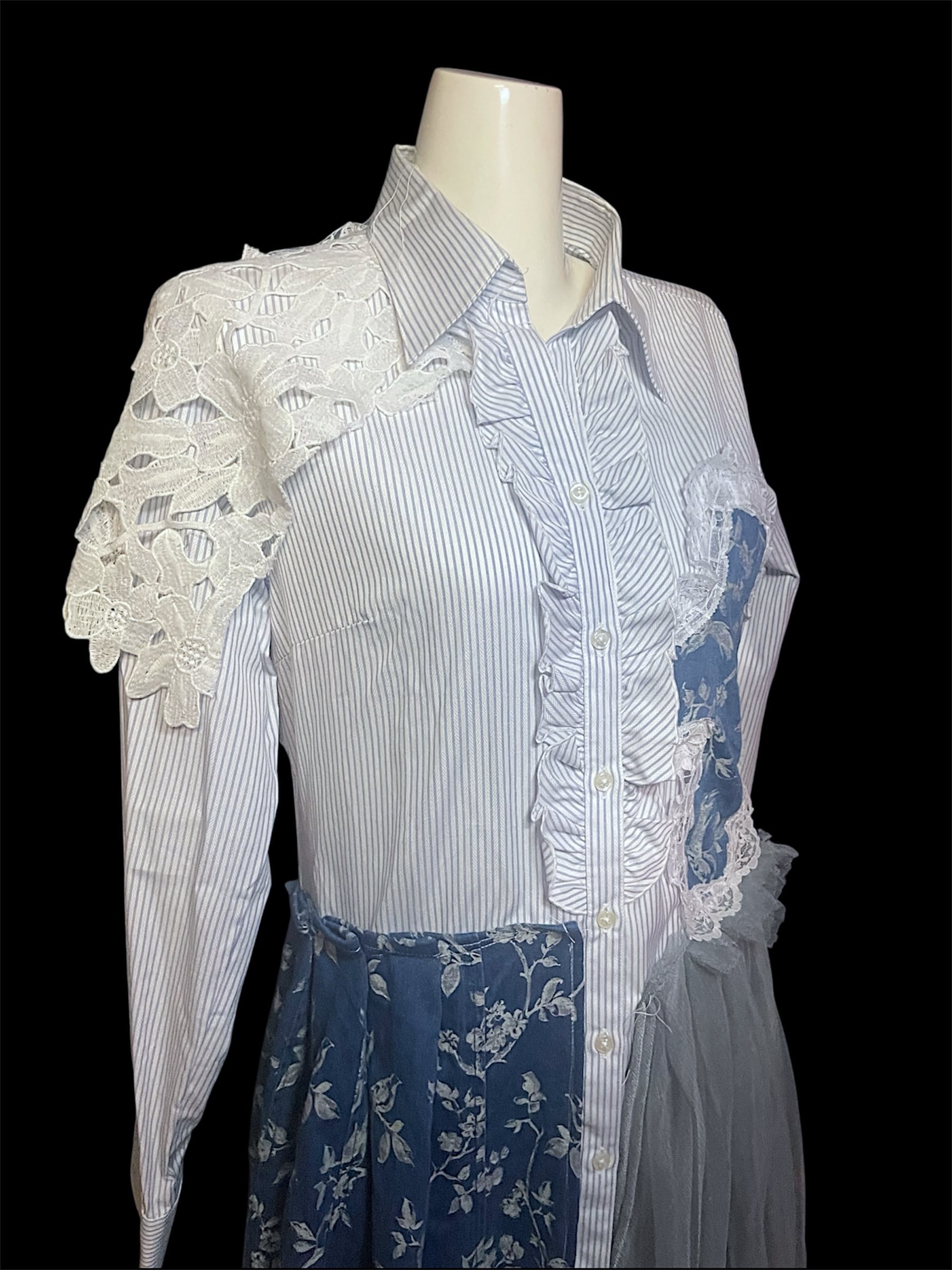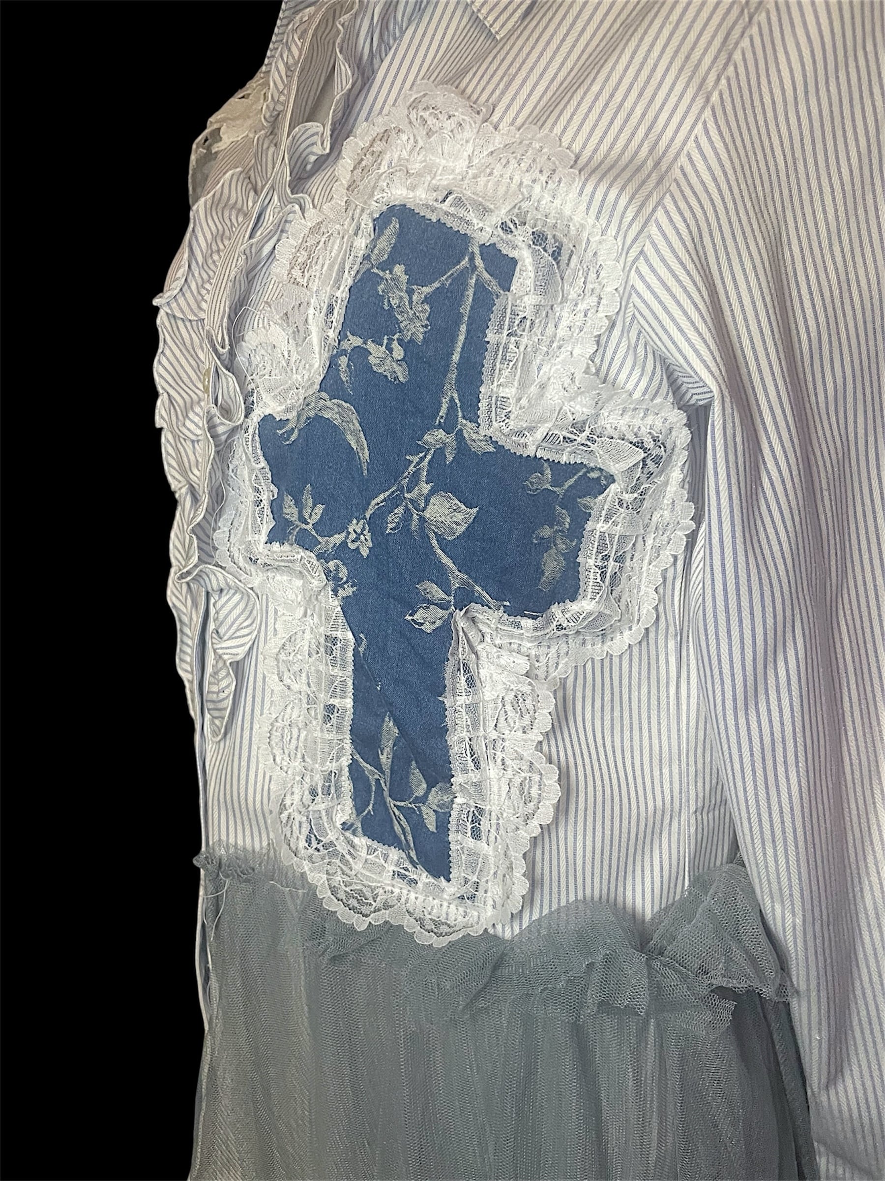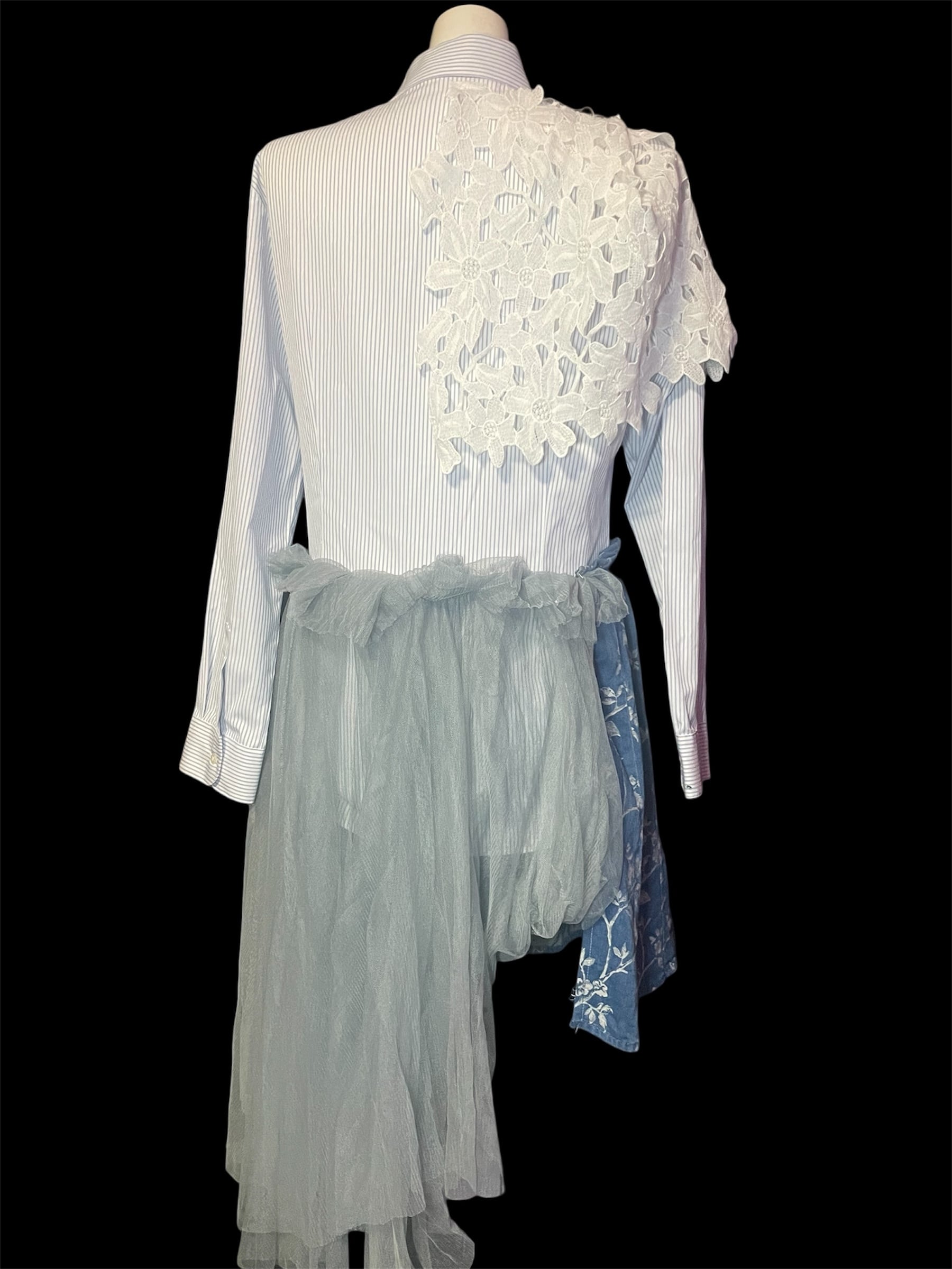 ストライプシャツをベースに、レース・チュール・柄生地を組み合わせました