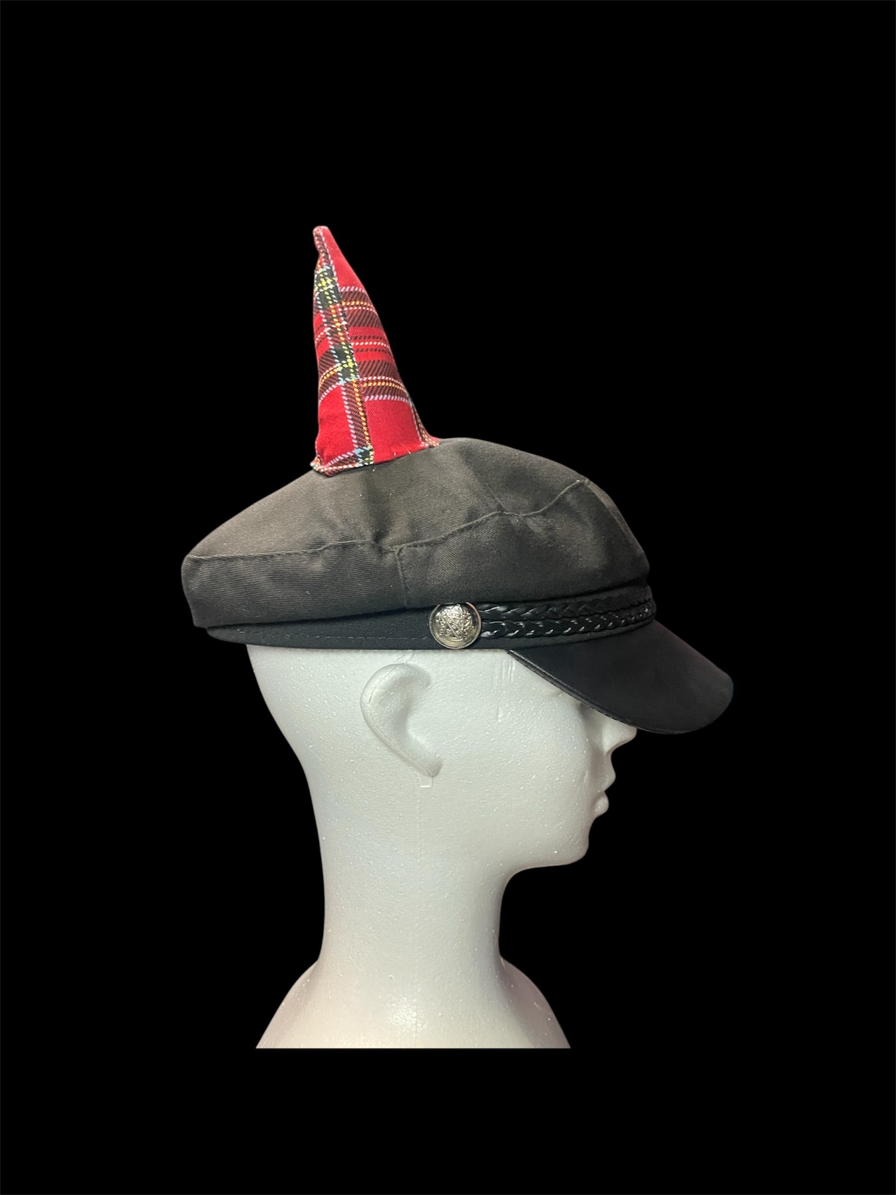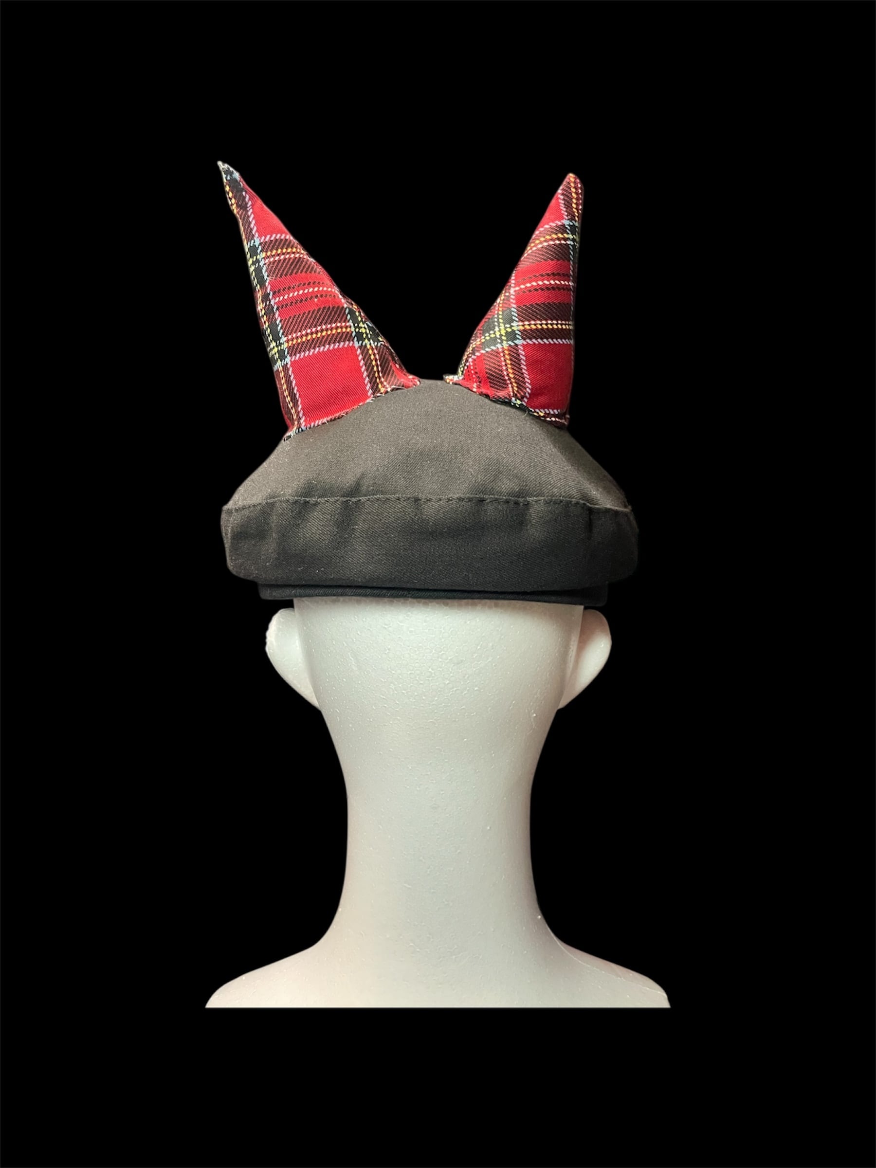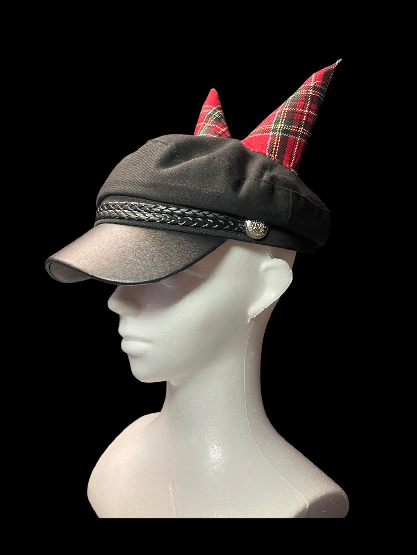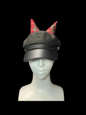 キャップに角のモチーフを加えたリメイクアイテムです。角には綿を入れてあるので柔らかいです。