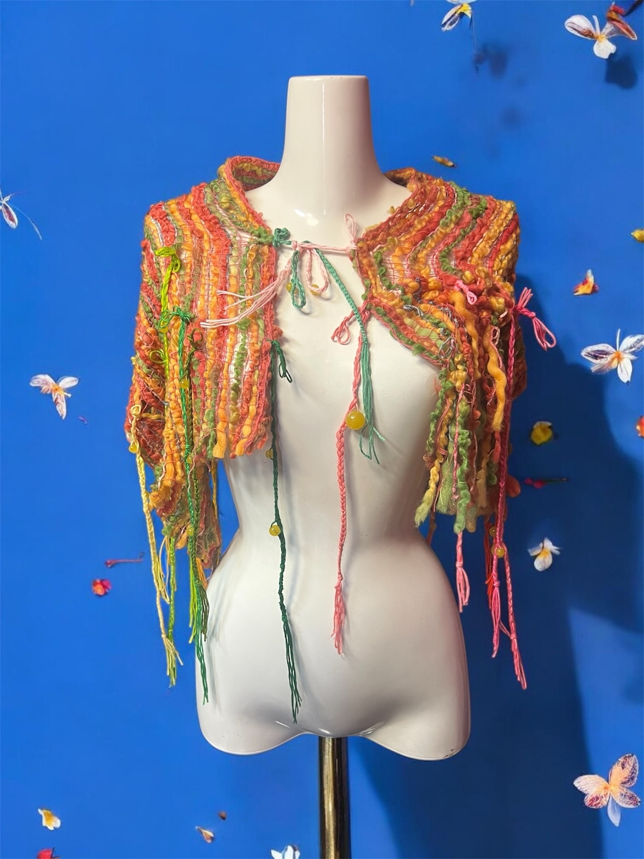 シンプルなトップスやワンピースに重ね、アクセサリー感覚で使用する着用がおすすめです。