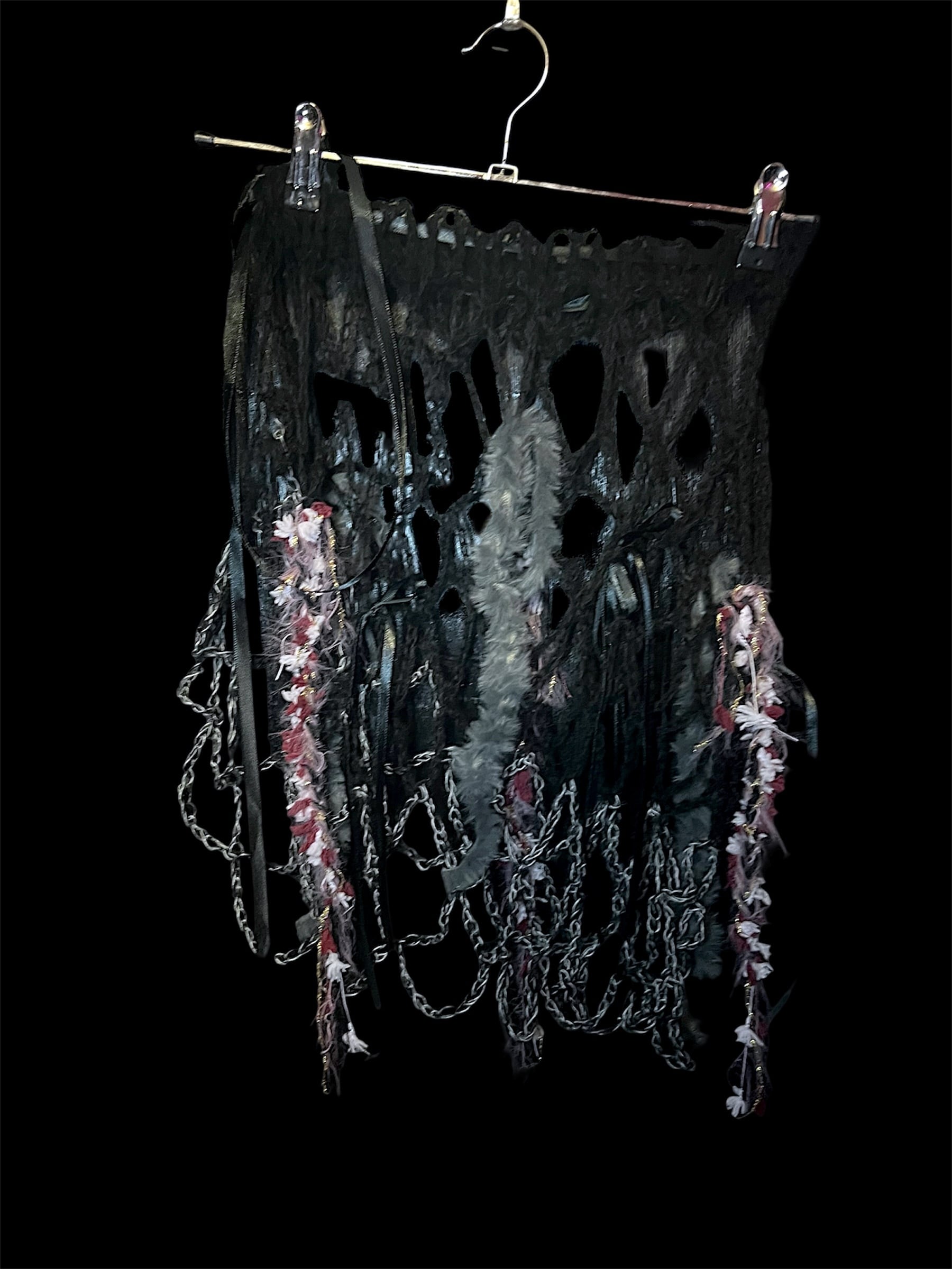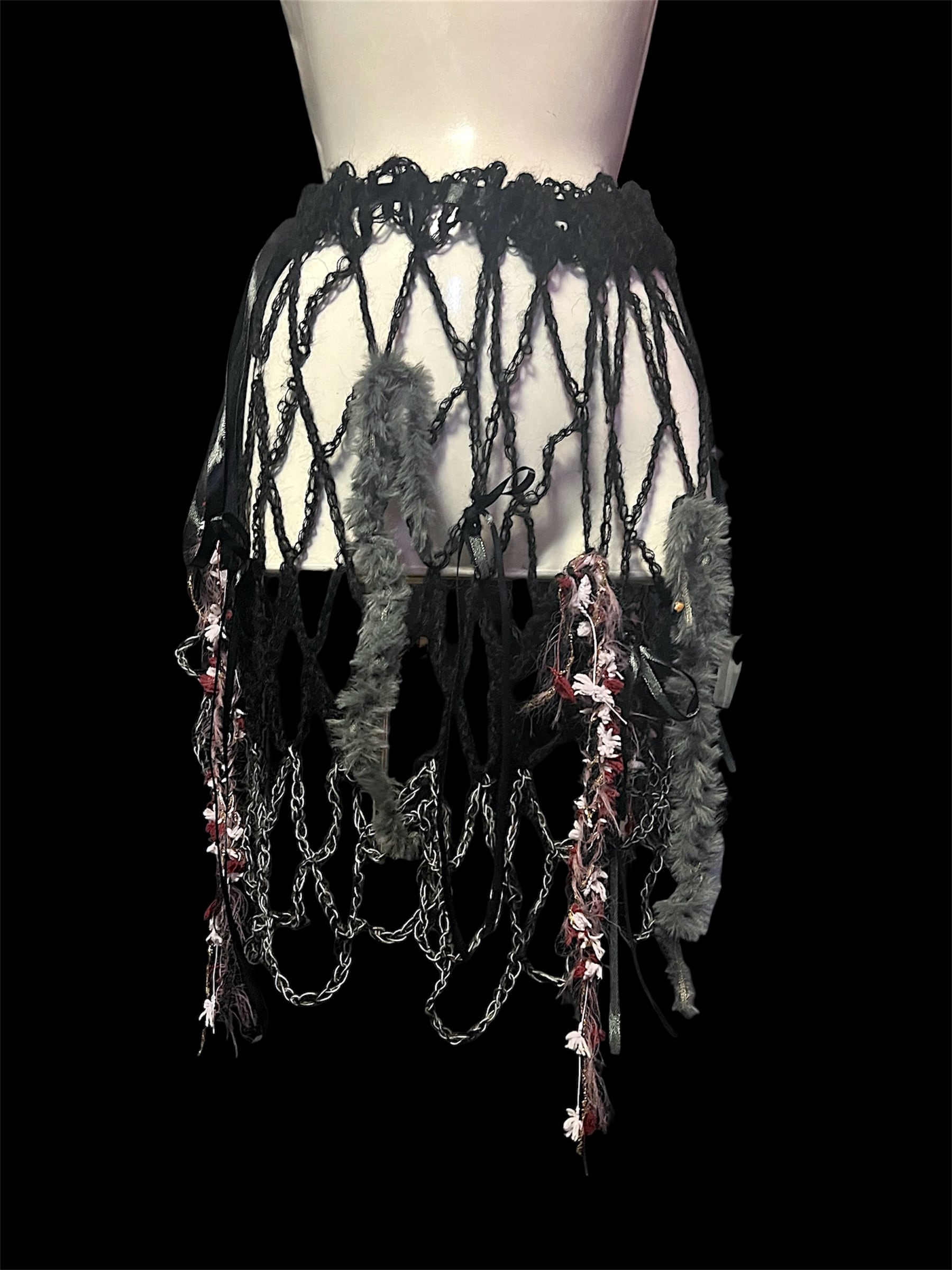 繊細なネット編みが特徴のハンドメイドスカートです。