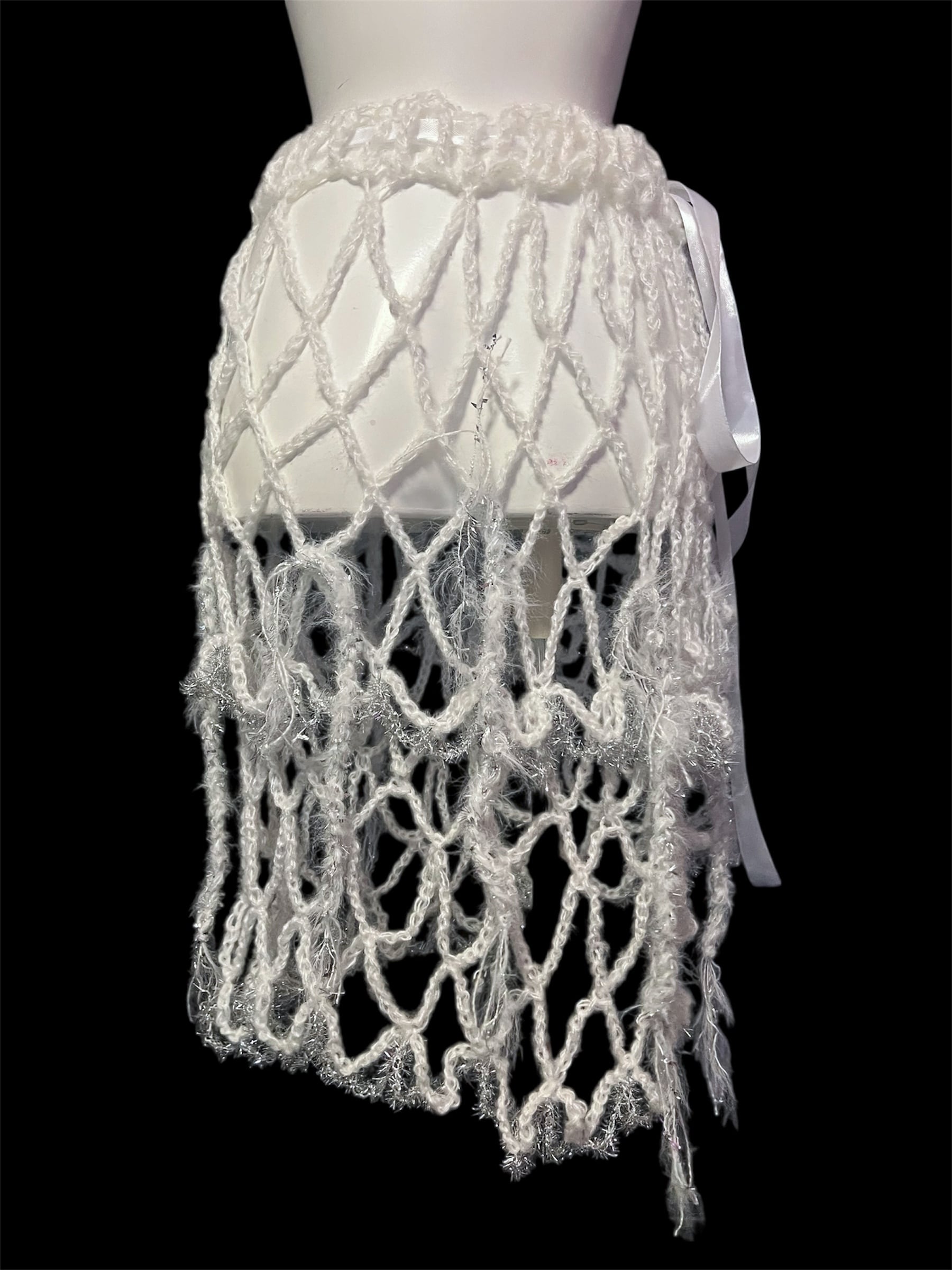 繊細なネット編みが特徴のハンドメイドスカートです。