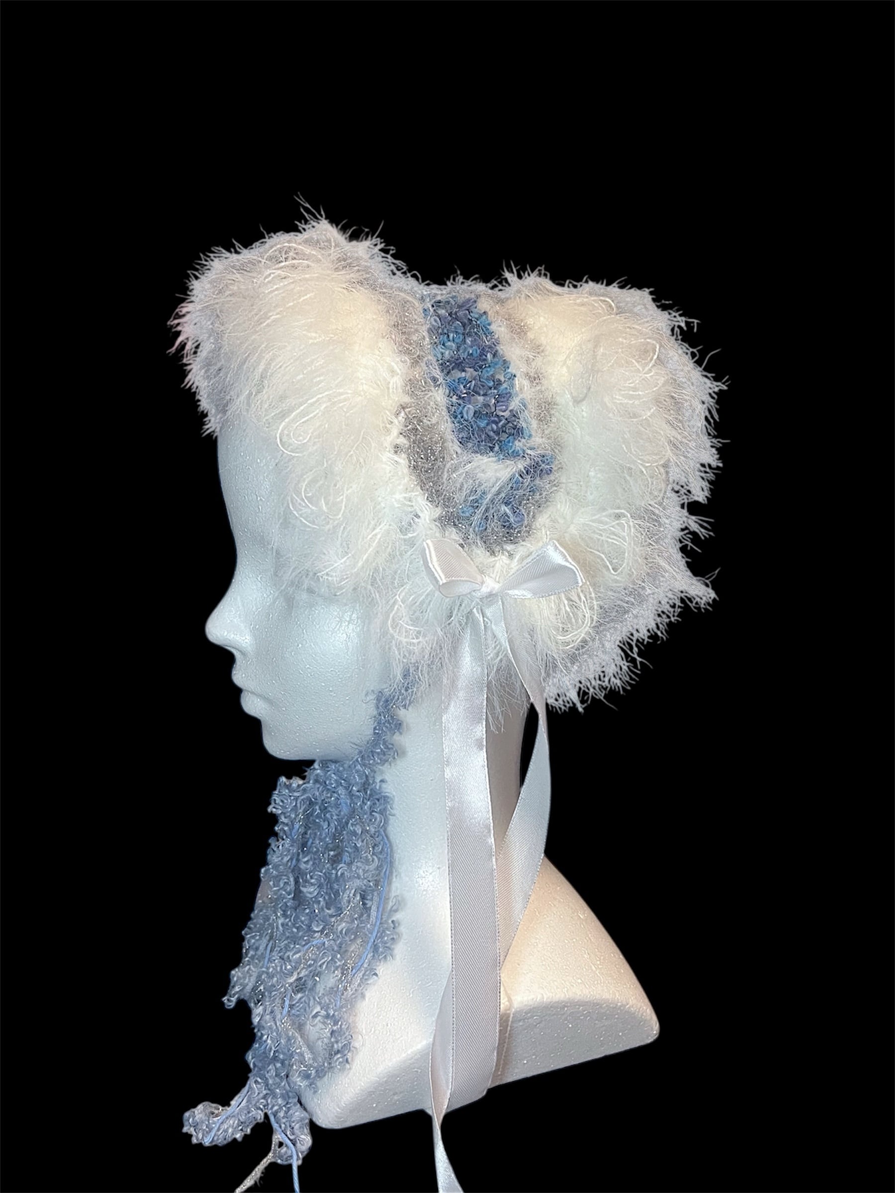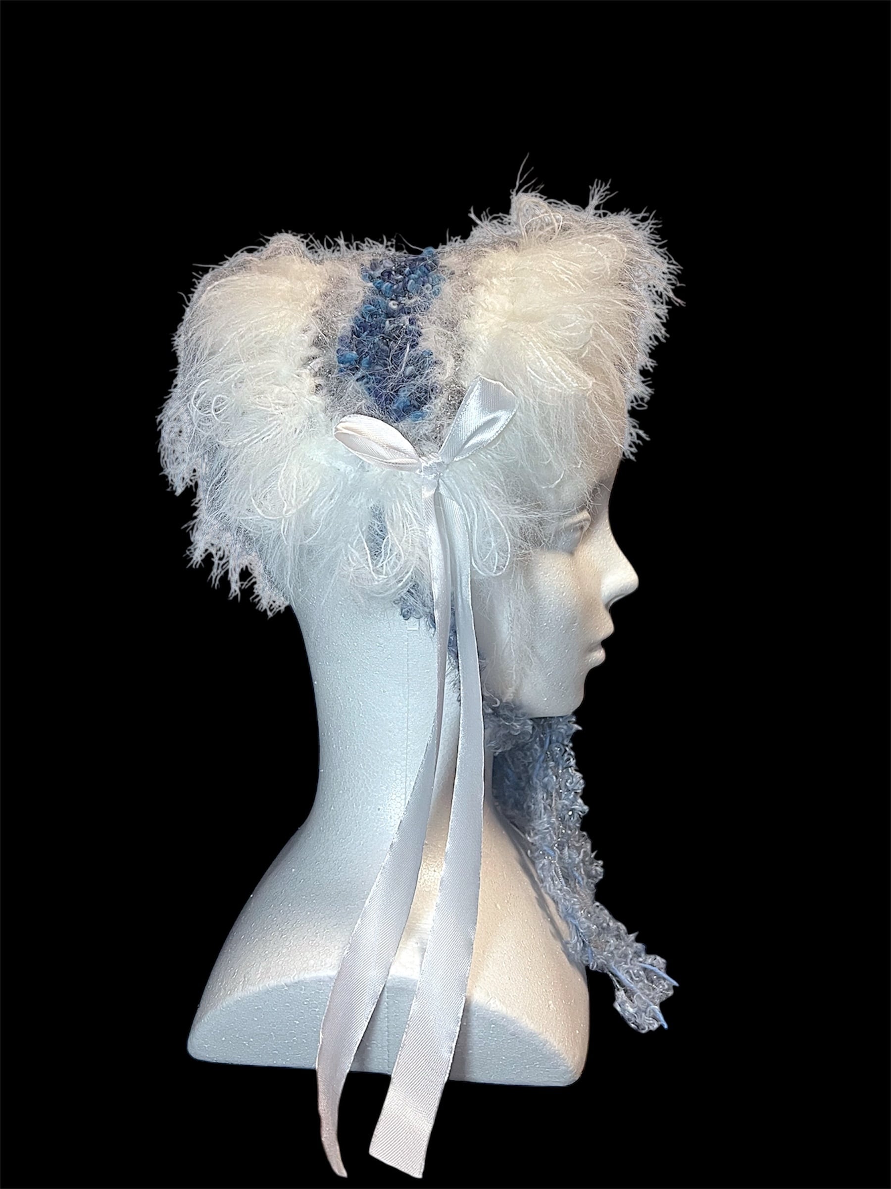 Yarn Headpiece – White × Ice Blue