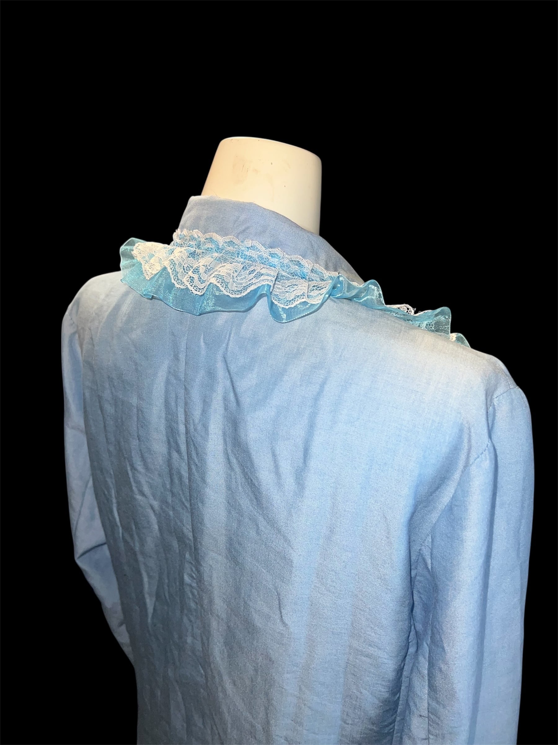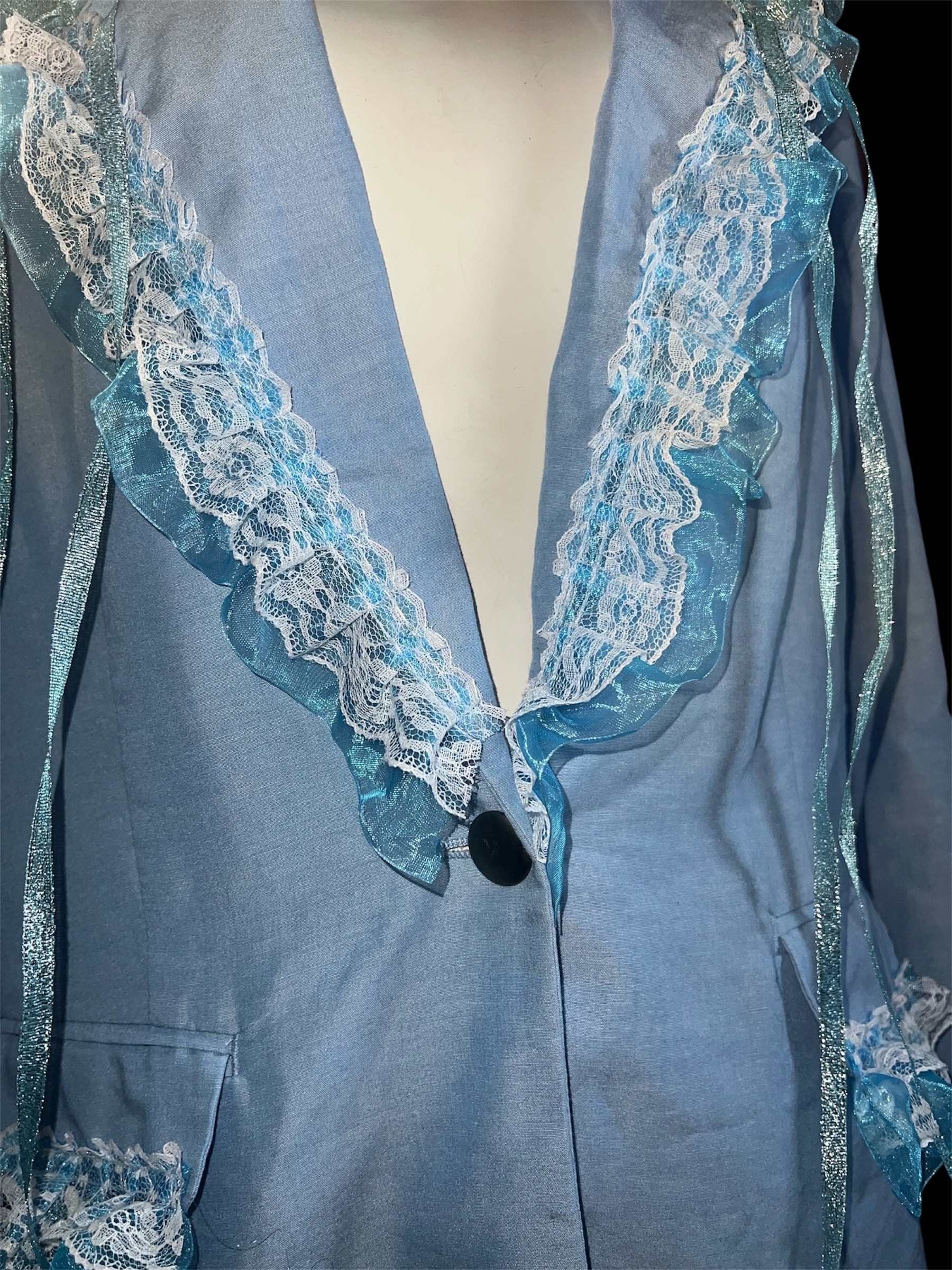 淡いブルーに繊細なレースフリルをあしらったデジャケット。