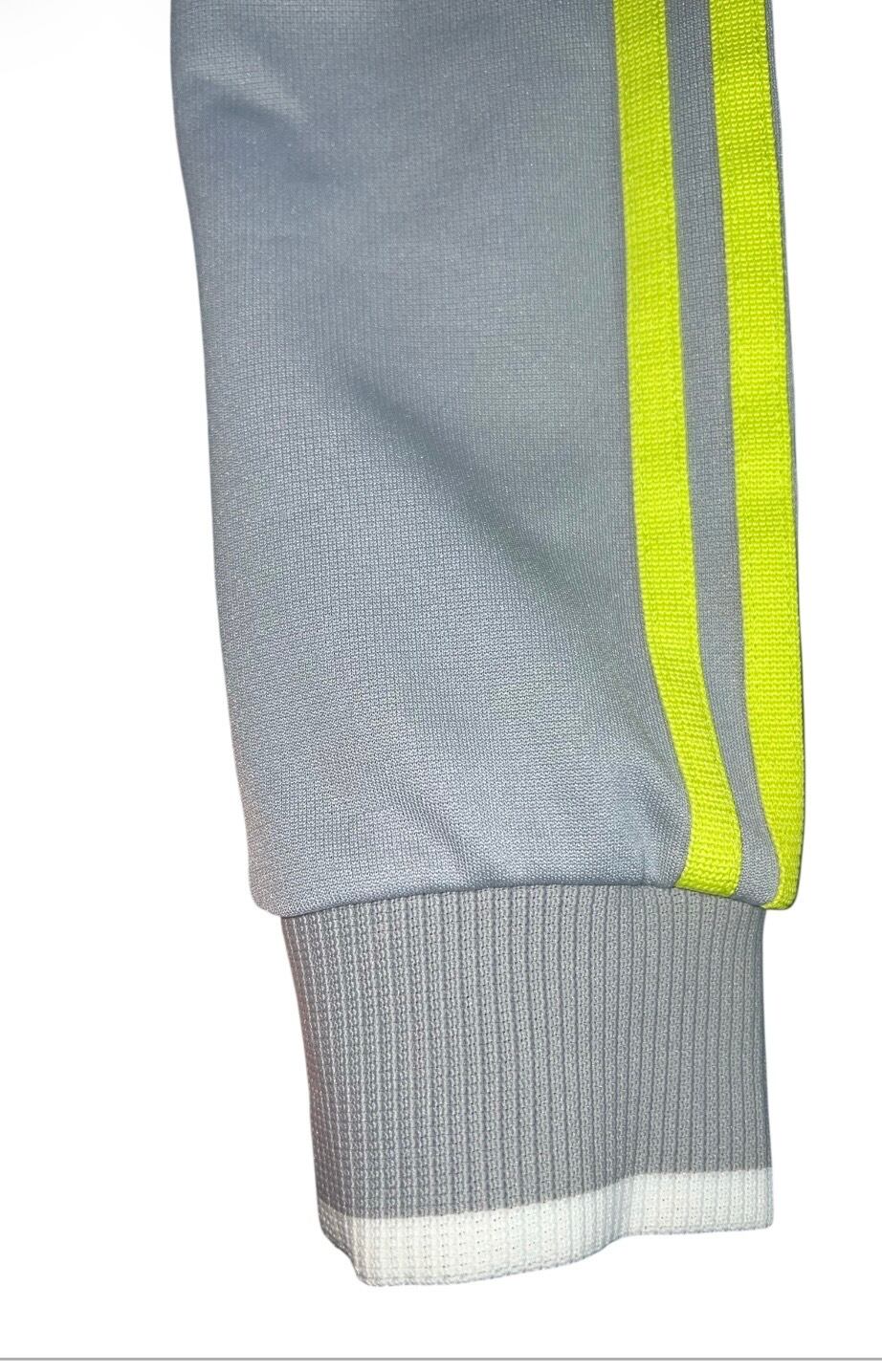 ネオンカラーのラインに合わせ、首元へ鮮やかなレース装飾を追加しています。