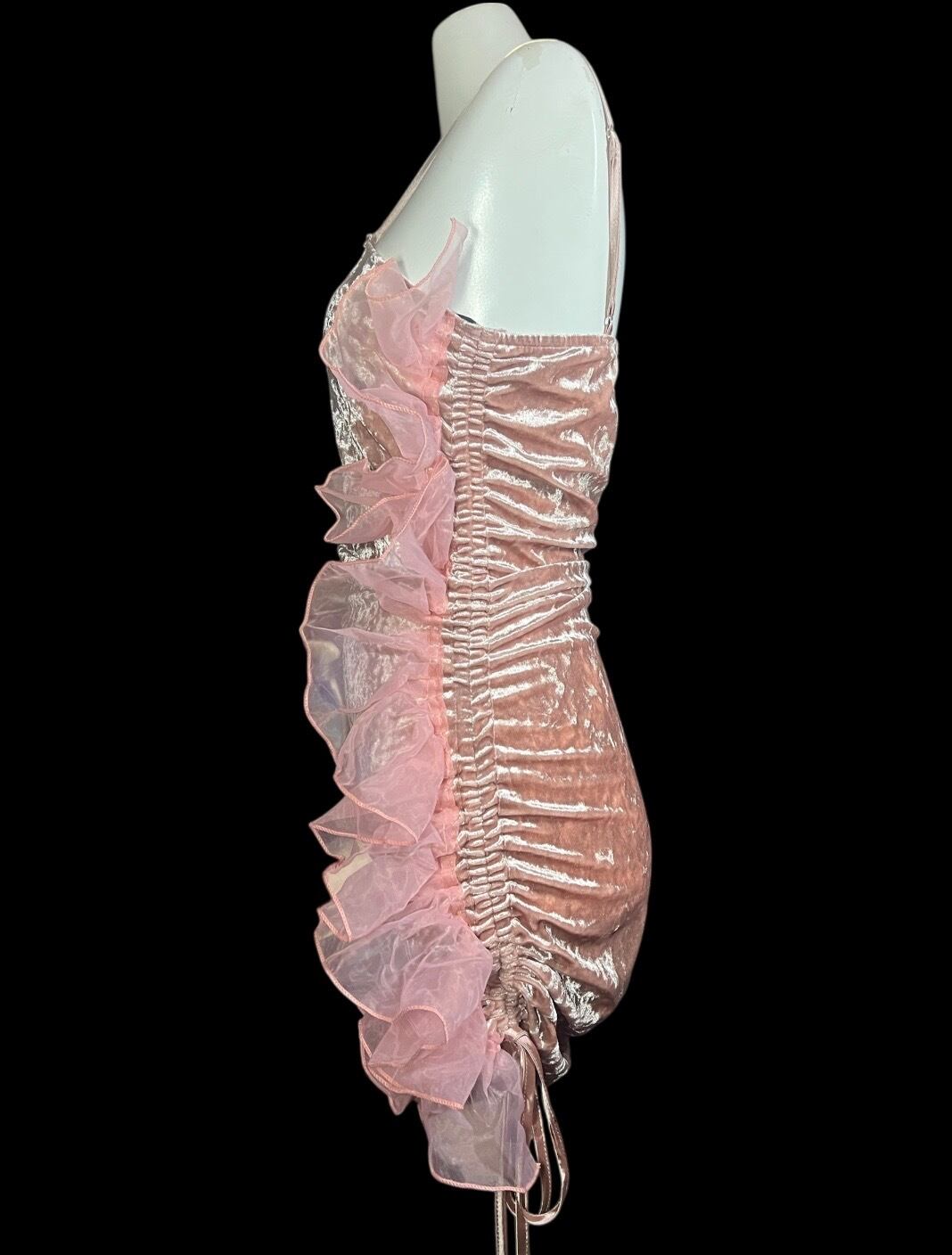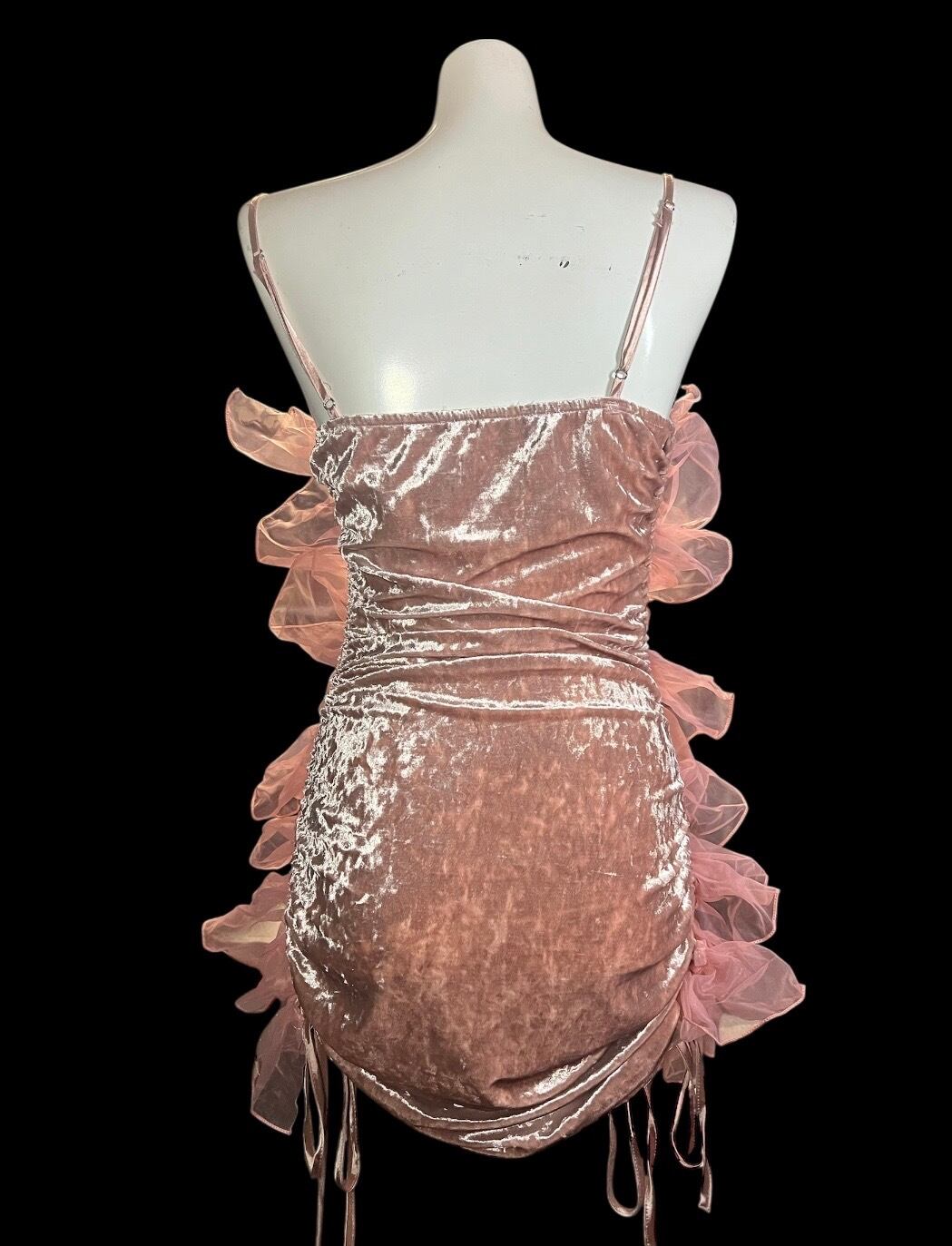 Pink Velvet Ruffle Mini Dress
