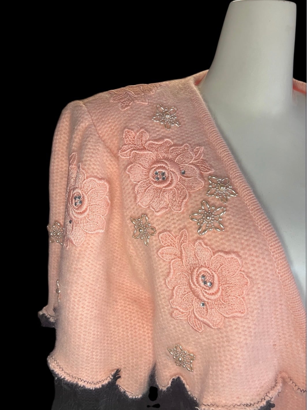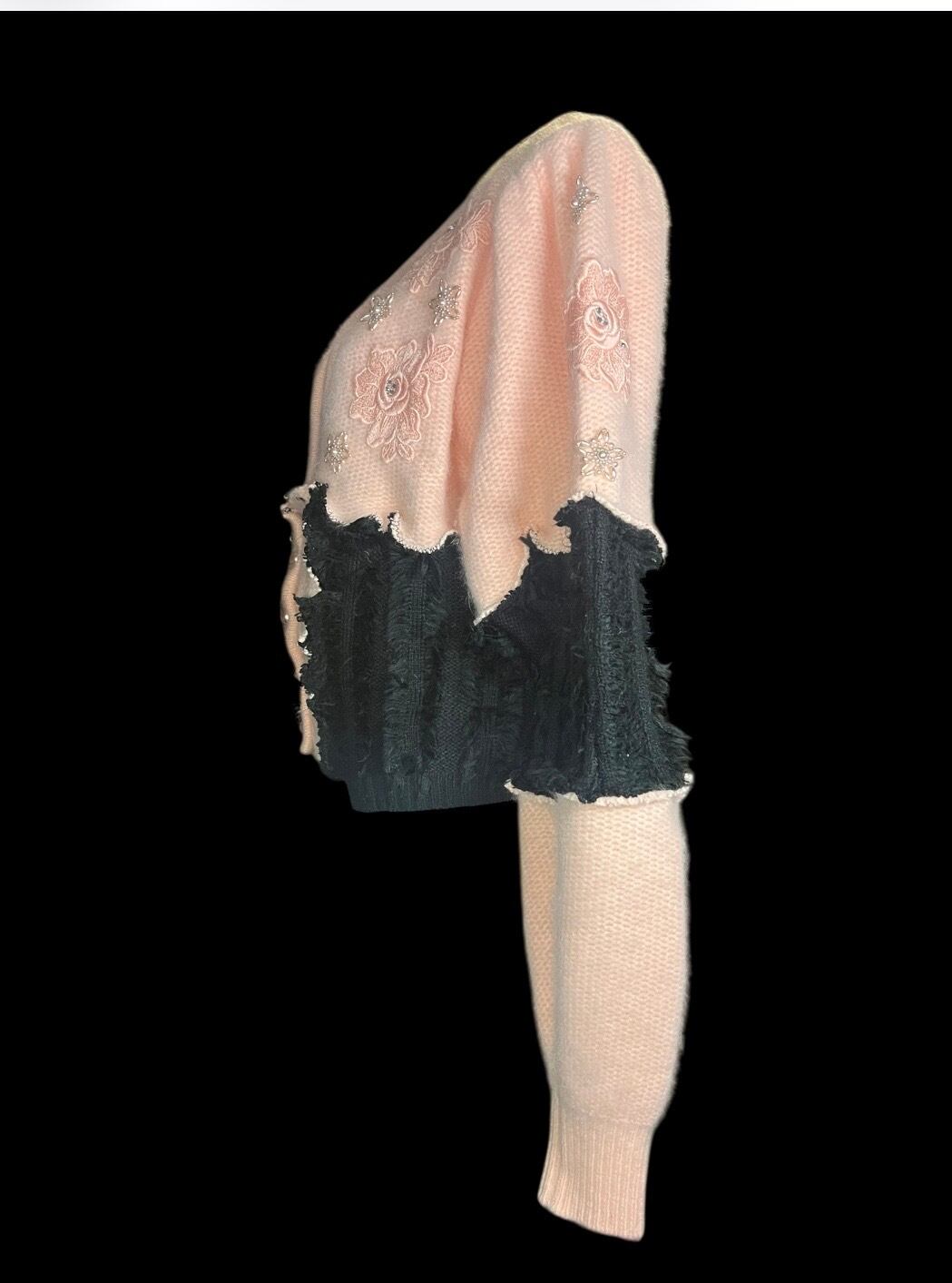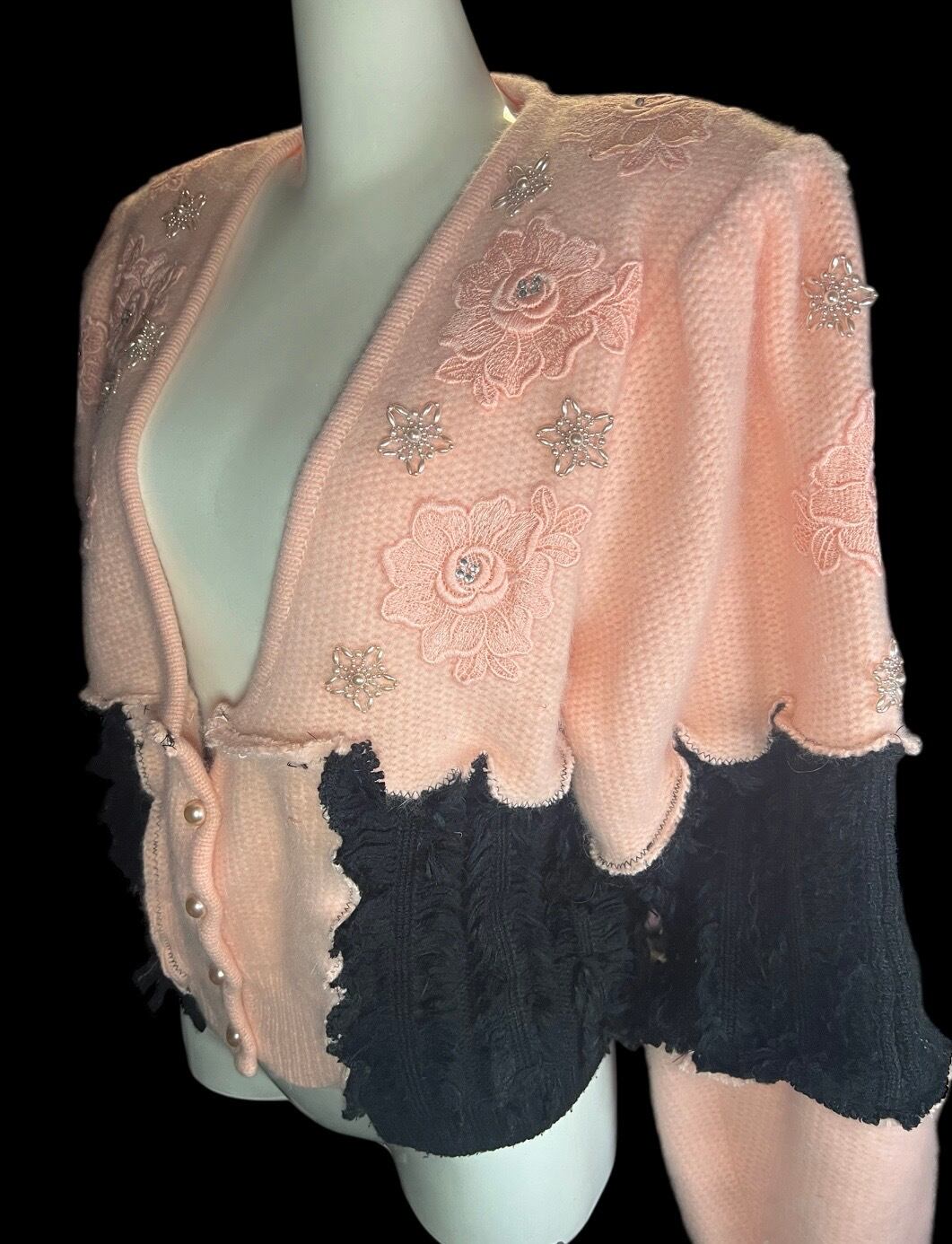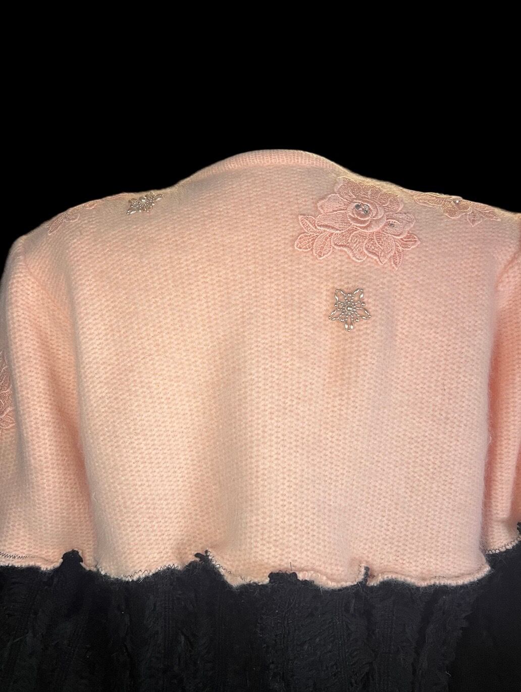 Pink Embroidery × Black Knit Cardigan