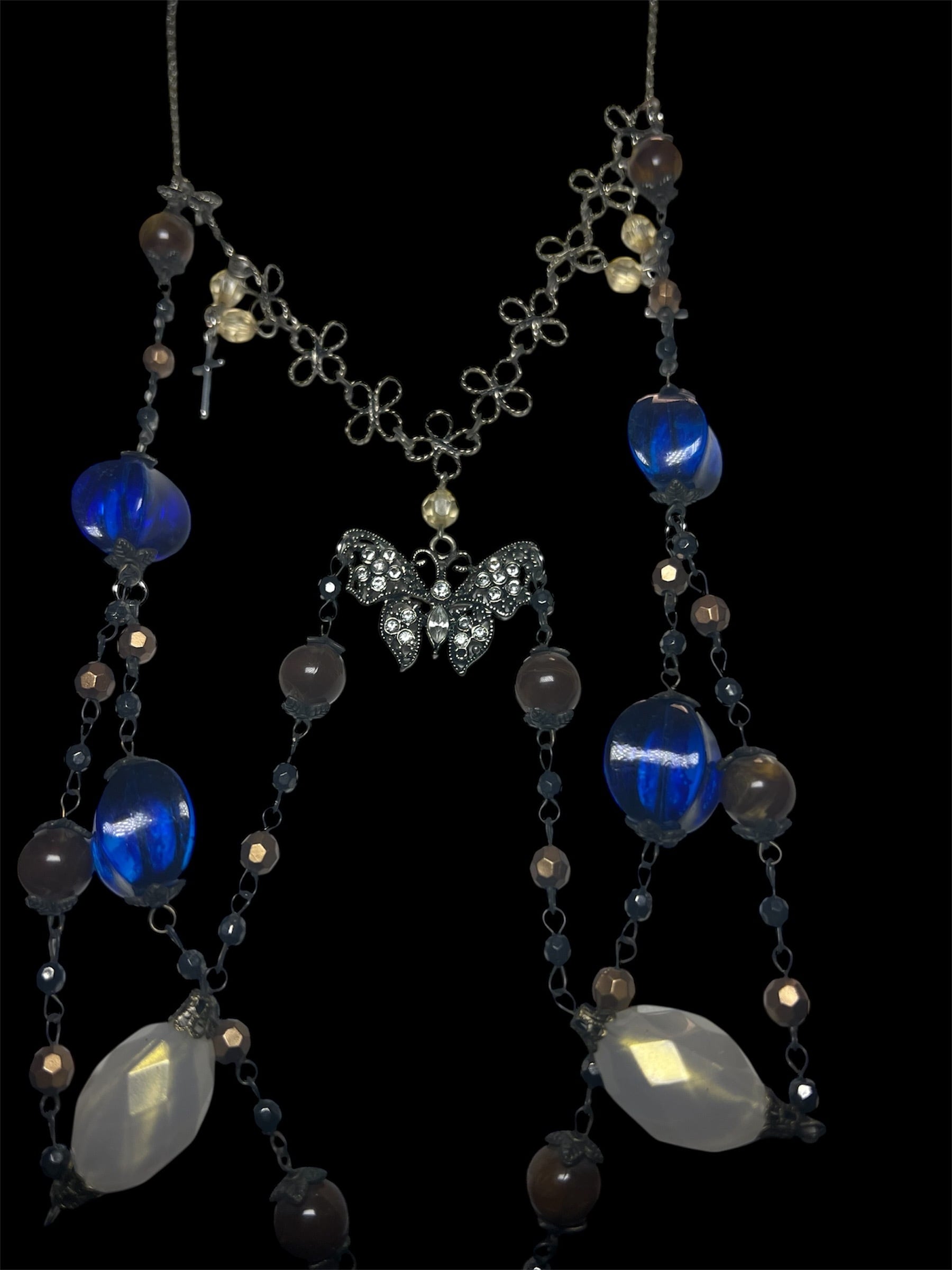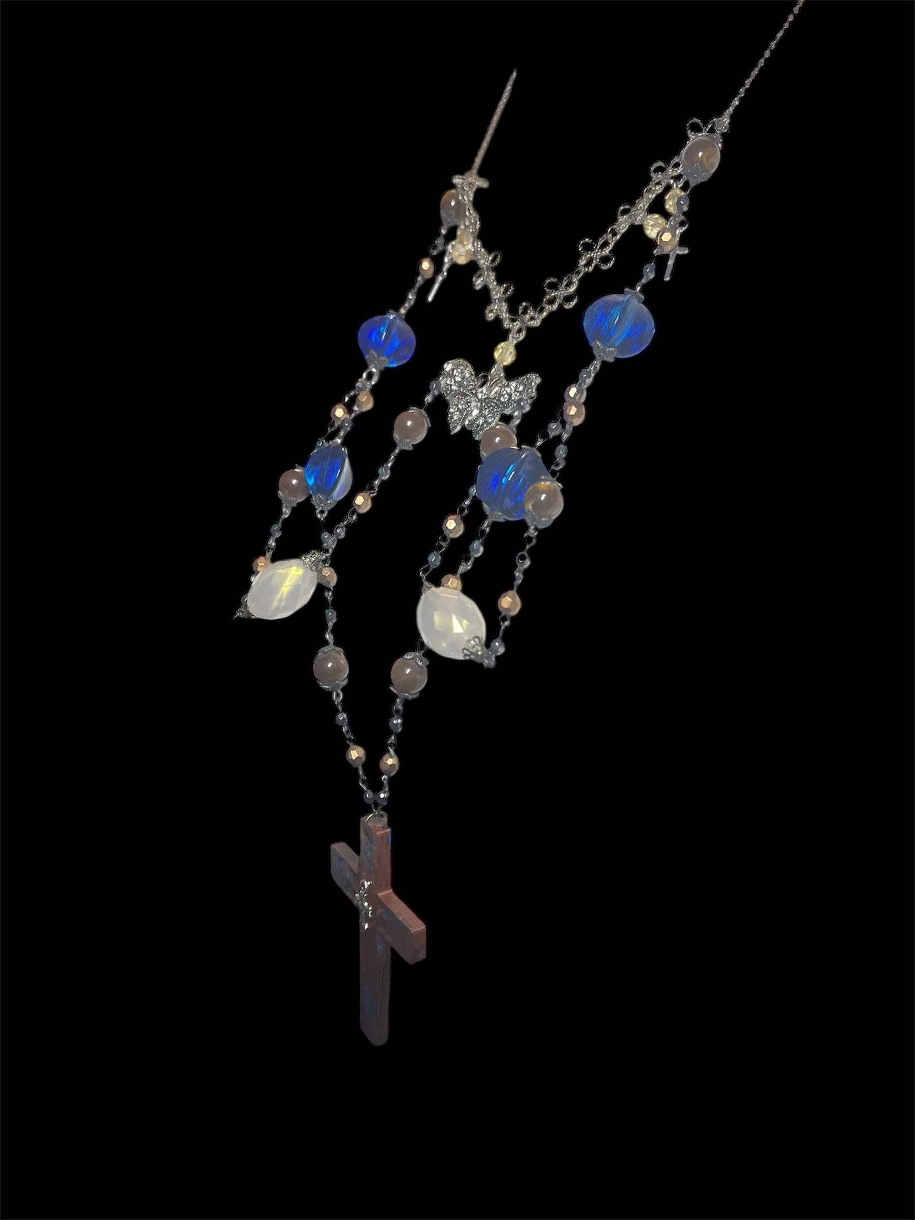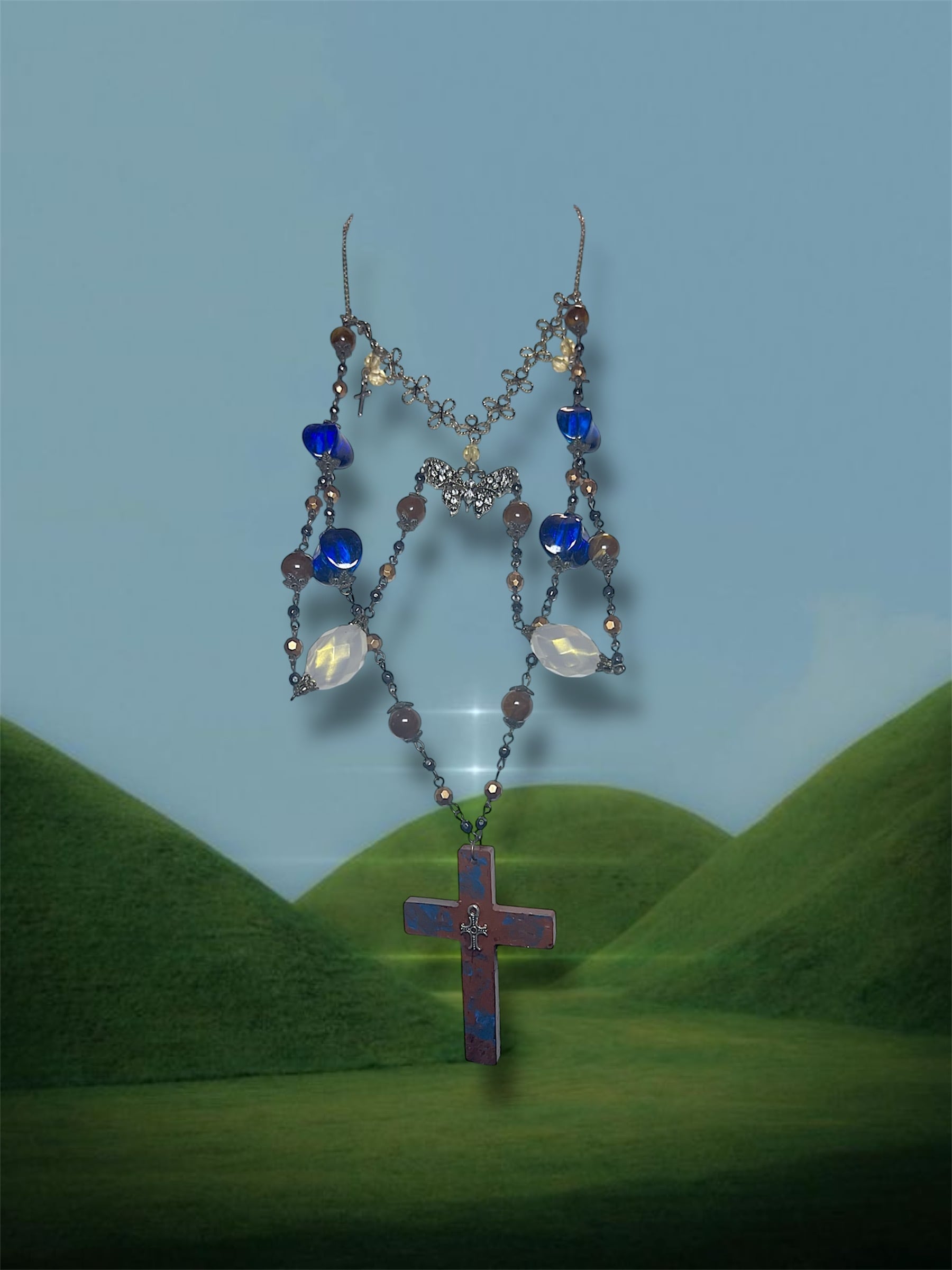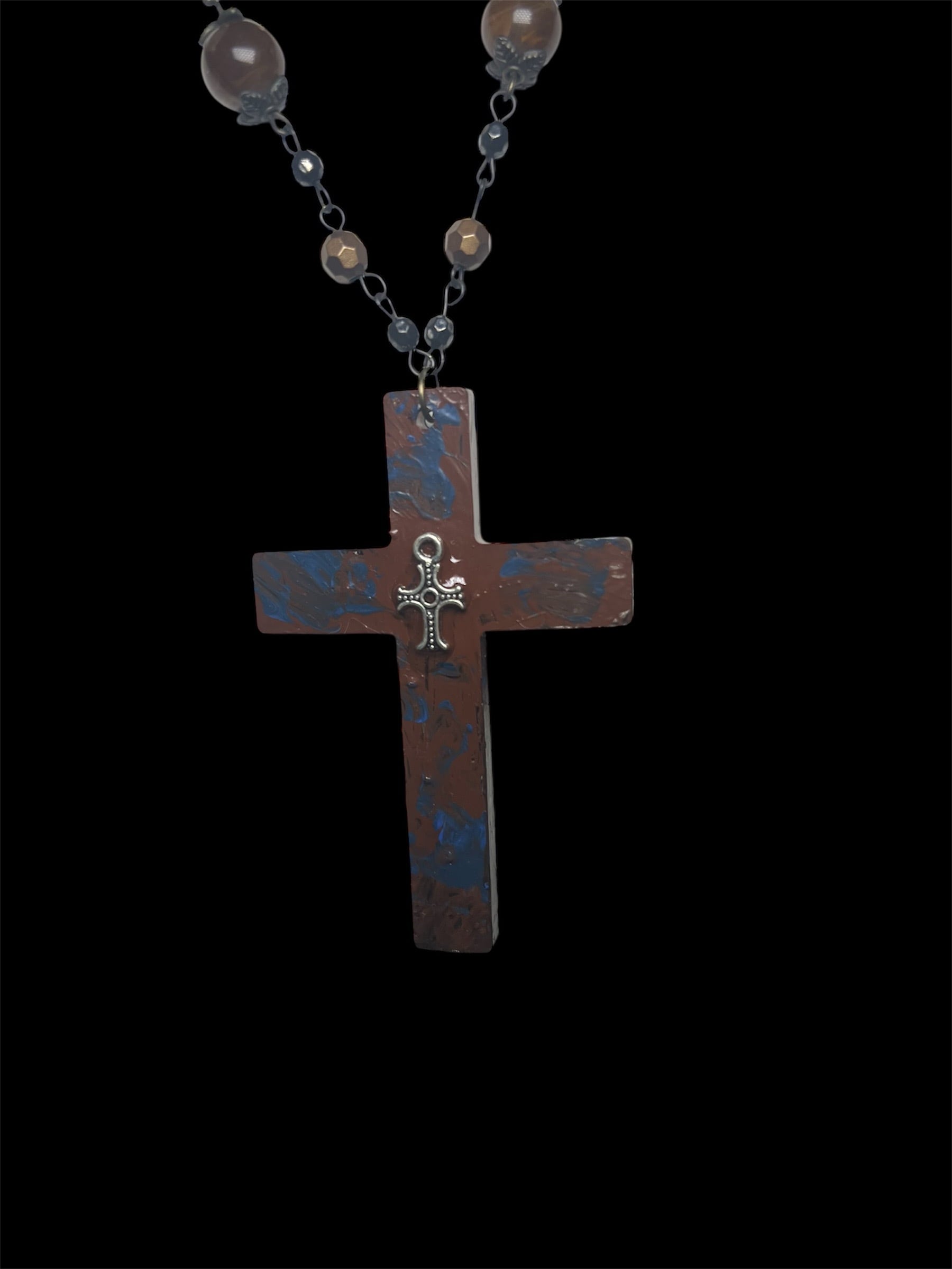 Vintage Cross Necklace – Blue Brown Mix
