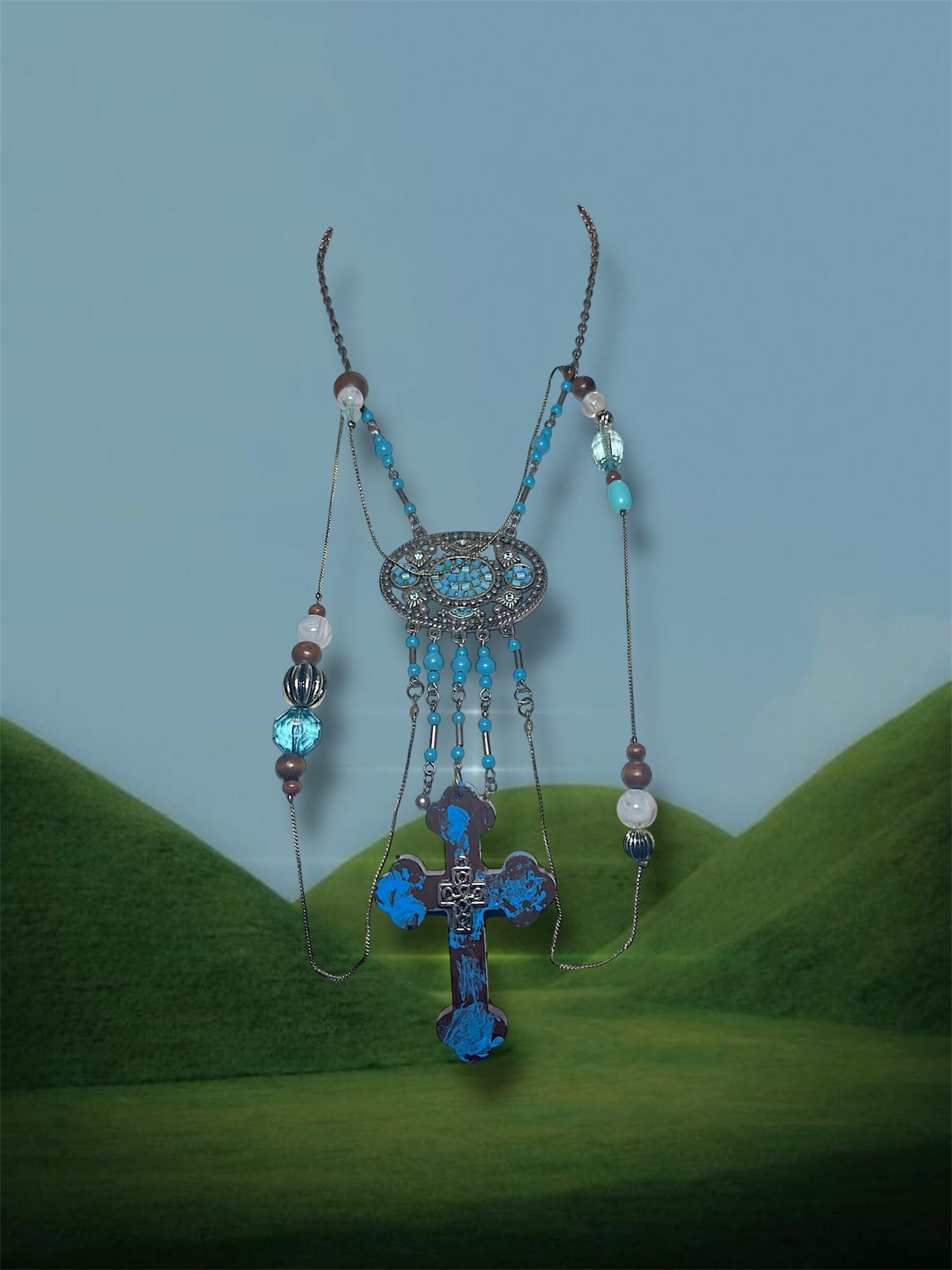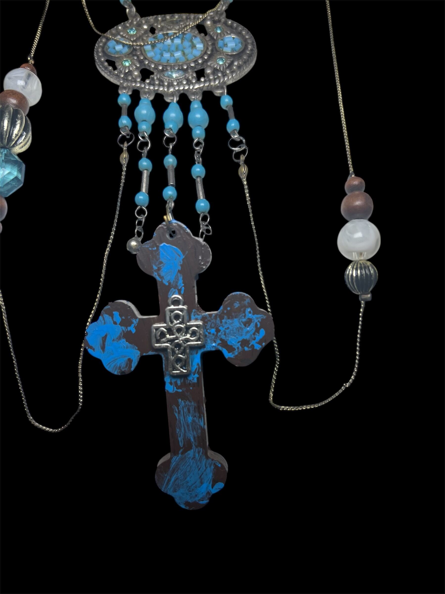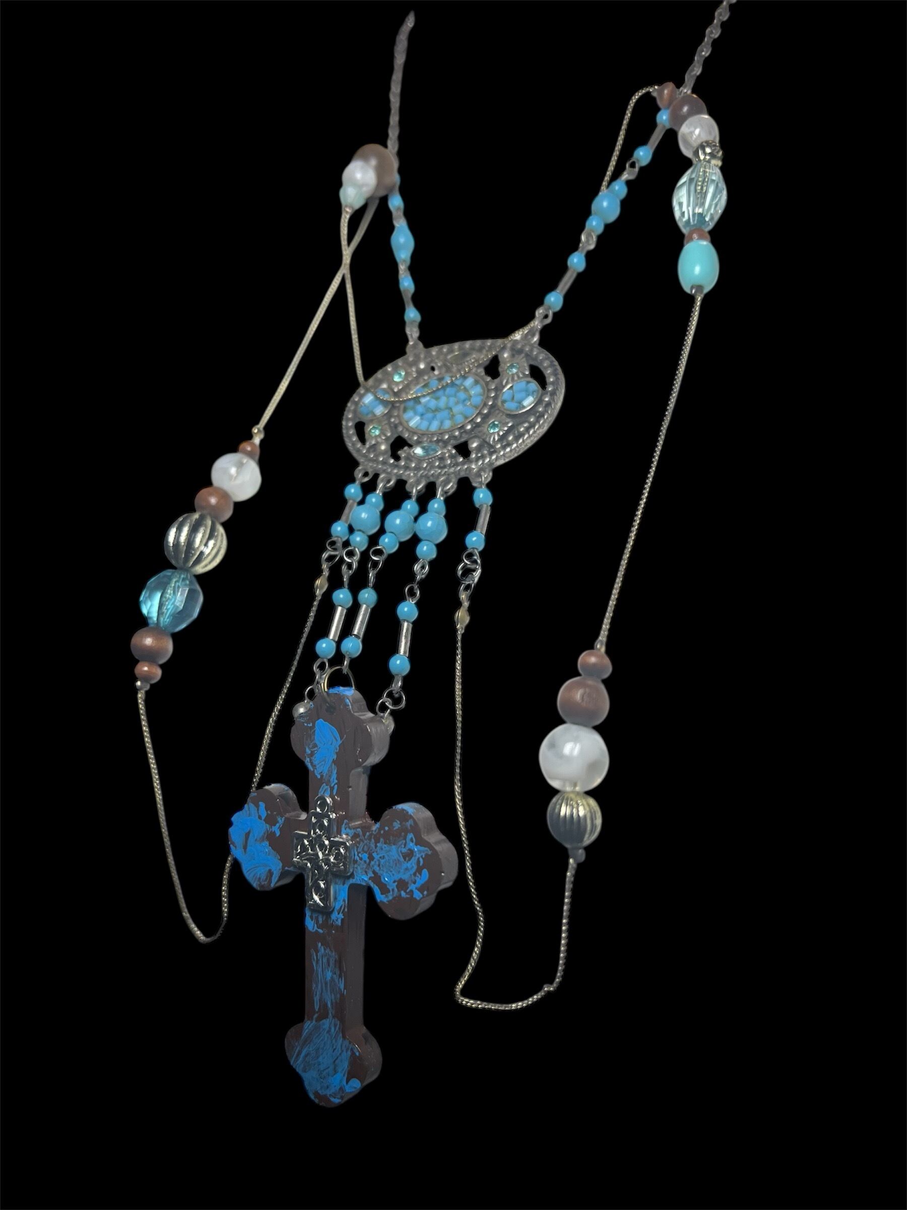 Ornament Cross Necklace – Blue Silver
