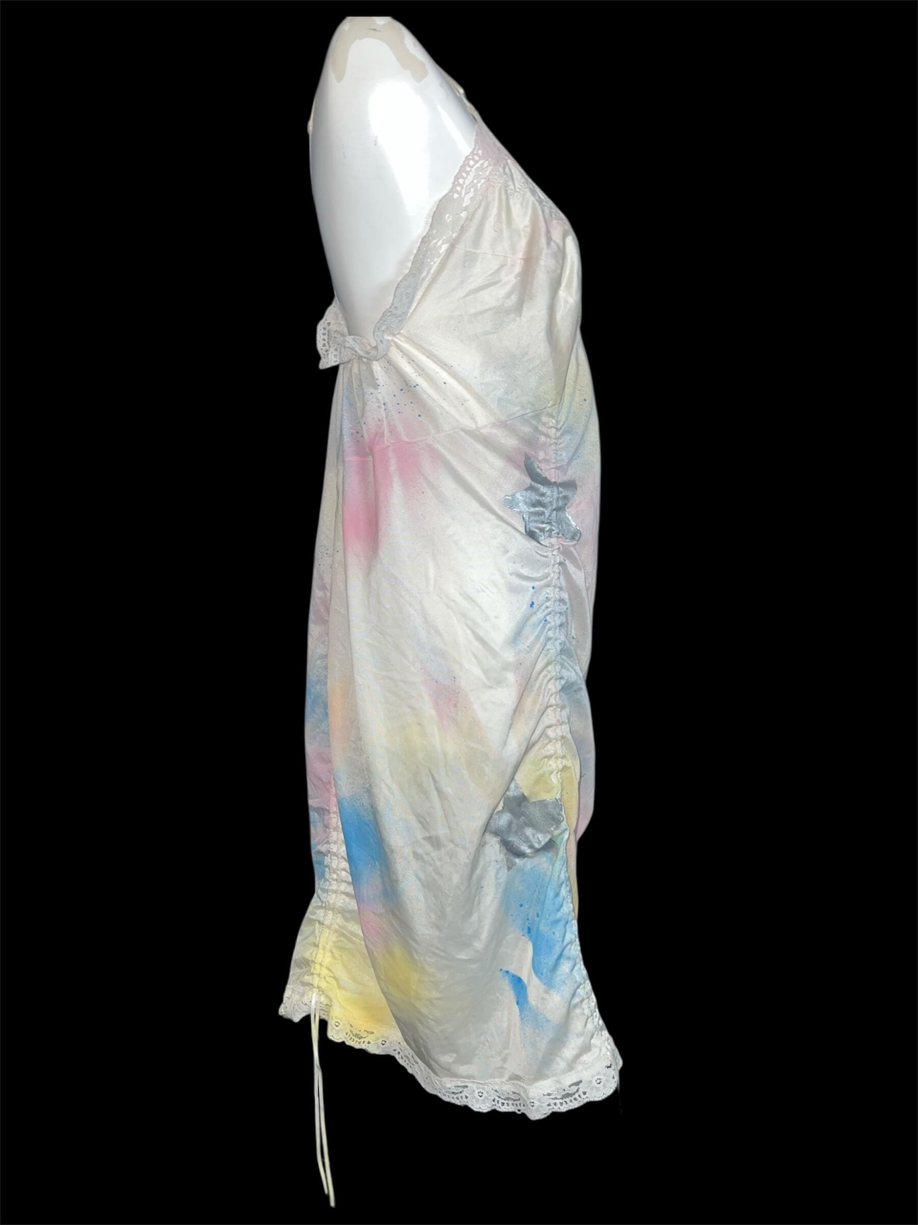 淡いパステルカラーのグラデーションに、星モチーフを散りばめたキャミドレス。