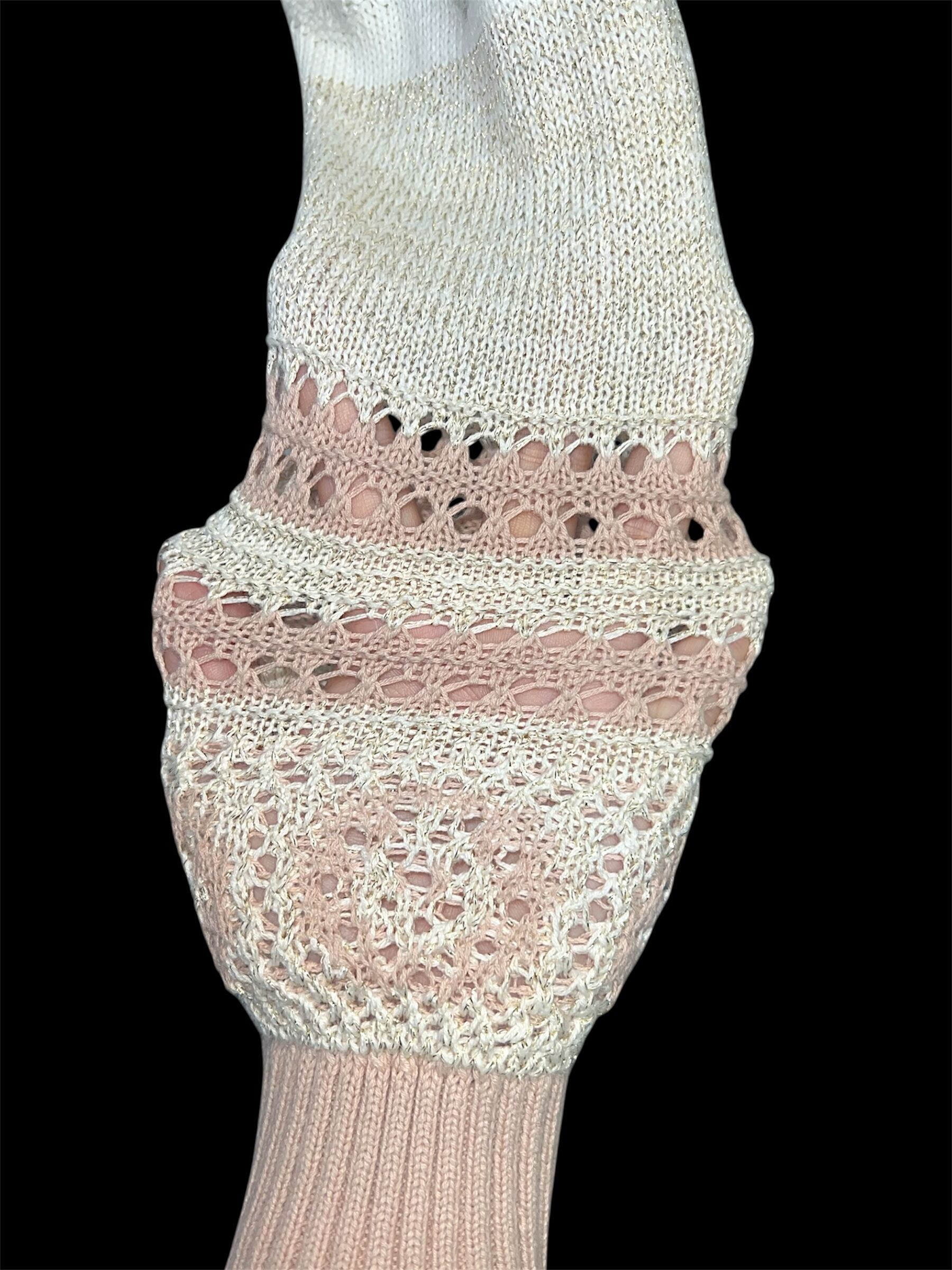 袖部分は柔らかなニット素材に切り替えられており、タイトなシルエットながら動きやすい設計です。