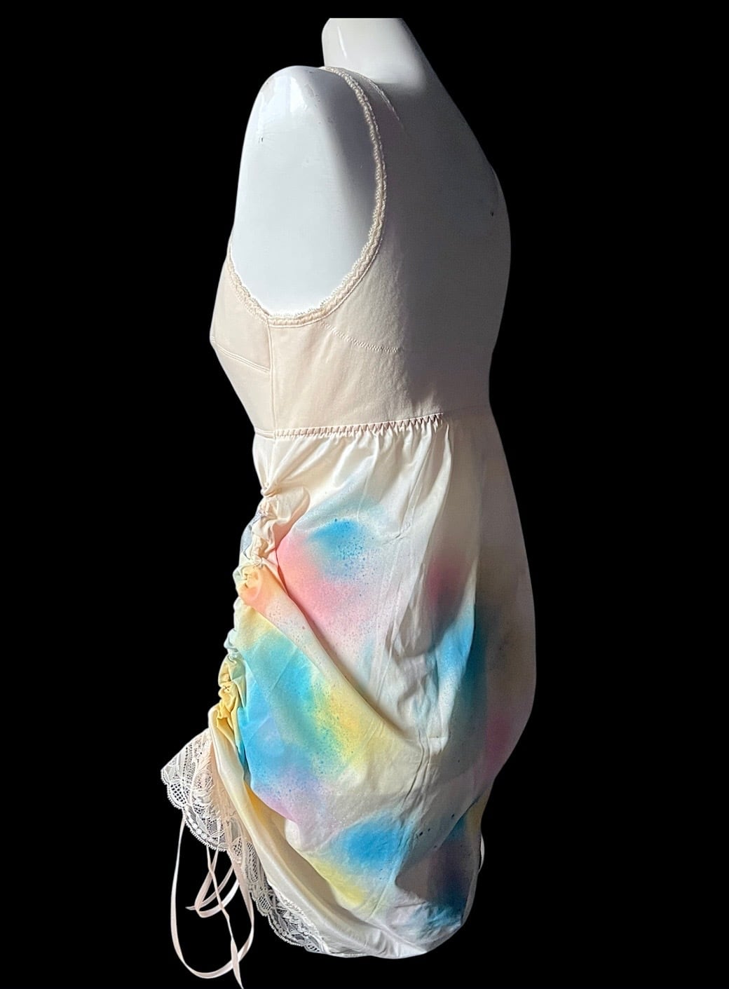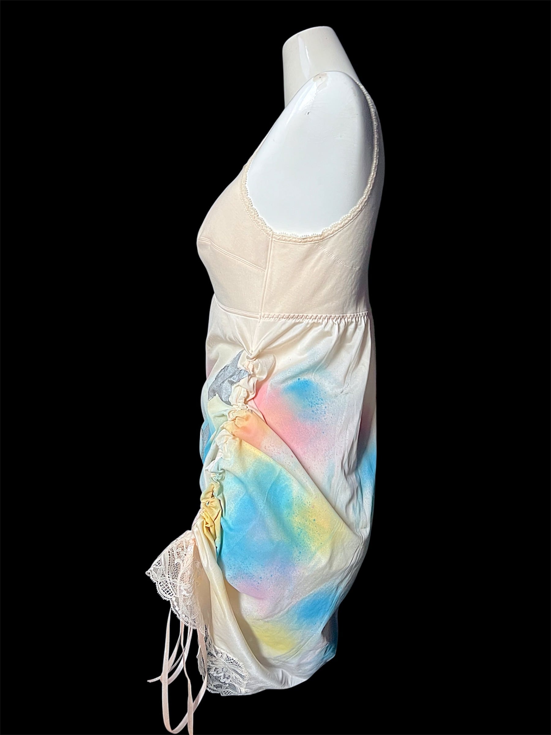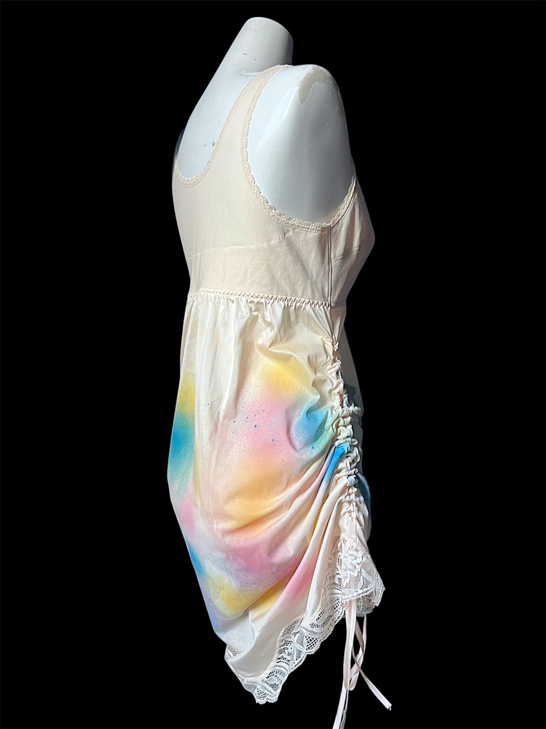 淡いパステルカラーのグラデーションに、星モチーフを散りばめたキャミドレス。